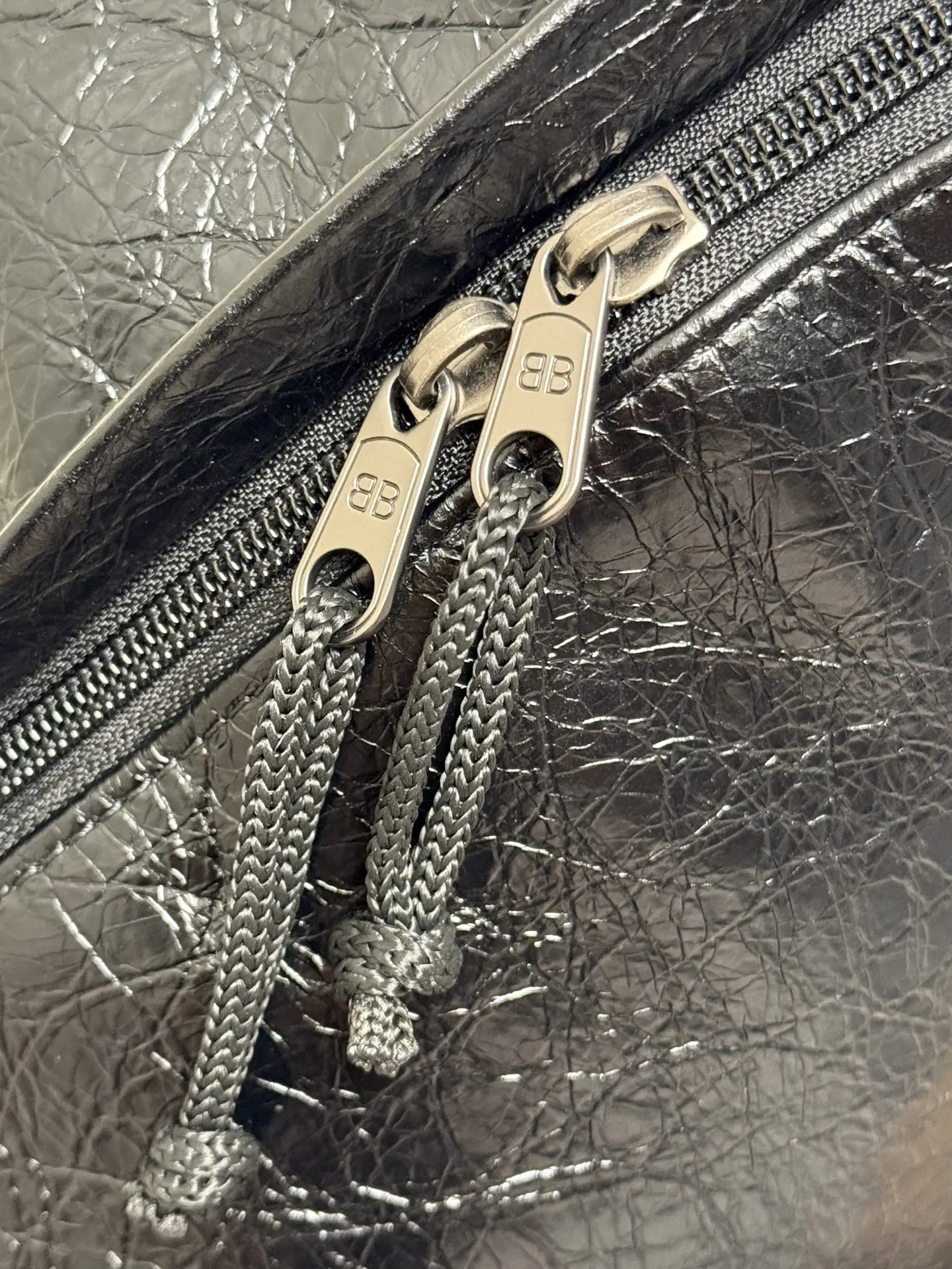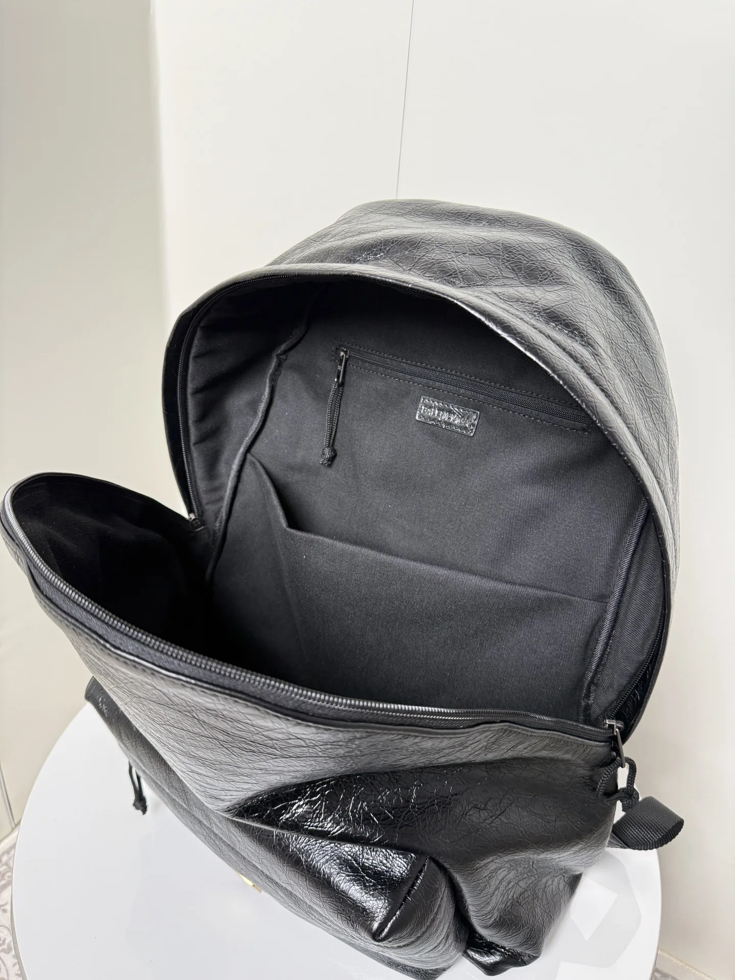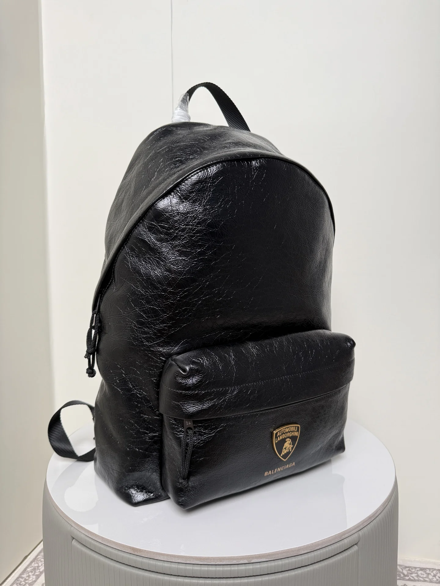 Balenciag* 巴黎世家/兰博基尼联名款双肩包 意大利爆裂羊皮 酷酷的爆裂皮质柔软背起来潮流大气 舒适感满满 简约的设计没有过分的装饰才是巴黎的经典用来通勤 上班再合适不过 可以放下14寸电脑 内部有插袋 永不过时的经典之作.