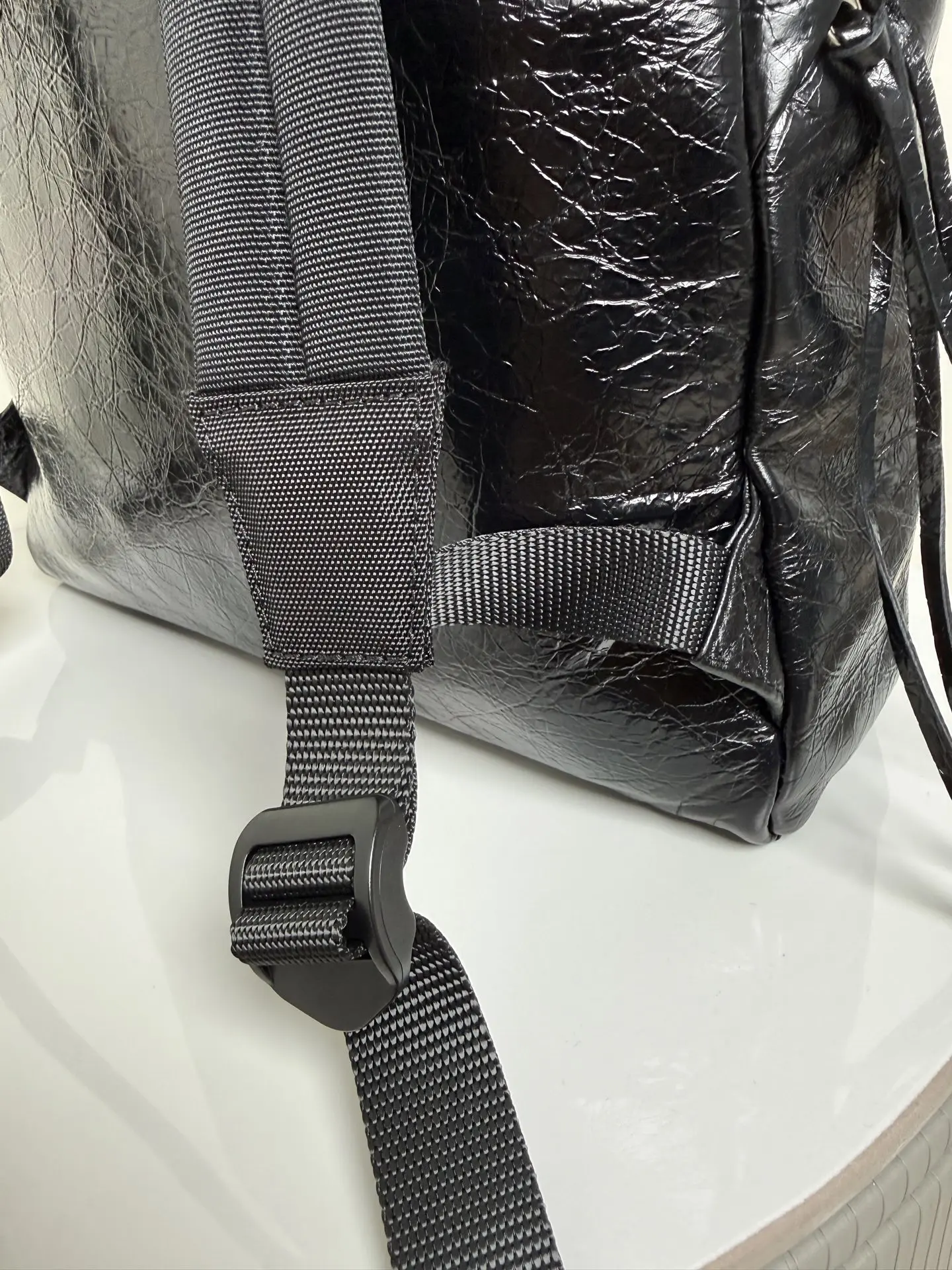 新款 Balenciag* 巴黎世家/ARMY系列 .外观黑色主调百搭 顶部的字母设计有个性潮酷感 走在街上不容易 撞包 减负扛扛的 进口爆纹油皮质感满分 通勤 上班再合适不过 可以放下14寸电脑 内部有插袋