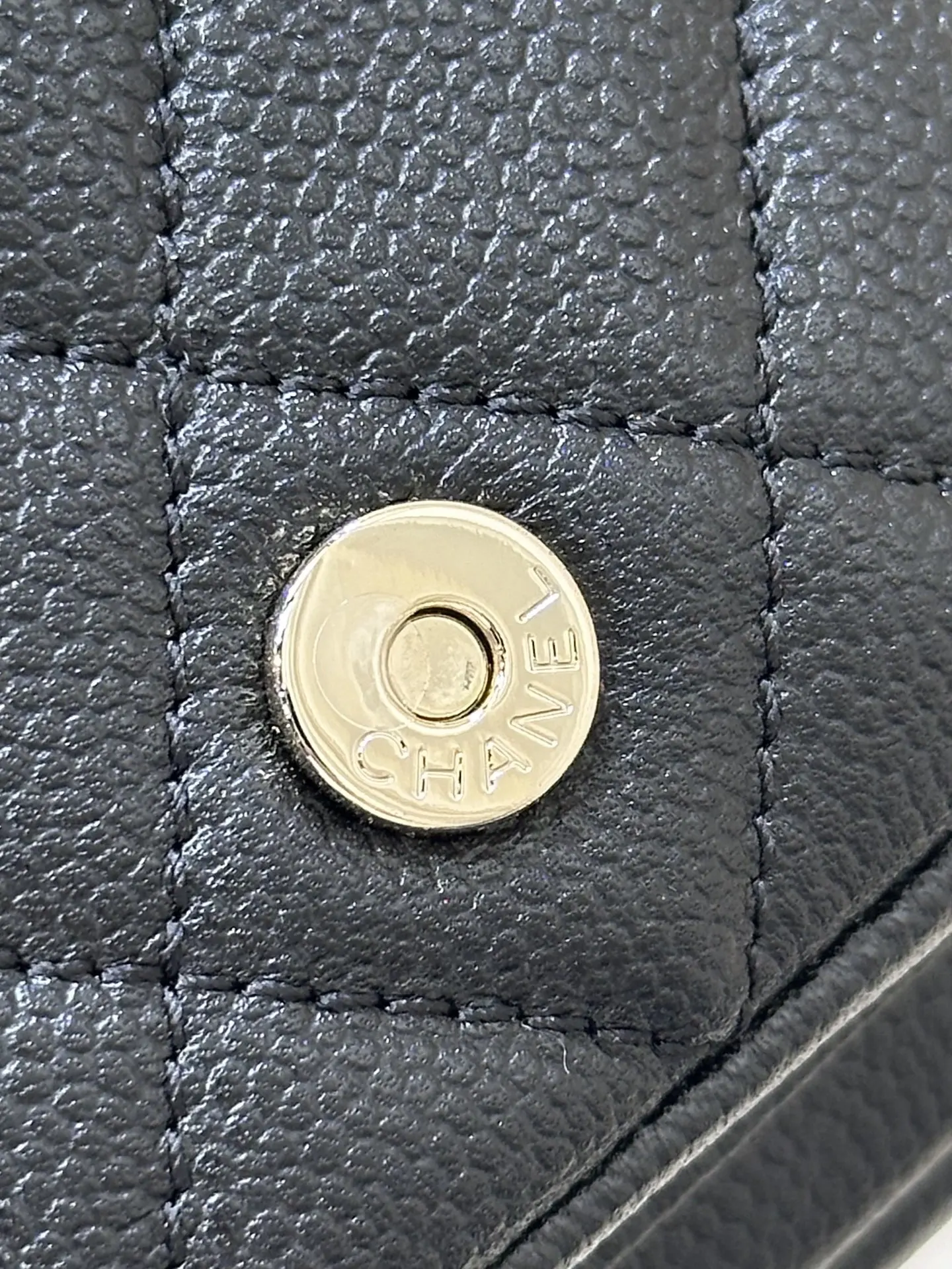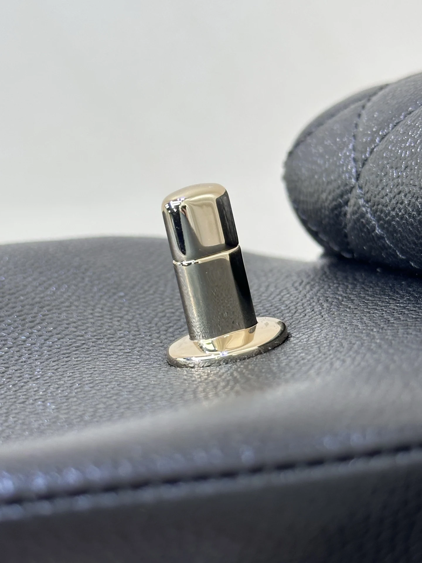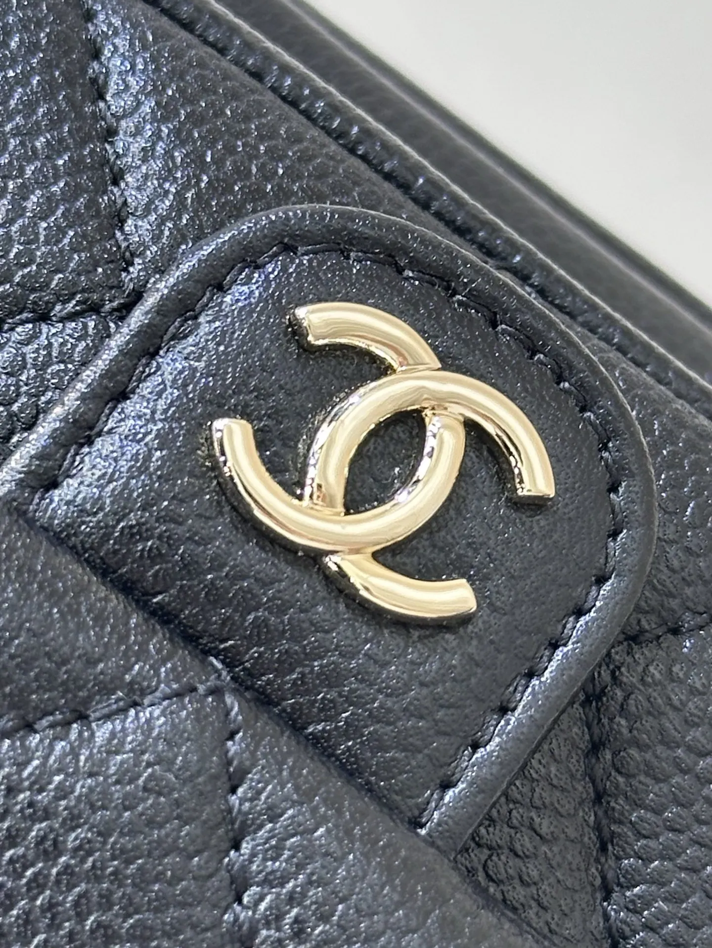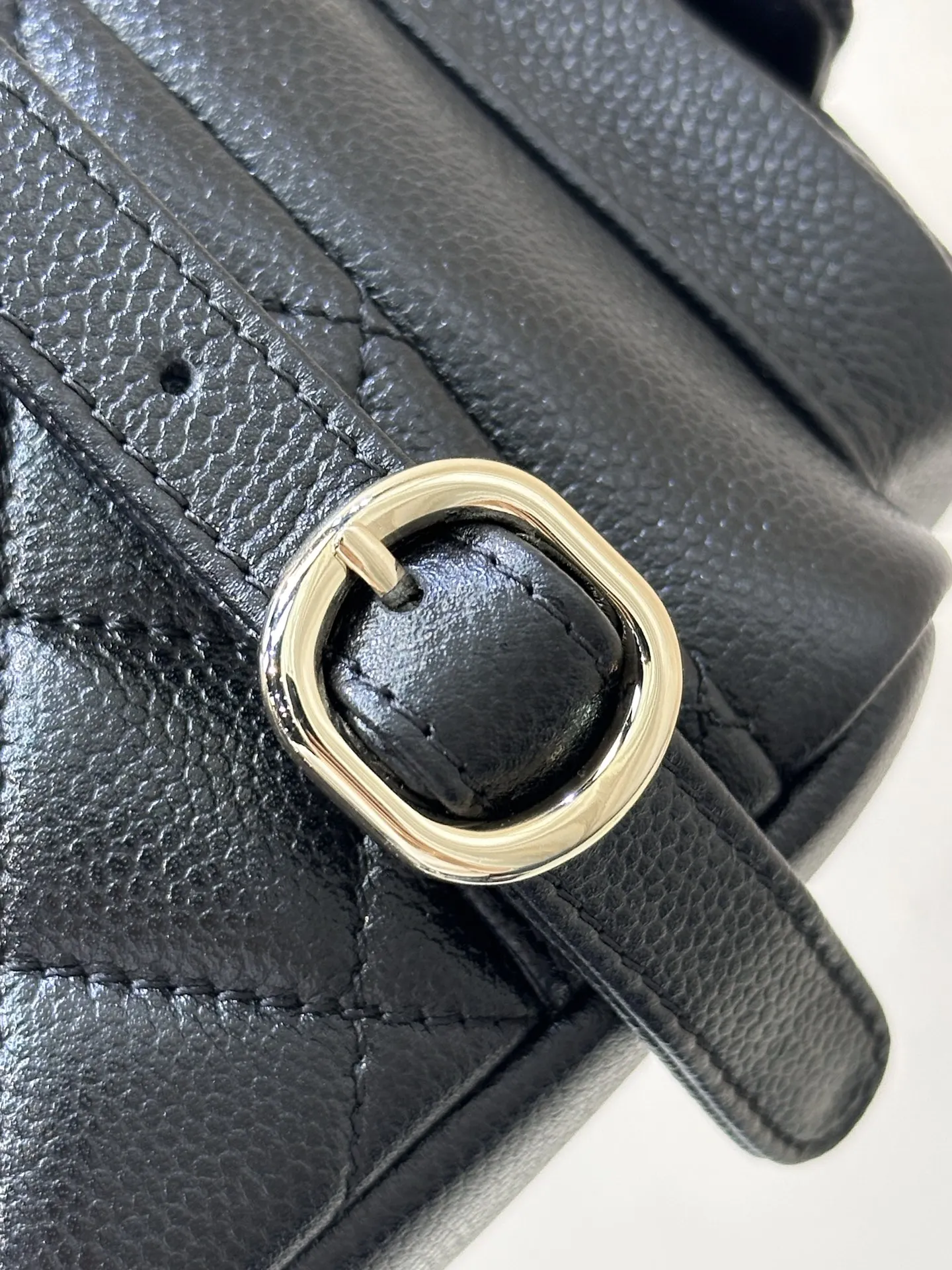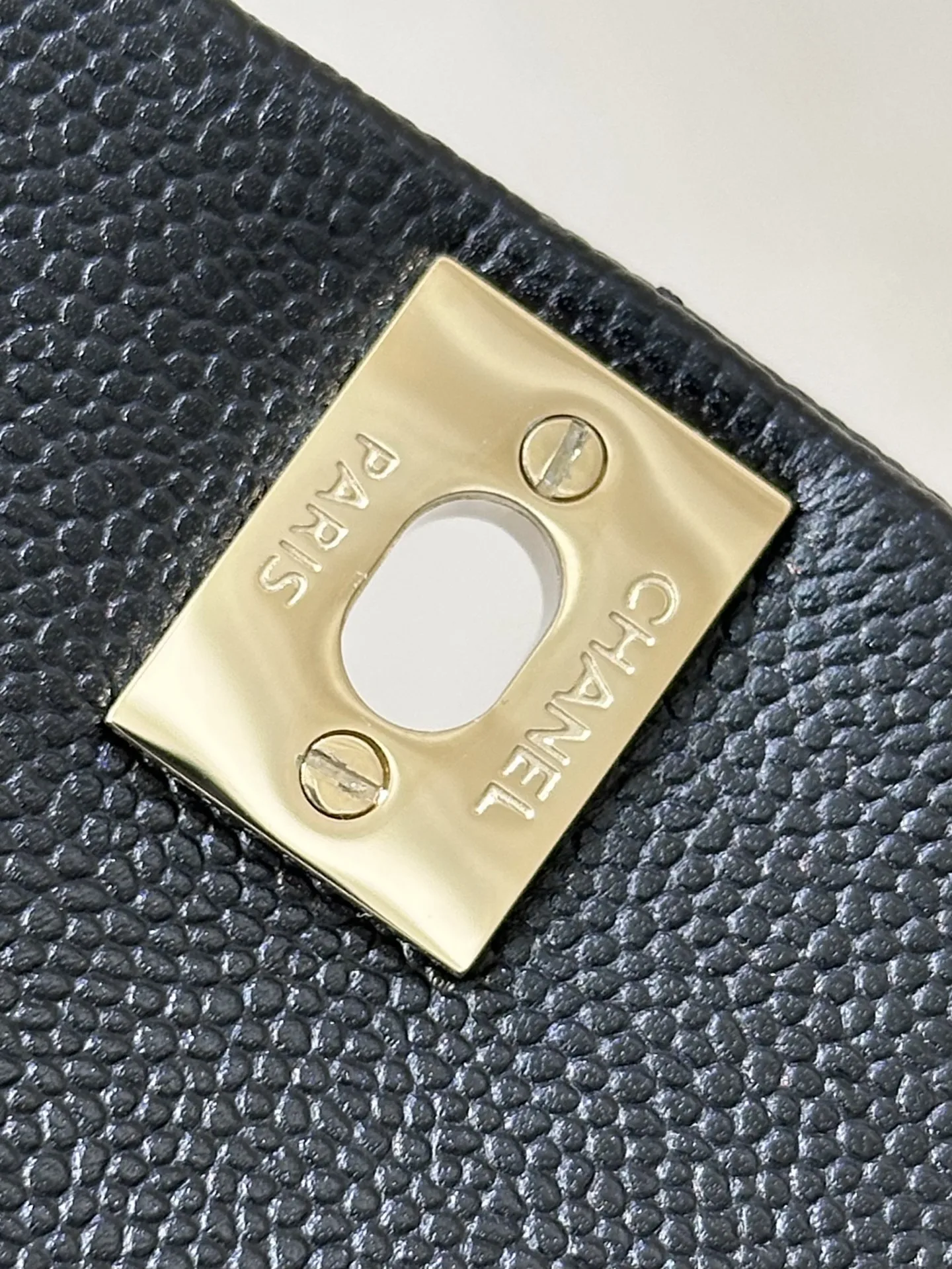 4399/ 淡淡的金色五金搭配黑色鱼子酱质感很好 链条是亮面感 中间是皮拼链设计 这个设计的要求非常高不仅要做好链条的光感还要做好皮质的精致 除了原厂几乎做不到 包身上的五金采用真金电镀的工艺 亮泽的质感