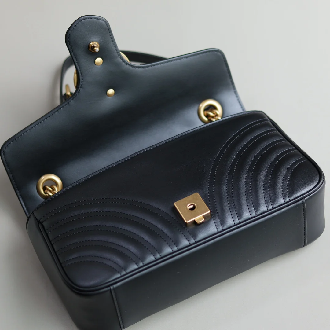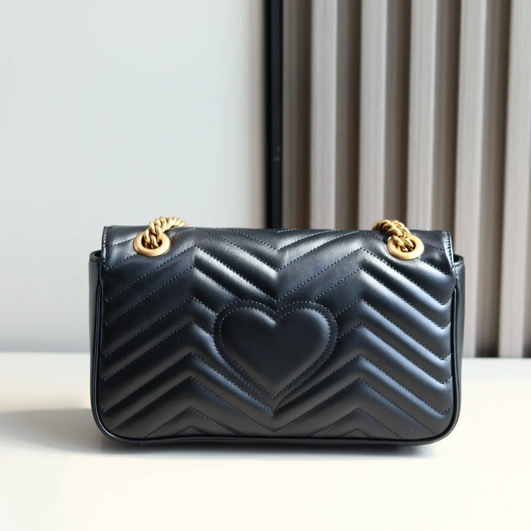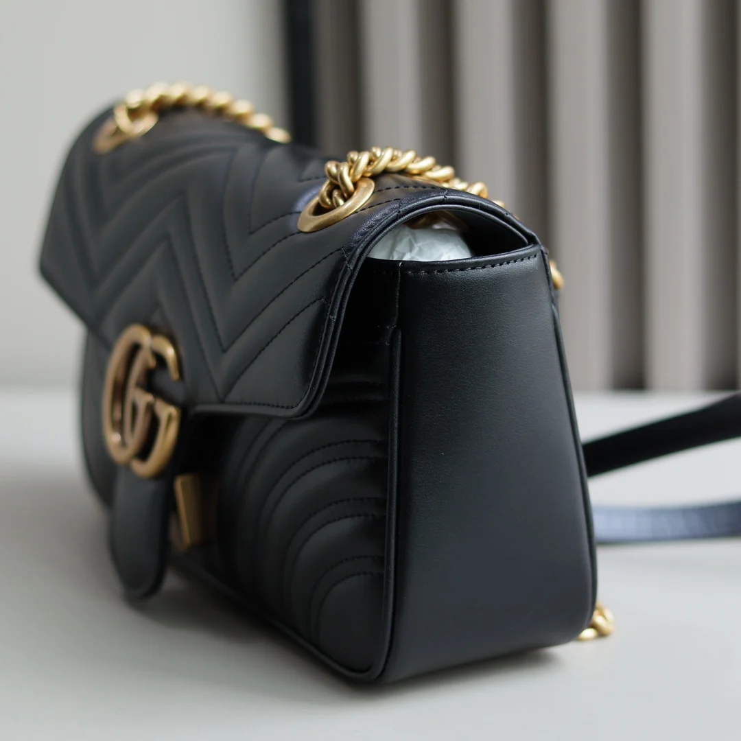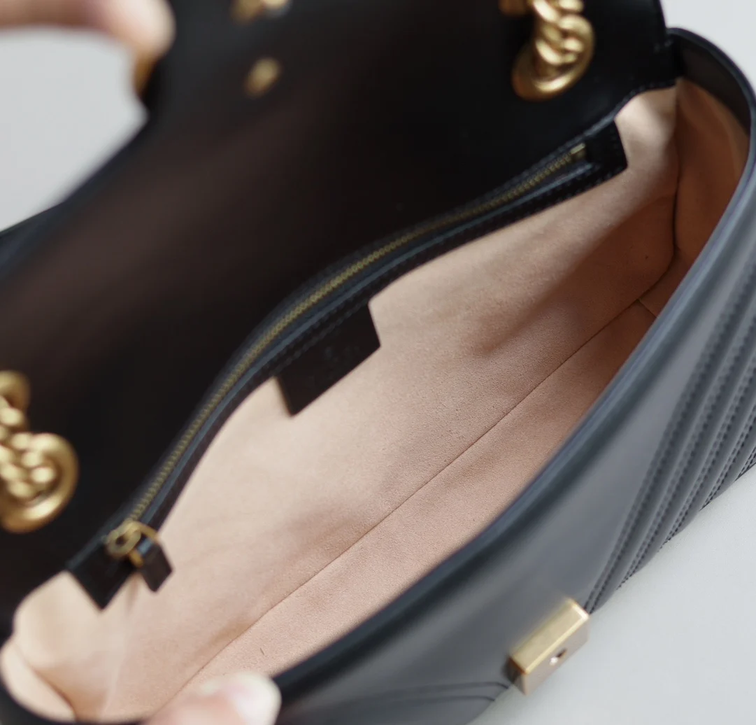 (原厂皮)全新升级版 GG Marmont 波浪纹链条包 进口小牛皮手感极其柔软, 进口高定赤色古铜五金. 有质感有份量. 款号 443497克色 尺寸 26x15x7cm 原单品质.完全正品: