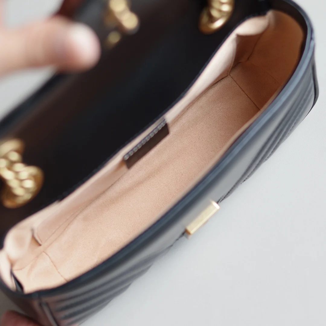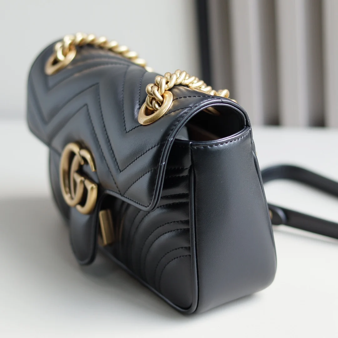(原厂皮)全新升级版 GG Marmont 波浪纹链条包 进口小牛皮手感极其柔软, 进口高定赤色古铜五金. 有质感有份量. 款号 446744克色 尺寸 23 14 6原单品质.完全正品
