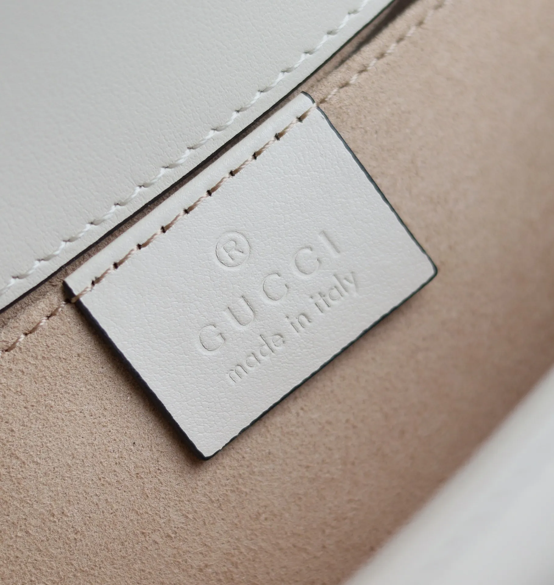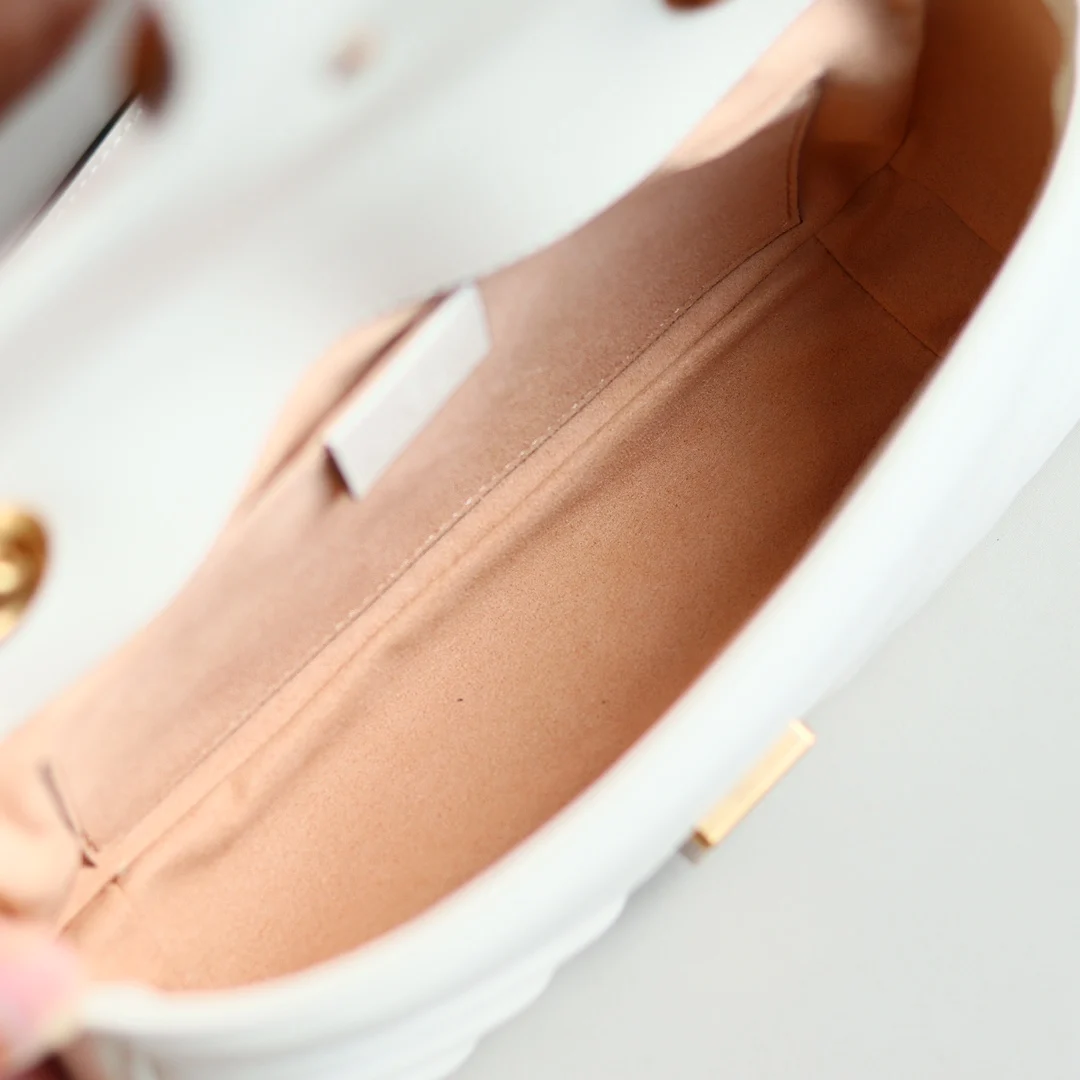 (原厂皮)全新升级版 GG Marmont 波浪纹链条包 进口小牛皮手感极其柔软, 进口高定赤色古铜五金. 有质感有份量. 款号 446744米白色 尺寸 23 14 6原单品质.完全正品