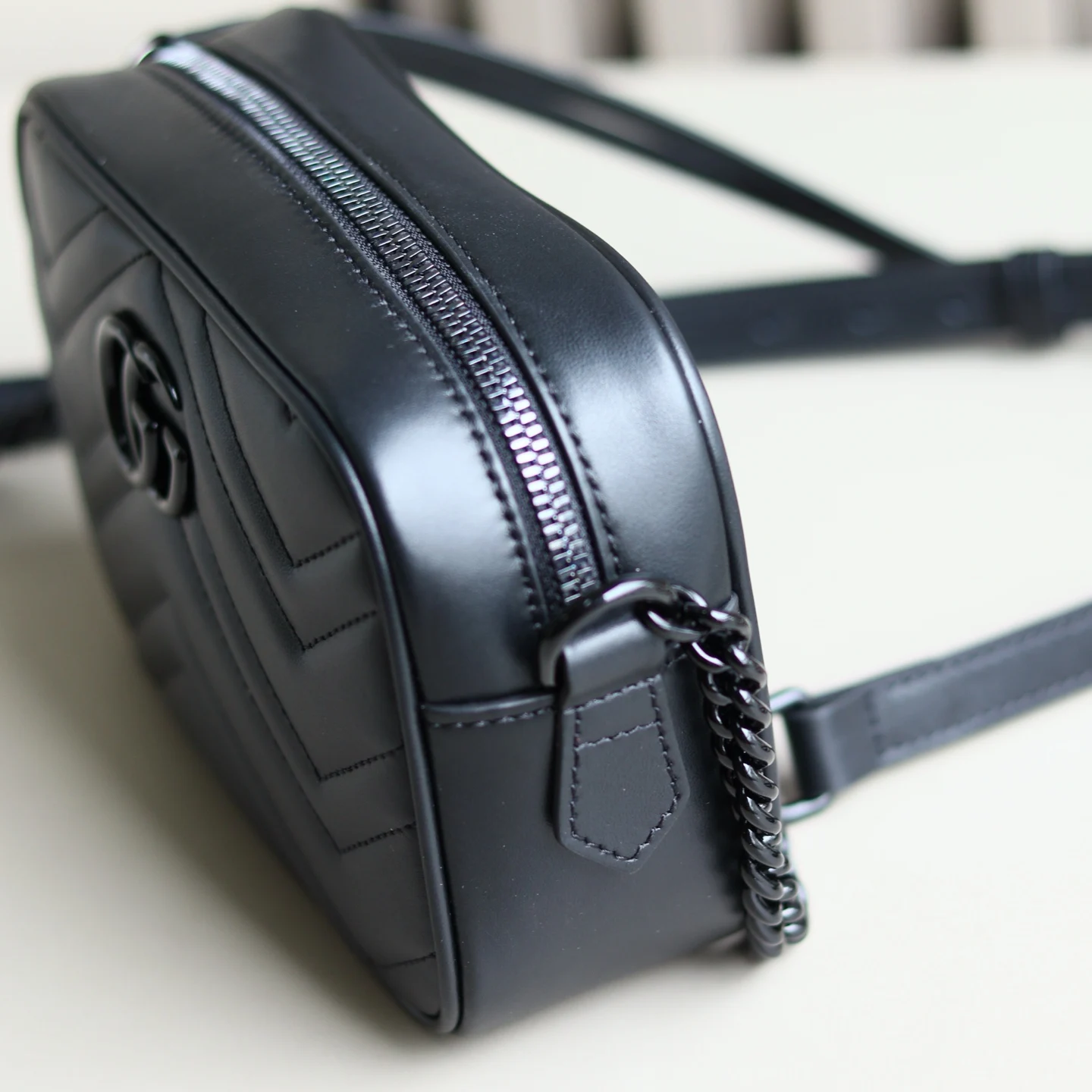 新款相机包 marmont新出系列 不同以往的金属做旧风格 这款金属双G标志变成了银色 看起来更加简约时尚 彰显了独特的个性风格 太适合夏天了