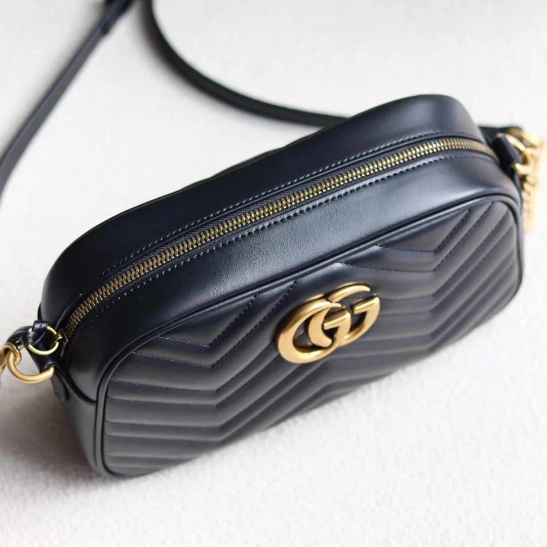 GG Marmont原厂系列 优雅精巧的设计可是俘获了不少少女的芳心 也是全球达人必备的百搭单品 型号 447632 尺寸 24 x 13 x 7cm 颜色:克色