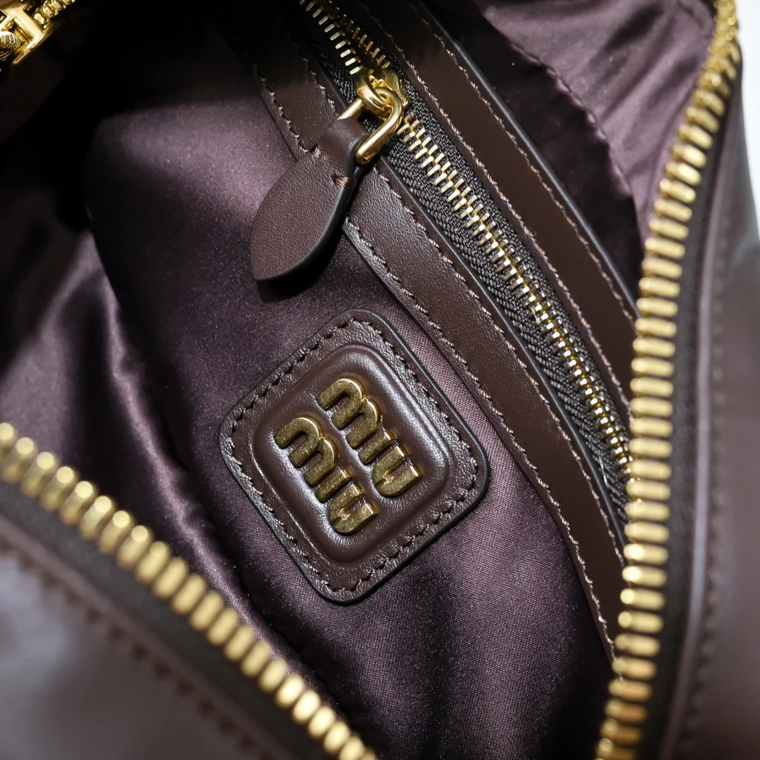 5BB142 Miu家新款保龄球包包 官网主推 今年绝对爆款式 顶级进口小牛皮 Miu家独具风格Matelasse图案 包身精致立体有型 正面刻字徽标与皮革颜色相呼应 可拆卸可调节皮革长肩带 棉质缎面衬里 配拉链式口袋 众多明星网红同款 尺寸22X10.5X7.5Cm 配原版包装