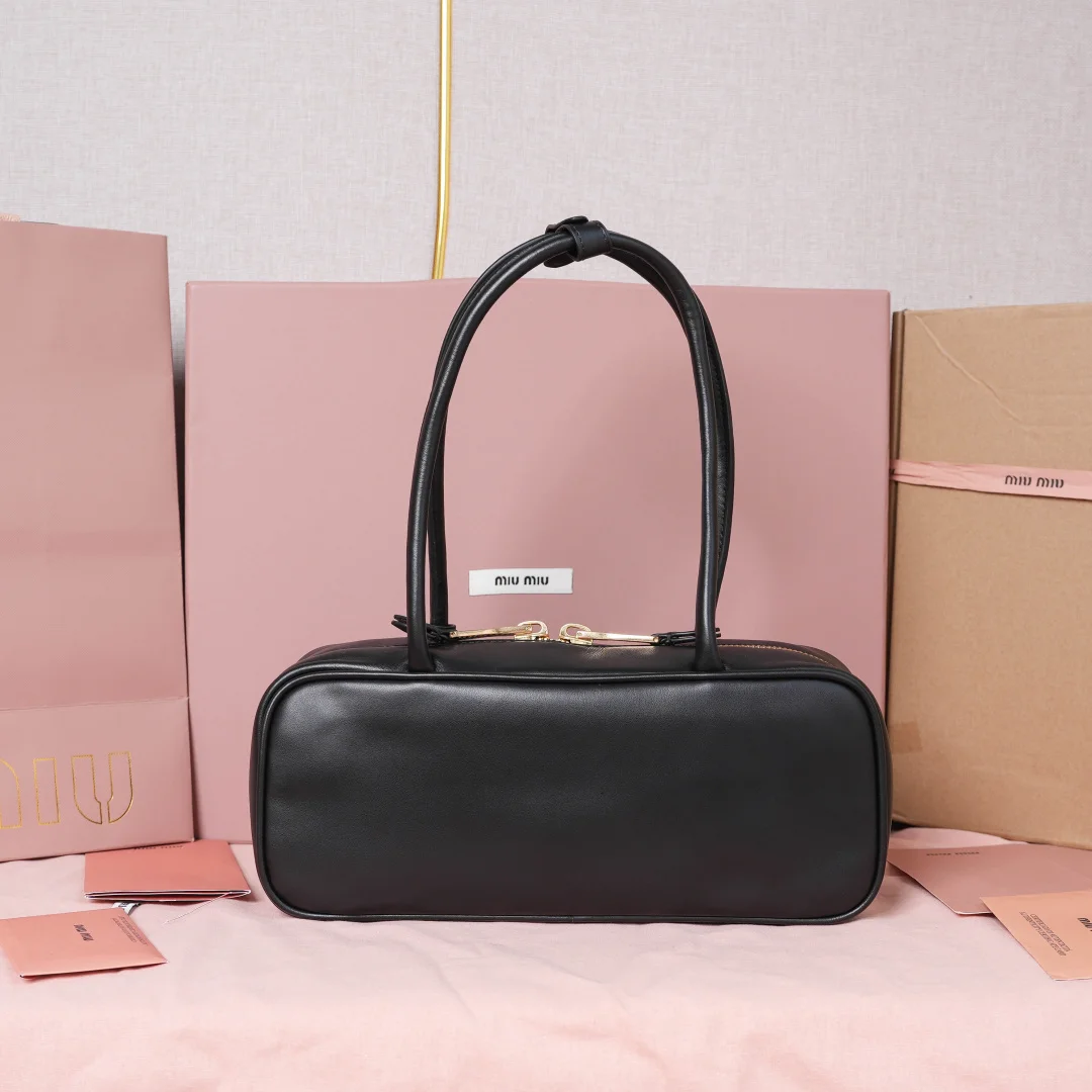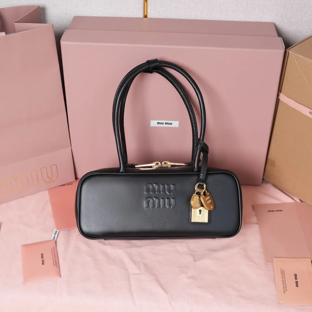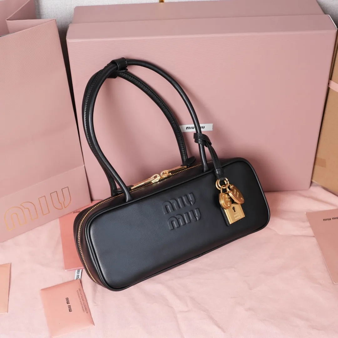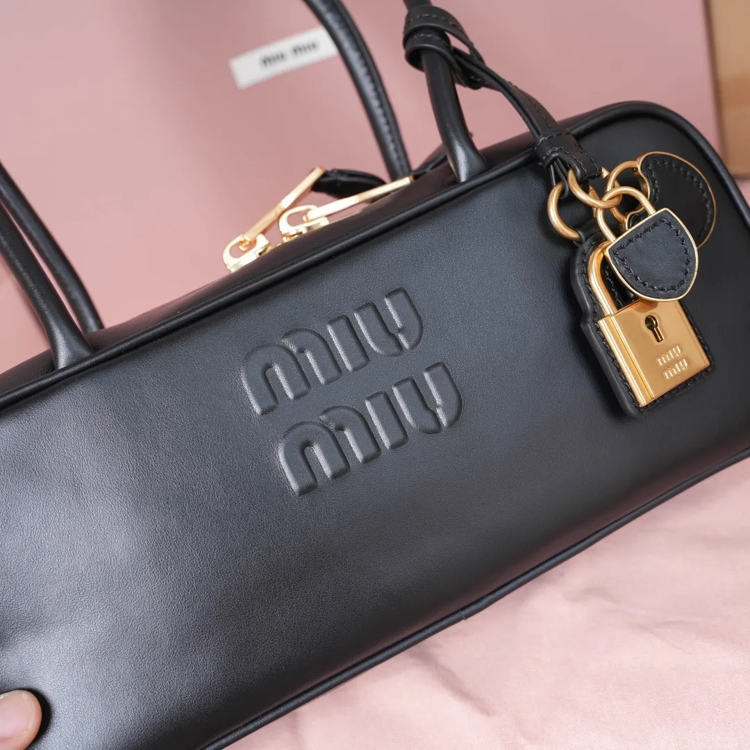 5BB173 Miu新尺寸长手柄保龄球 采用超柔软小牛皮材质 搭配别致饰品挂件 大胆创新的设计完美诠释了Miu不拘一格 潇洒随意包容的人生态度 这款包包很酷 定格精致的多功能设计 融合男装和女装素 随性慵懒 自然洒脱 充满个性 上班通勤 逛街旅游都是绝佳选择 火遍全网不是没道理的 各大时尚搏明星都爱背它 尺寸 28X12X8cm