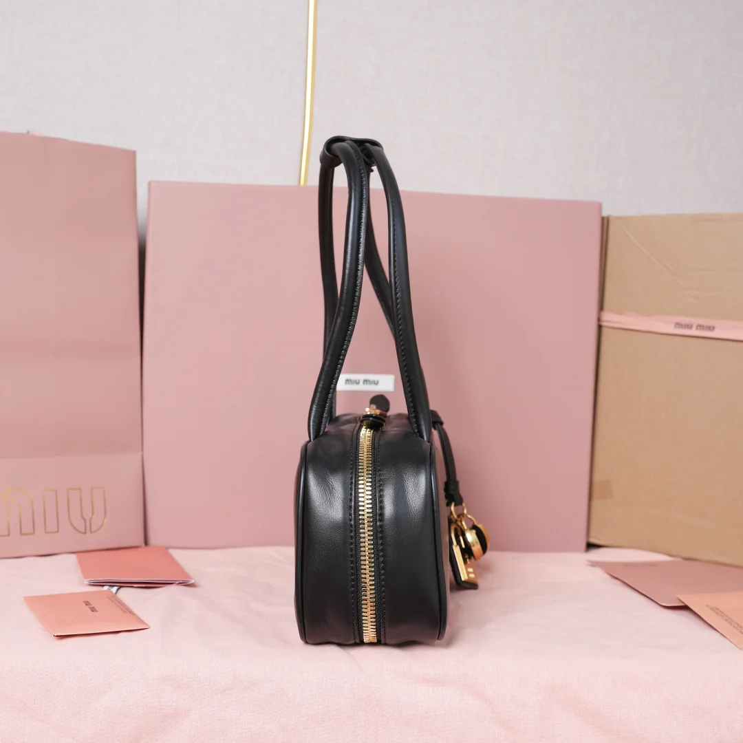 缪缪5BB147 皱漆原厂皮新品保龄球包 女士单肩包