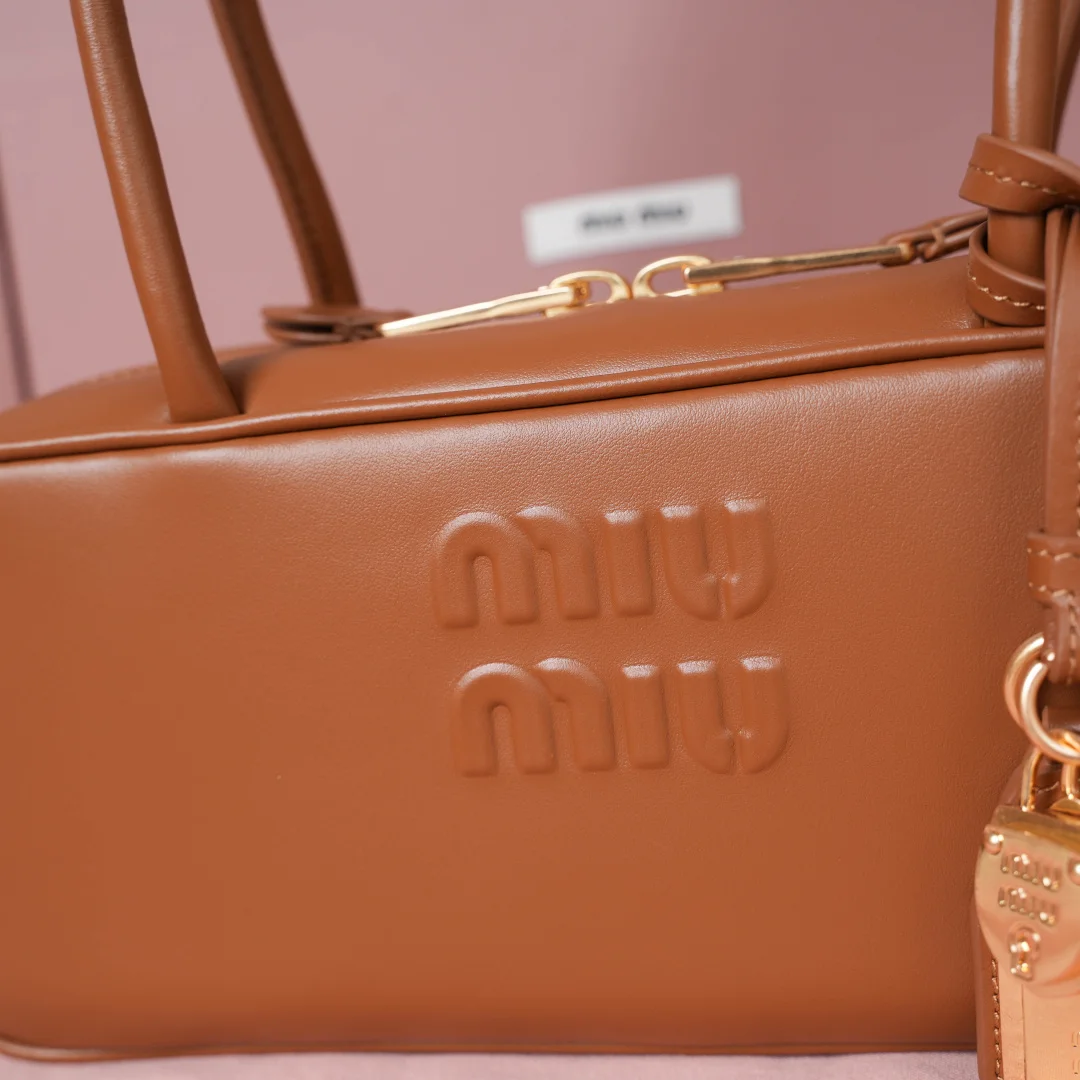 5BB173 Miu新尺寸长手柄保龄球 采用超柔软小牛皮材质 搭配别致饰品挂件 大胆创新的设计完美诠释了Miu不拘一格 潇洒随意包容的人生态度 这款包包很酷 定格精致的多功能设计 融合男装和女装素 随性慵懒 自然洒脱 充满个性 上班通勤 逛街旅游都是绝佳选择 火遍全网不是没道理的 各大时尚搏主明星都爱背它 尺寸 28X12X8cm