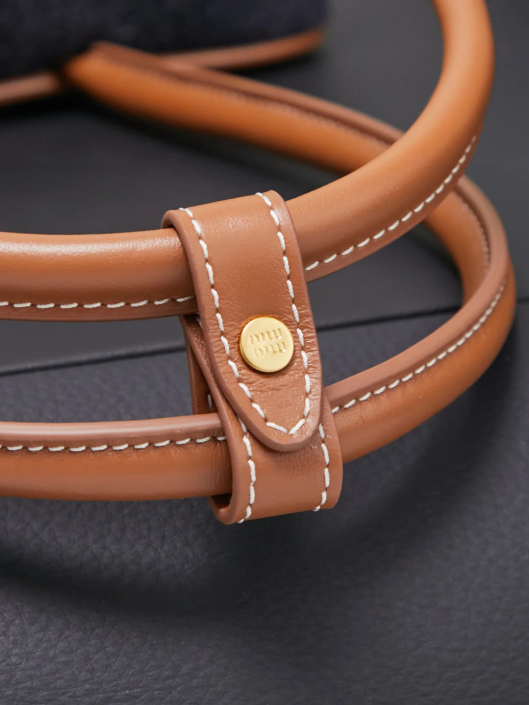 5BB173 牛仔蓝配棕色皮 Miu新品保龄球 最新双色搭配设计 采用超柔软小牛皮材质 大胆创新的设计完美诠释了Miu不拘一格 潇洒随意包容的人生态度 这款包包很酷 定格精致的多功能设计 融合男装和女装素 随性慵懒 自然洒脱 充满个性 全新的帆布衬里 火遍全网不是没道理的 各大时尚搏主明星都爱背它 尺寸 28X12X9cm