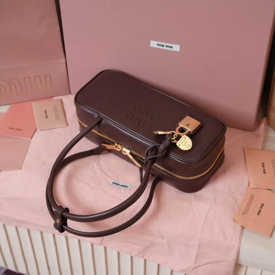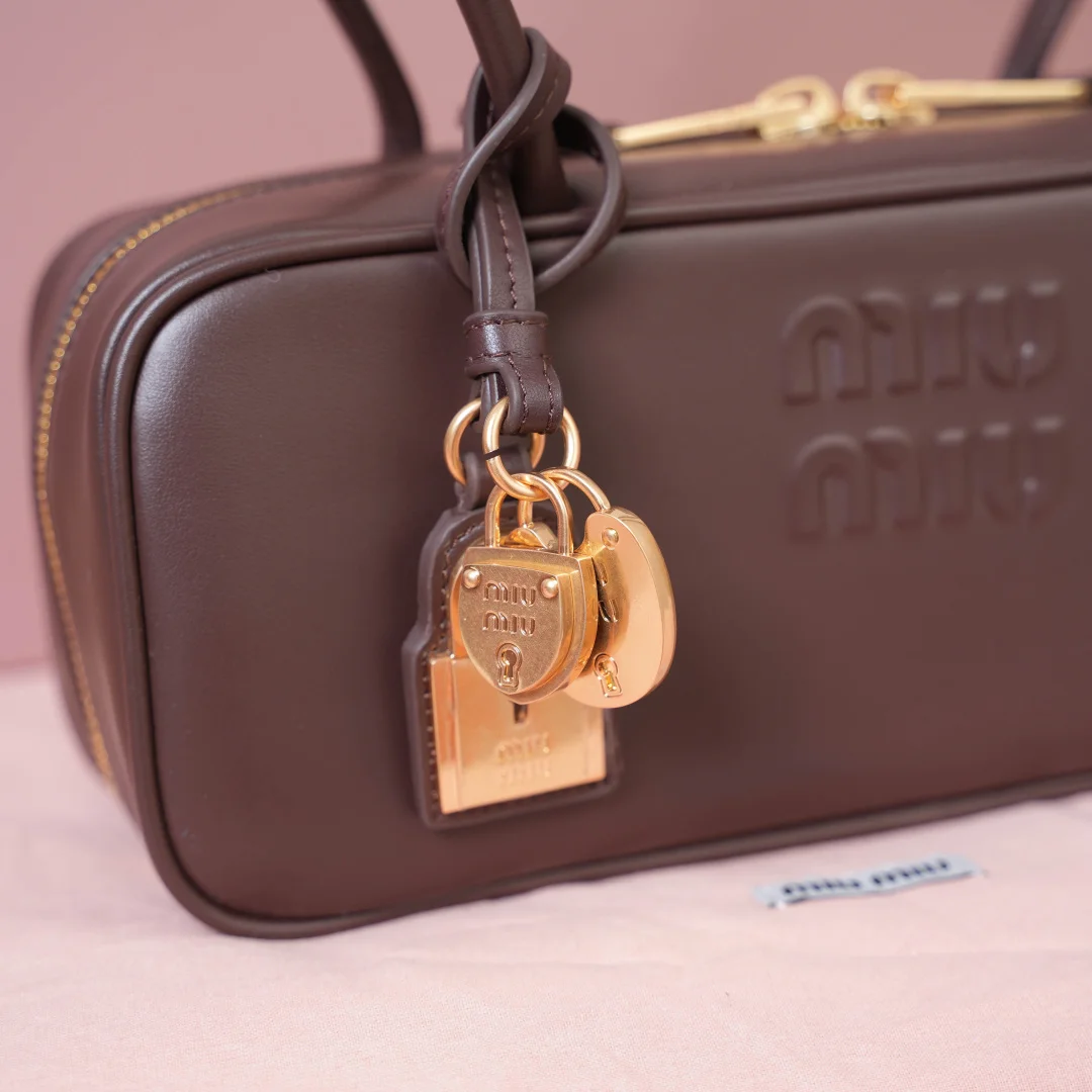 5BB173 Miu新尺寸长手柄保龄球 采用超柔软小牛皮材质 搭配别致饰品挂件 大胆创新的设计完美诠释了Miu不拘一格 潇洒随意包容的人生态度 这款包包很酷 定格精致的多功能设计 融合男装和女装素 随性慵懒 自然洒脱 充满个性 上班通勤 逛街旅游都是绝佳选择 火遍全网不是没道理的 各大时尚搏主明星都爱背它 尺寸 28X12X8cm