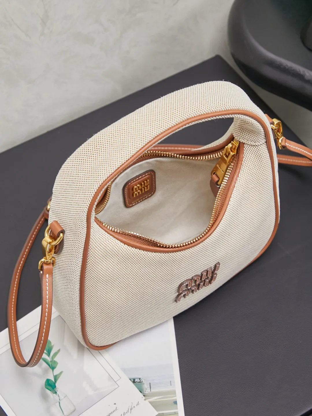 5BC125 MiuMi新品MiuWander手袋 全新大胆配色设计 采用顶级进口小牛皮 复古磨砂五金 利用圆孤的曲线 保留了应有的俏皮感 表达运动优雅型格与当代百变气质 包型整体硬挺有型 充满个性 可甜可盐 容量可光 尺寸 20X13X7 cm