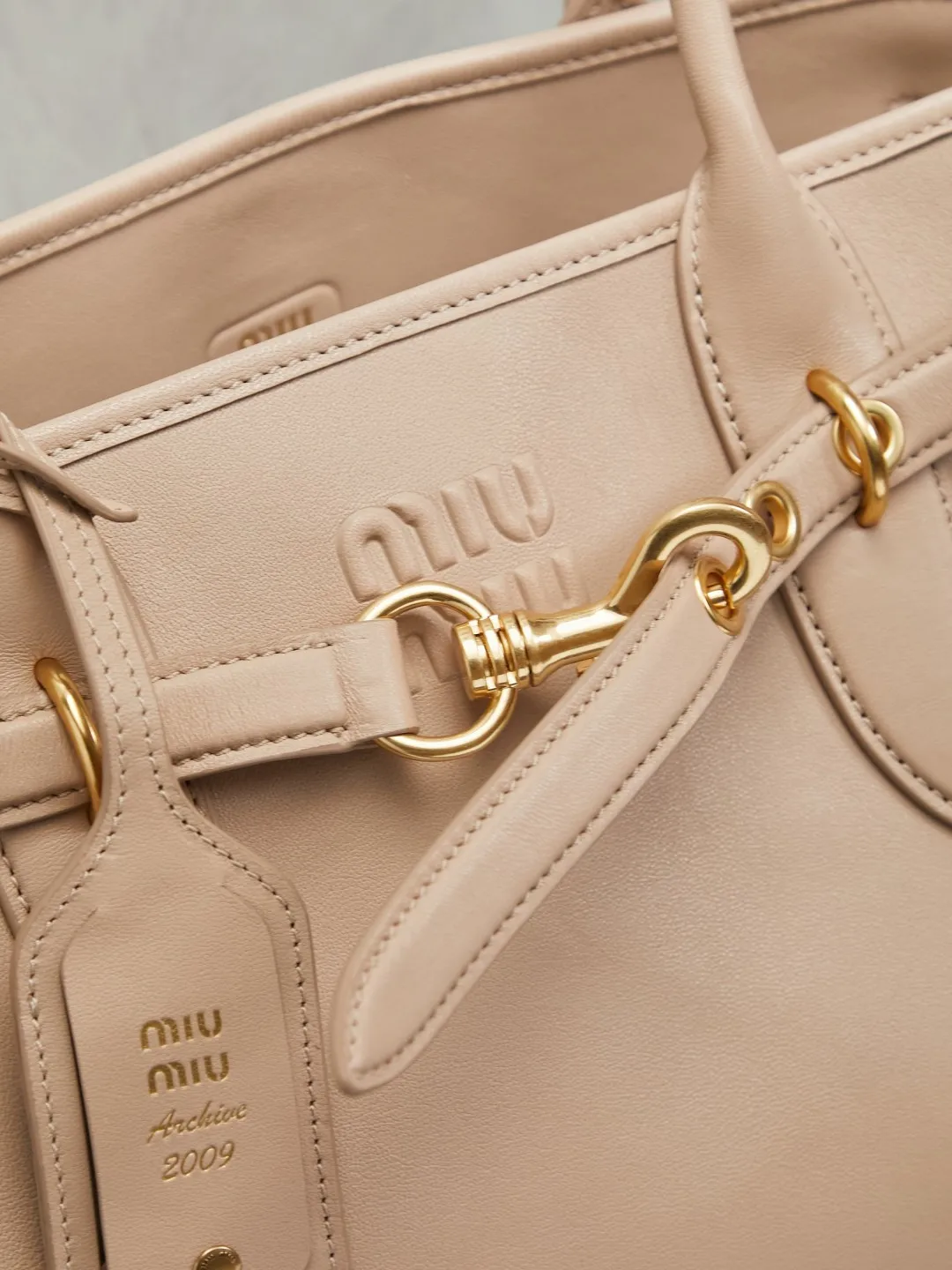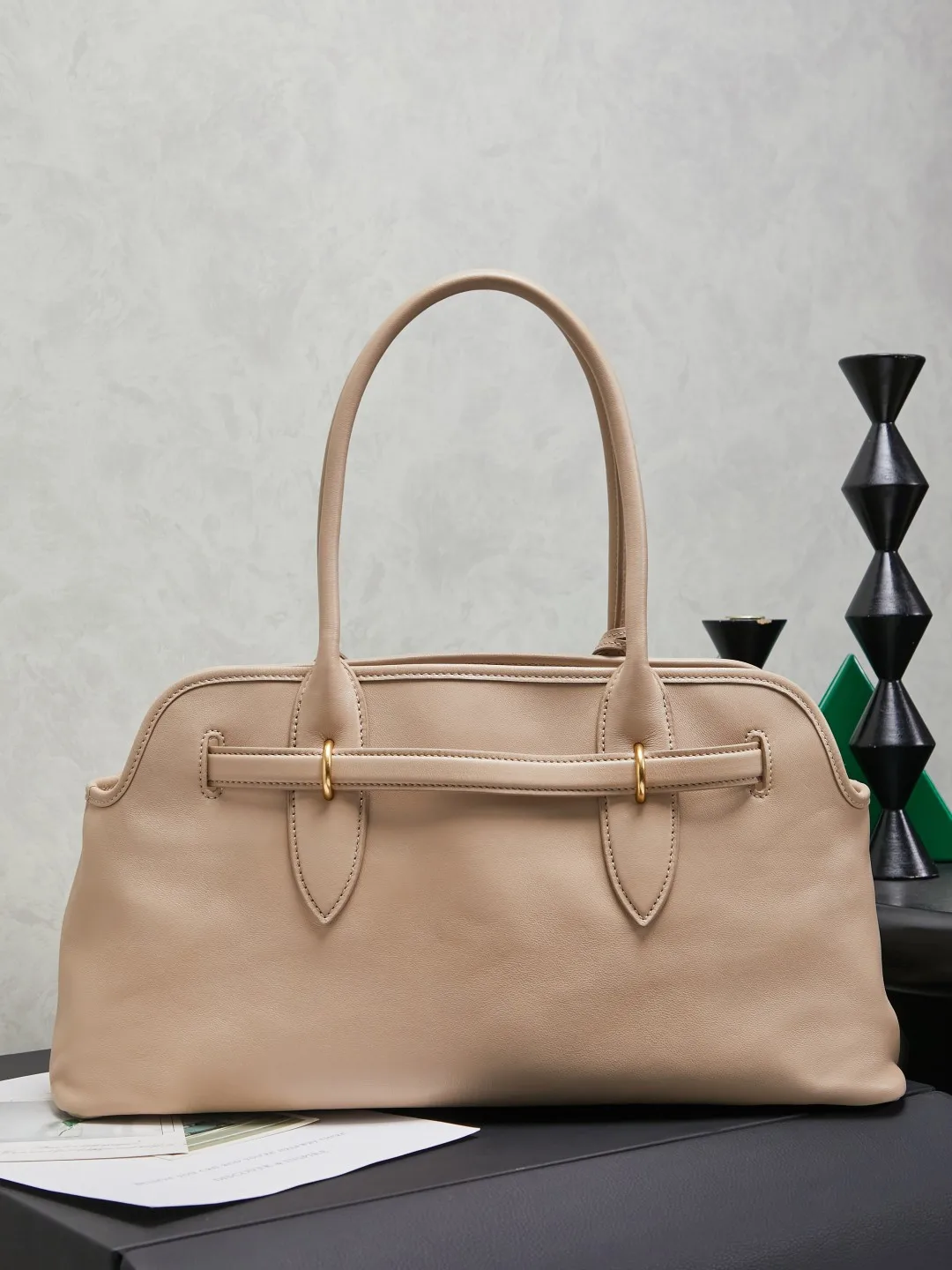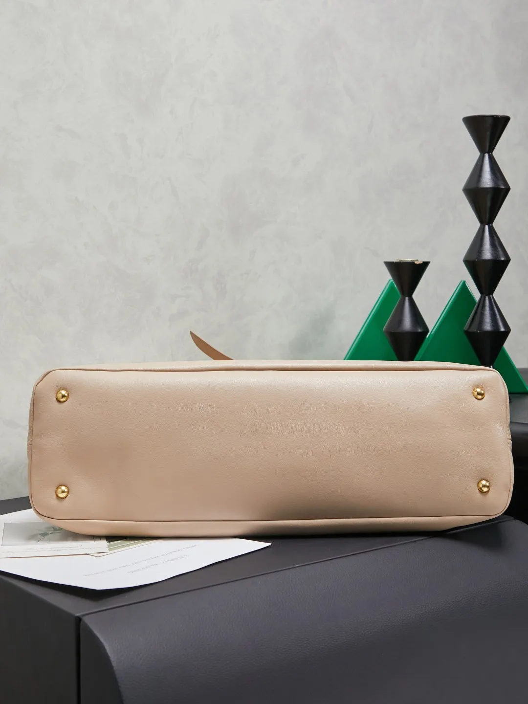 5BG310 新品爆款中古托特包 采用全新柔脂羊皮 皮质柔软高级 这款Aventure Nappa皮革手袋灵感源自Miu典藏设计 结构经过调整 横版比例更为精致 变得更加轻便 焕发全新个性 饰以压花字母徽标 增添标志性素 复古金色五金配件 亚麻混纺衬里 配拉链口袋和贴袋 长手腕适合用作手提或单肩 尺寸 44X22.5X14.5CM