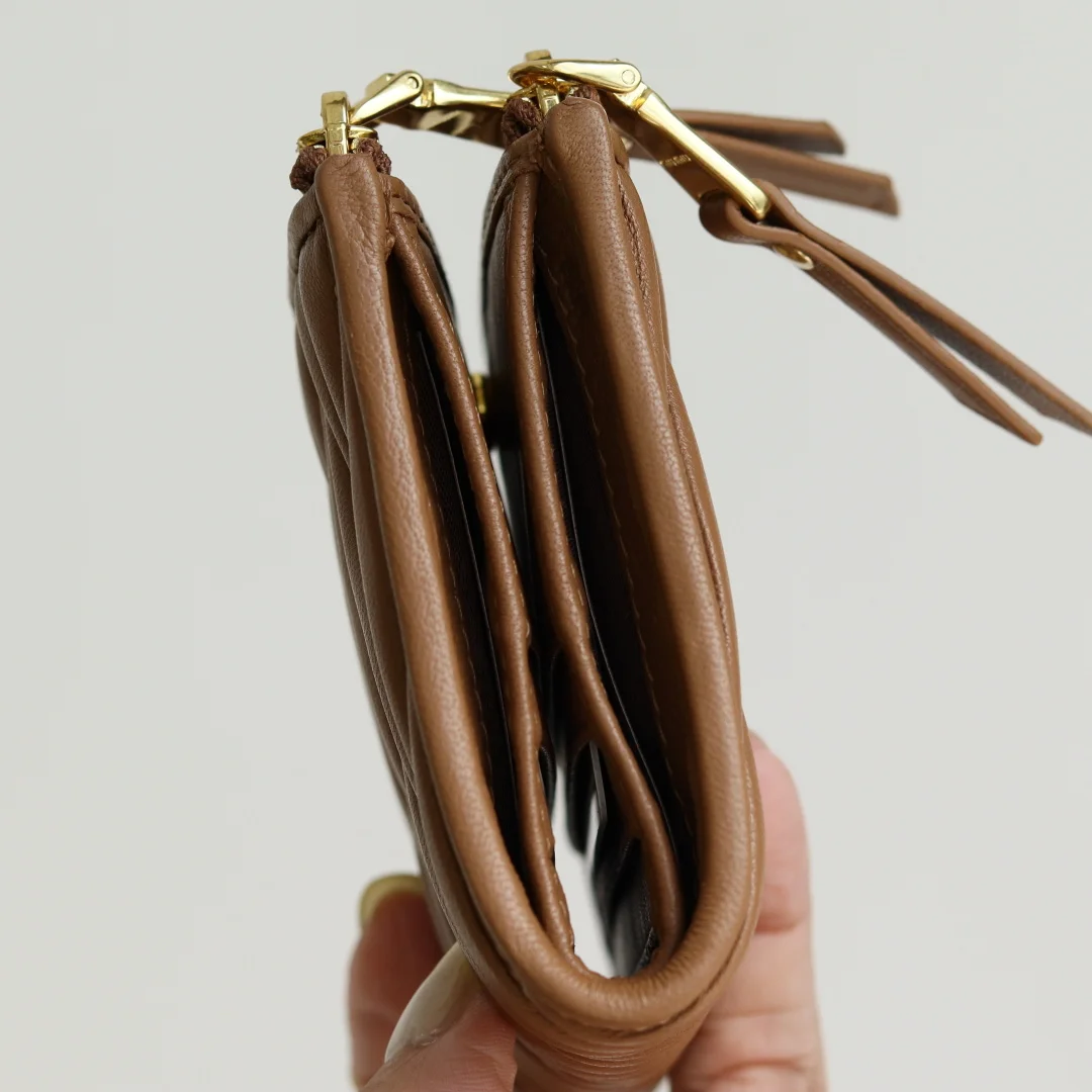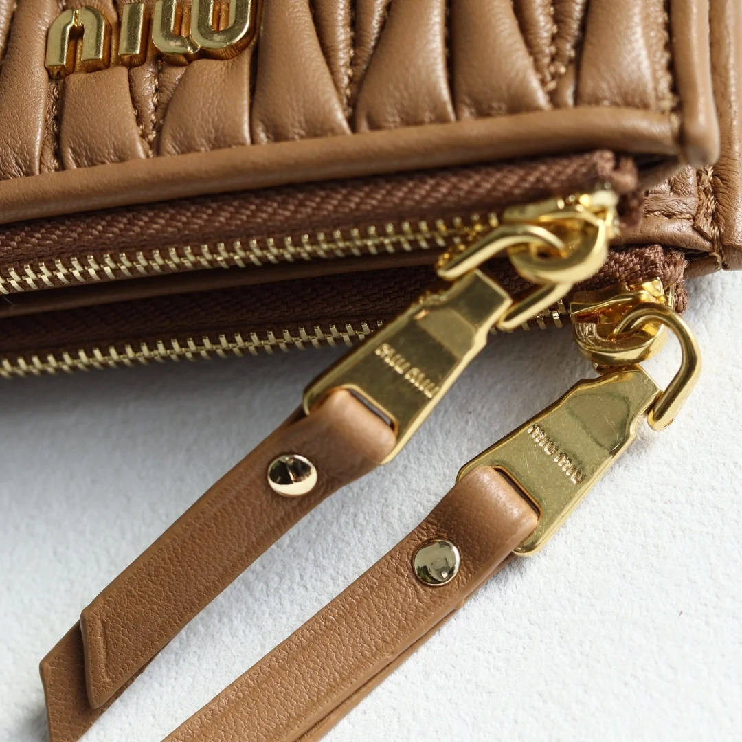 新版本两折小包 pocket wallet 专柜新款小夹 型号 5MV017 里外都是进口顶级羊皮 双边设计多个卡槽位 两边双拉链隔层设计 容量更大 内压198A 百钞银行卡硬币零通通可以收入其中 实用性强 尺寸 11.5 X8 cm