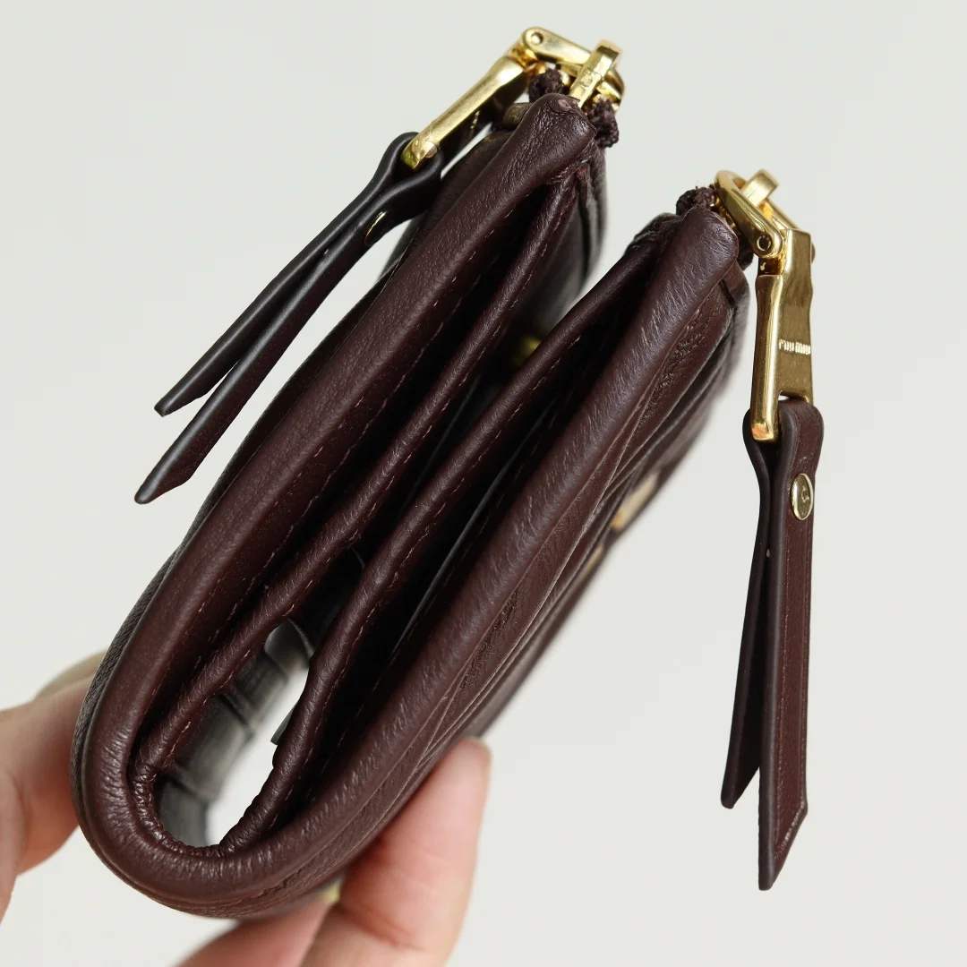 新版本两折小包 pocket wallet 专柜新款小夹 型号 5MV017 里外都是进口顶级羊皮 双边设计多个卡槽位 两边双拉链隔层设计 容量更大 内压198A 百钞银行卡硬币零通通可以收入其中 实用性强 尺寸 11.5 X8 cm