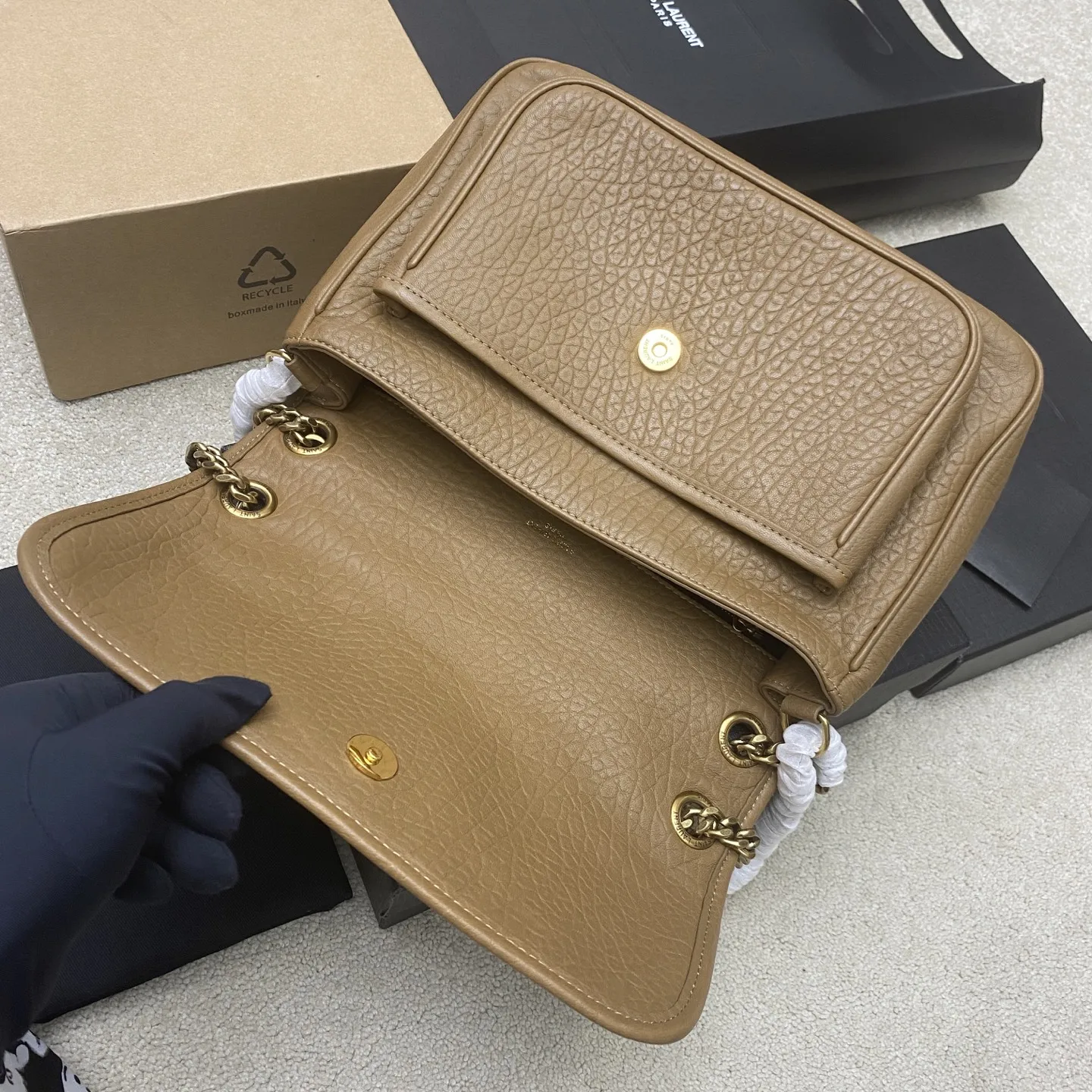 新款大象纹NIKai正面翻盖手袋 饰以金属 LE CASSANDRE 搭配可转换皮革和链条肩带 爆款NIKI大象纹 风靡全球的NIKI 超大容量 大象纹牛皮 工序非常复杂 给你们不一样的视觉效果 绝对不能少的款式
