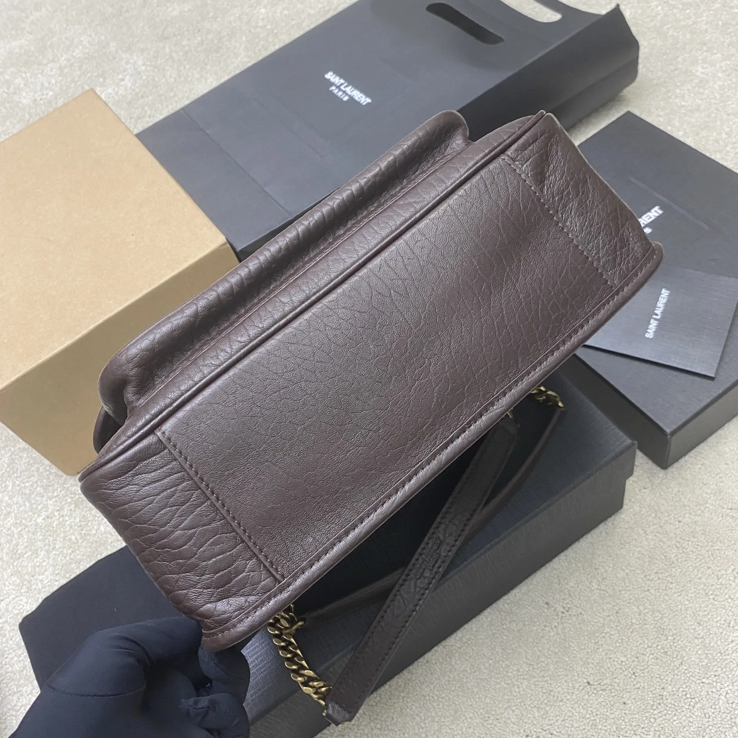 - 详情描述: 这是我们的最高等级,直接拆解正品原件作为模板开发。采用同源材质及全钢五金。从皮质纹理、手感、缝线到烫金、钢印 Logo 及整体轮廓,每一个细节均完美对标正品。即使与正品并排对比,也难察觉任何差异。