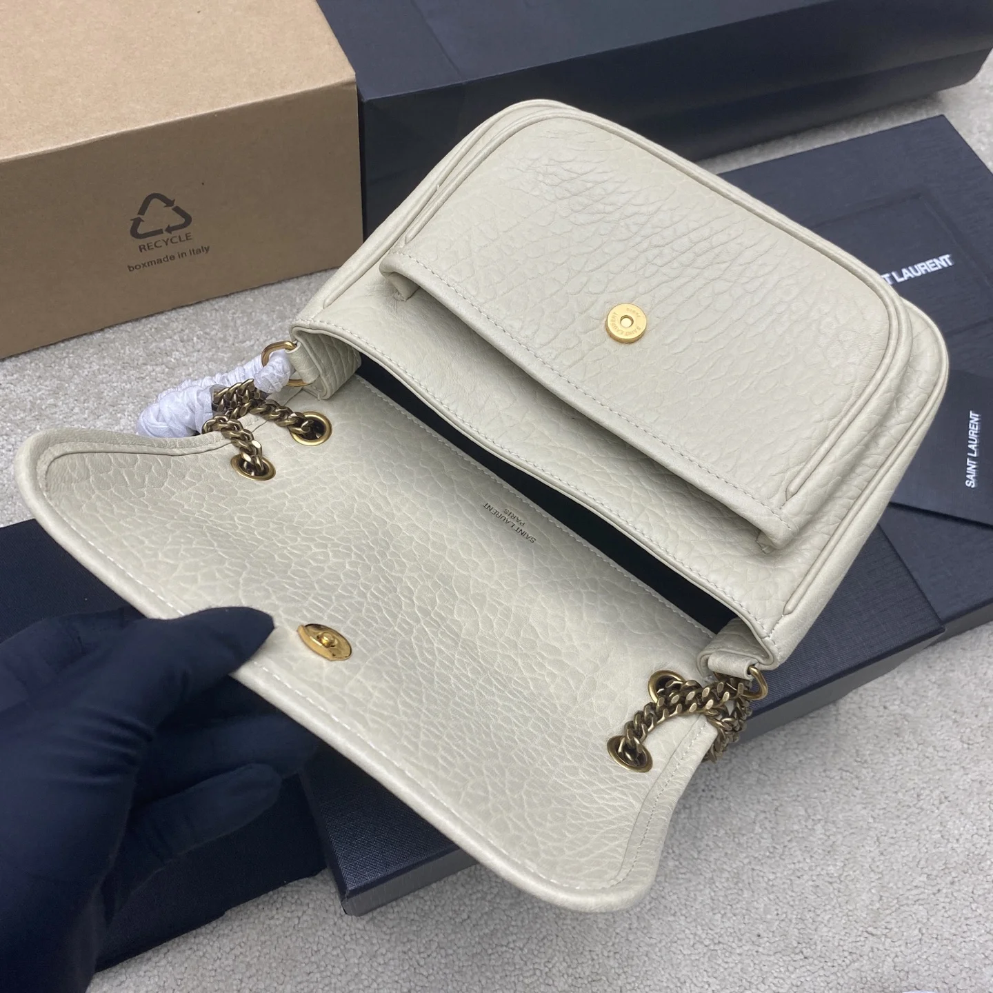 新款大象纹小号NIKai正面翻盖手袋 饰以金属 LE CASSANDRE 搭配可转换皮革和链条肩带 爆款NIKI大象纹 风靡全球的NIKI 超大容量 大象纹牛皮 工序非常复杂 给你们不一样的视觉效果 绝对不能少的款式