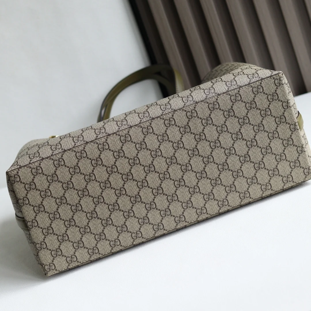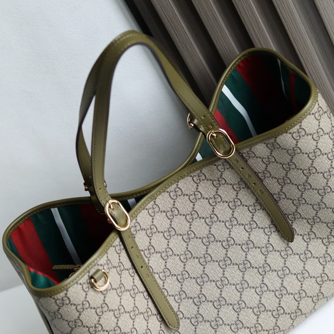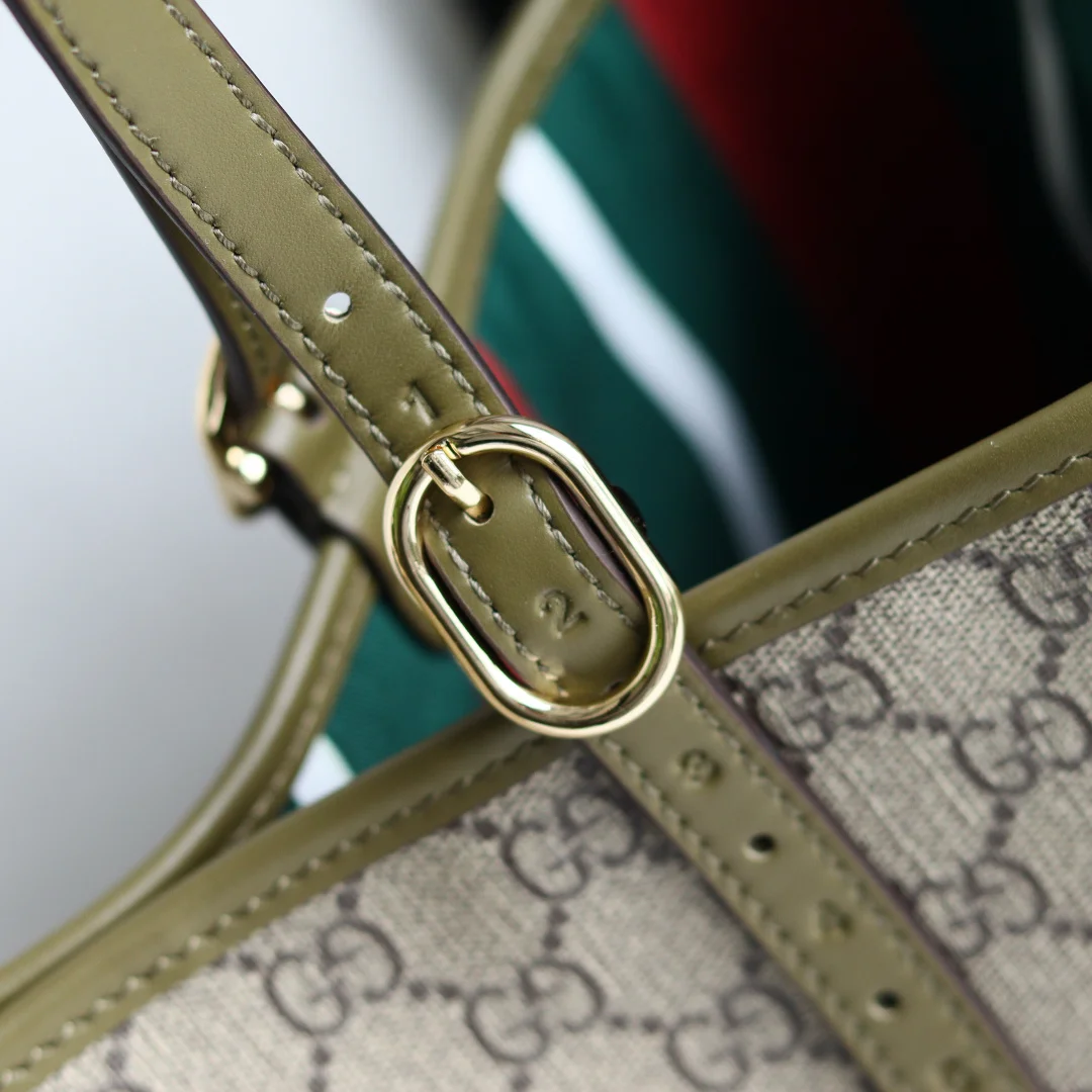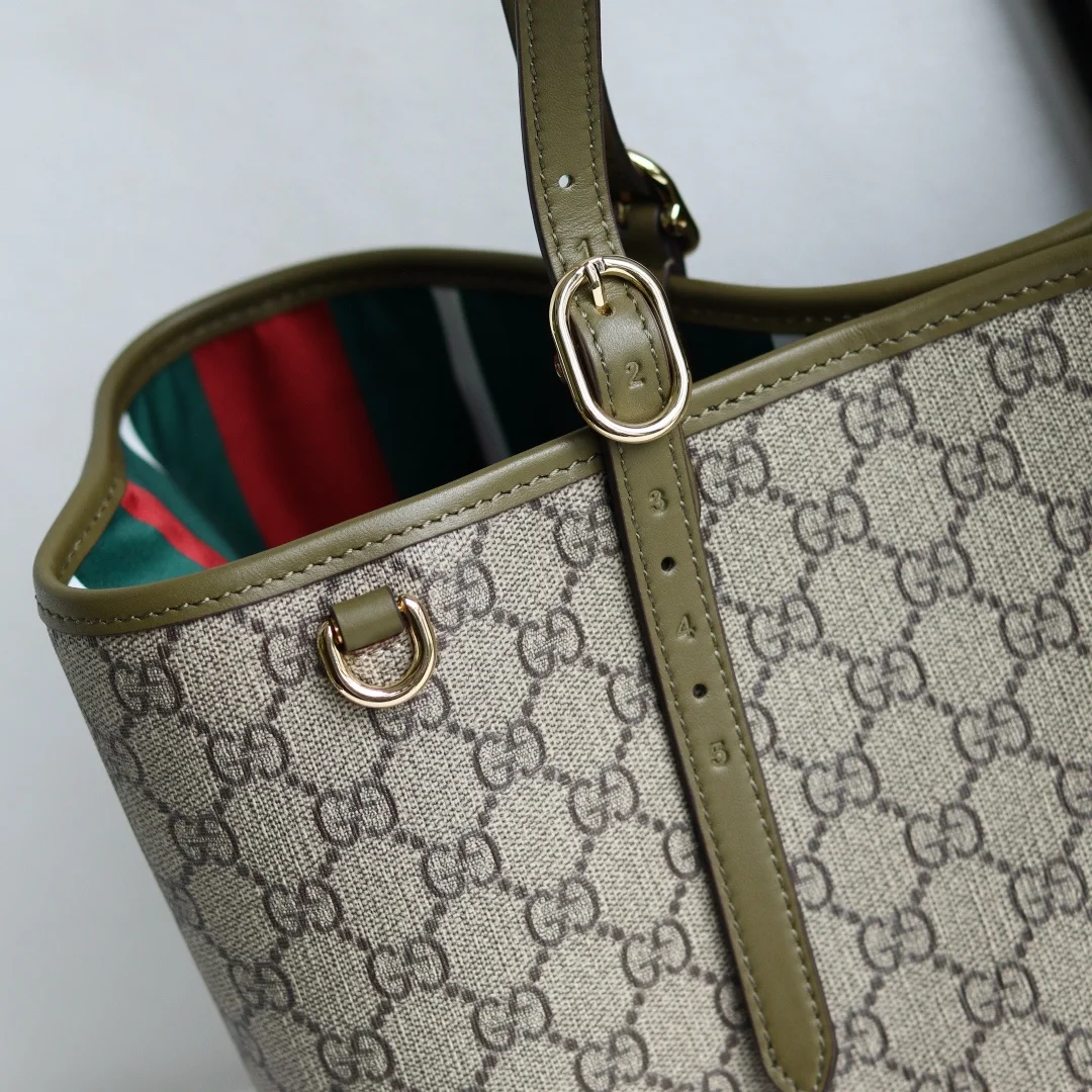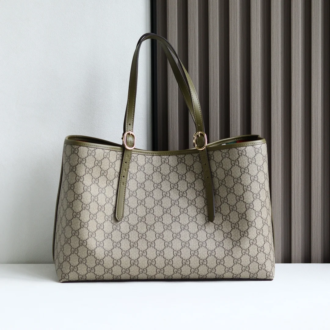 新品 全新GG Emblem系列焕新诠释品牌的隽永优雅风范和精湛工艺 这款中号托特包配有可调节手柄 饰以示数孔眼 灵感源自马术世界