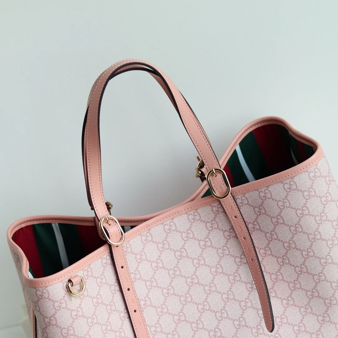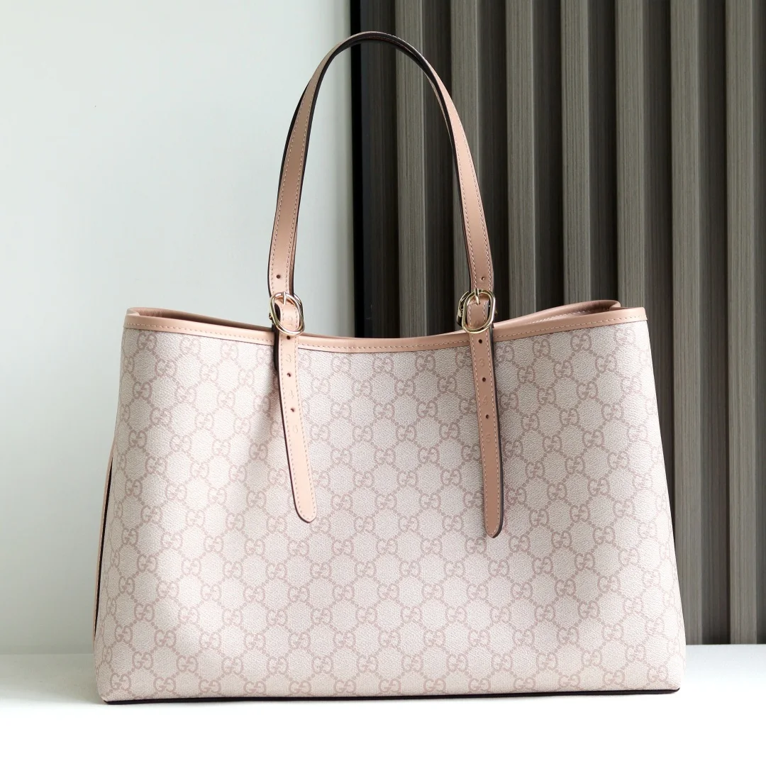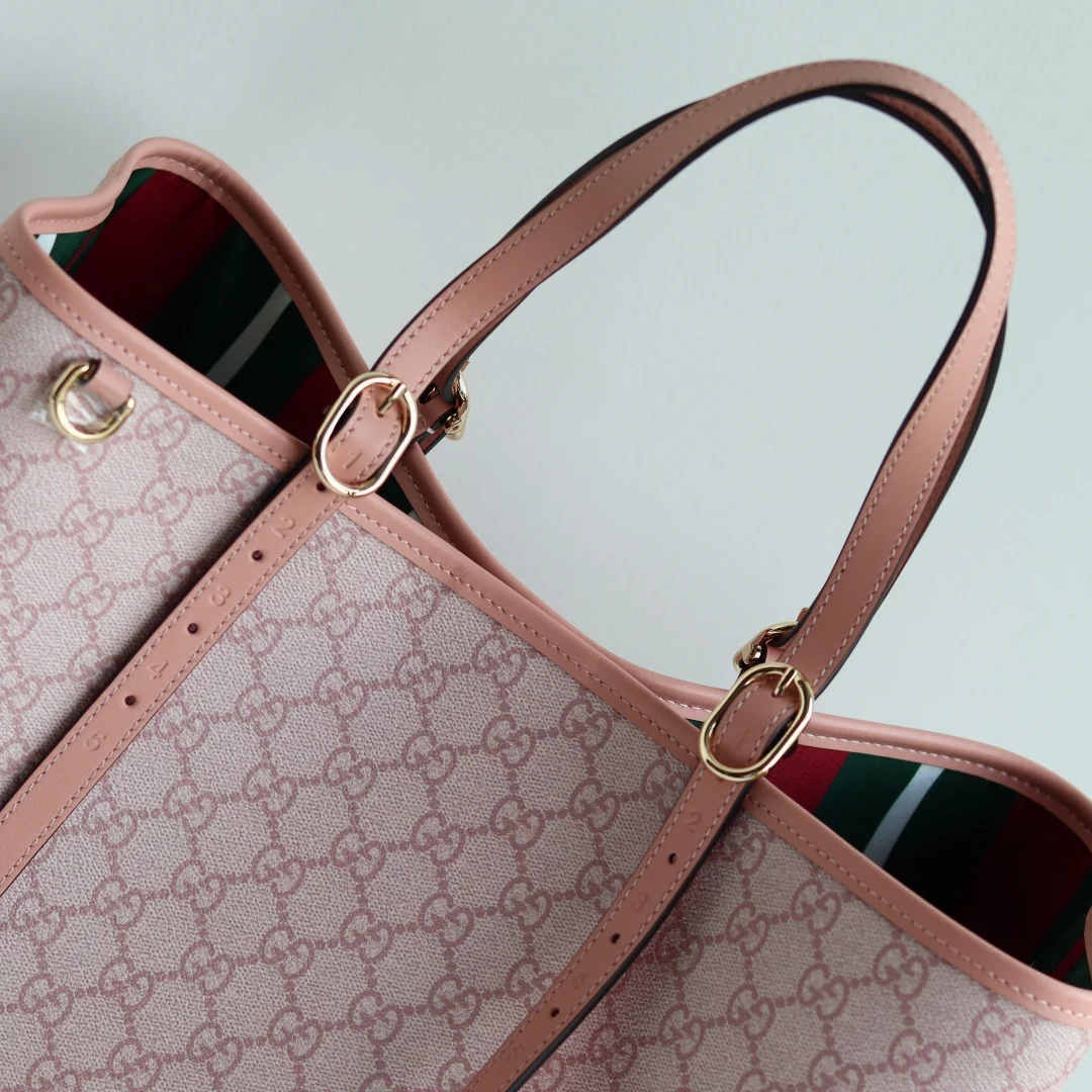 新品 全新GG Emblem系列焕新诠释品牌的隽永优雅风范和精湛工艺 这款中号托特包配有可调节手柄 饰以示数孔眼 灵感源自马术世界