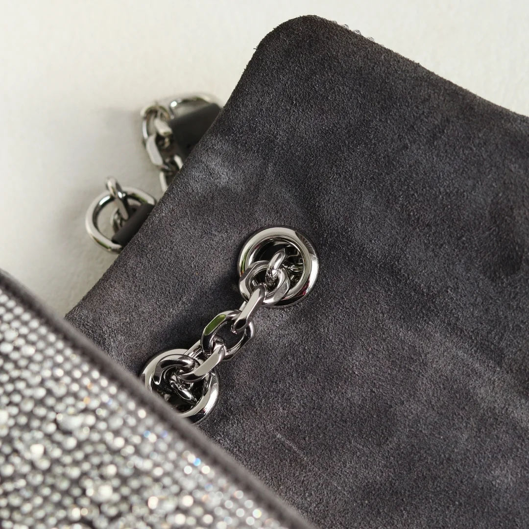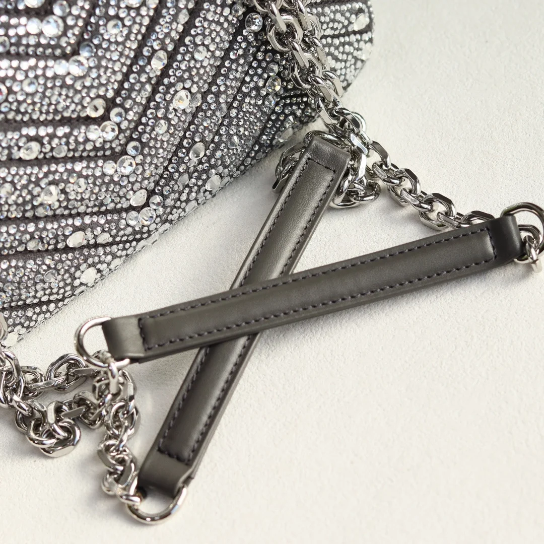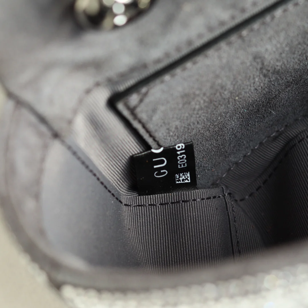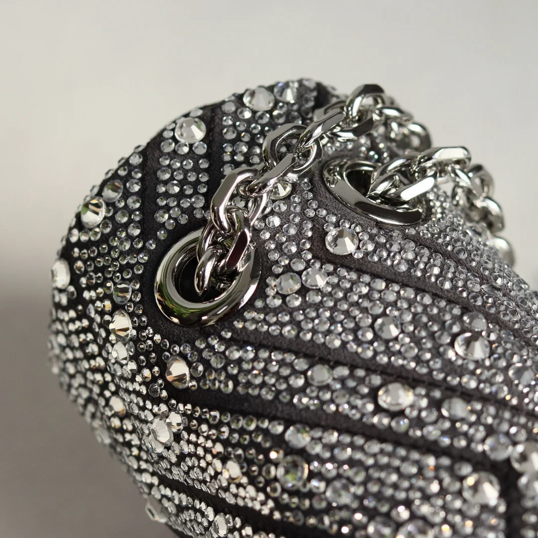 Gucci Marmont马蒙亮钻款双G鎏金与晶光的永恒邂逅马蒙系列复古底蕴 标志性双G徽章之上 满铺手工甄选的璀璨亮钻 在光线下折射出流动星河般的夺目光彩 型号 837280 尺寸 22-125-6cm