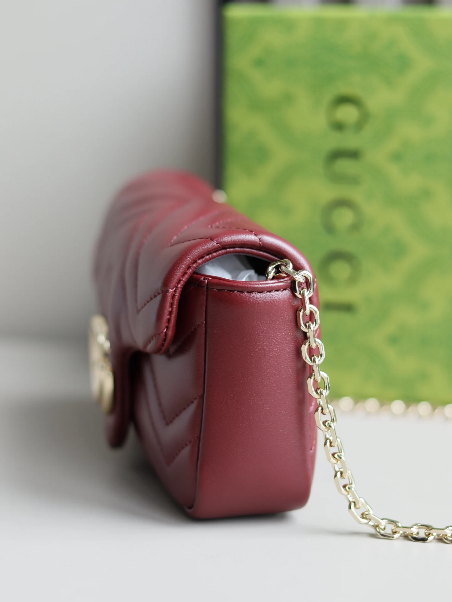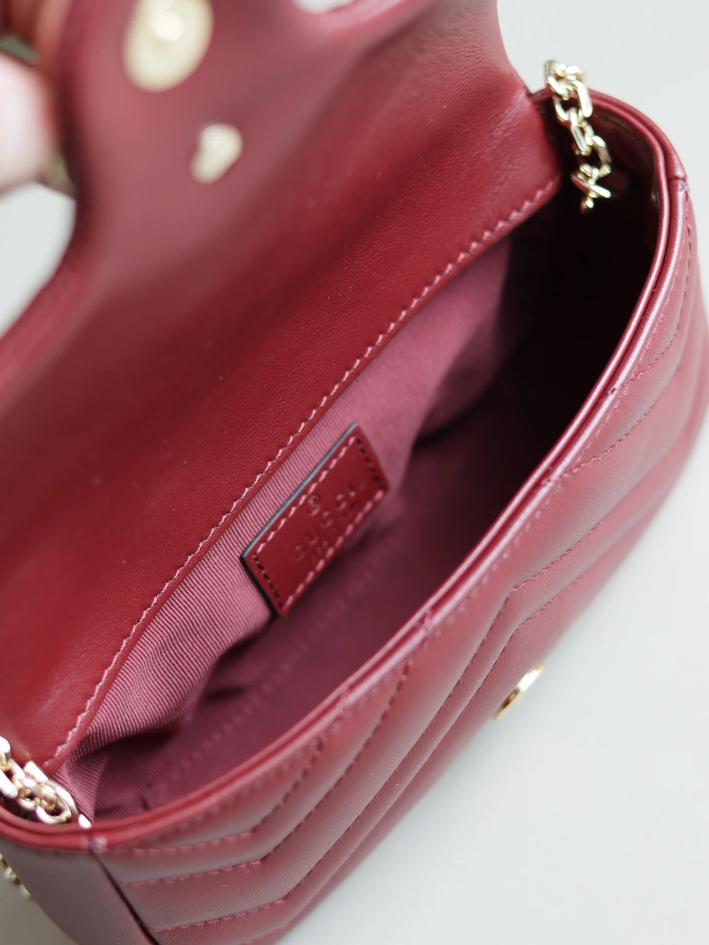 马蒙2.0全新升级品牌标志性GG Marmont系列匠心融蕴双G造型配件和切面链式包带 甄选柔软皮革缔就线条柔和的包型 这款迷你包袋缀饰20世纪70年代初次亮相的品牌典藏标识 型号 841290