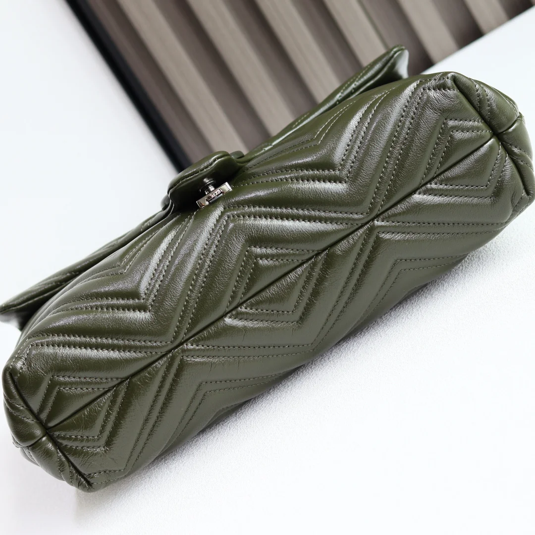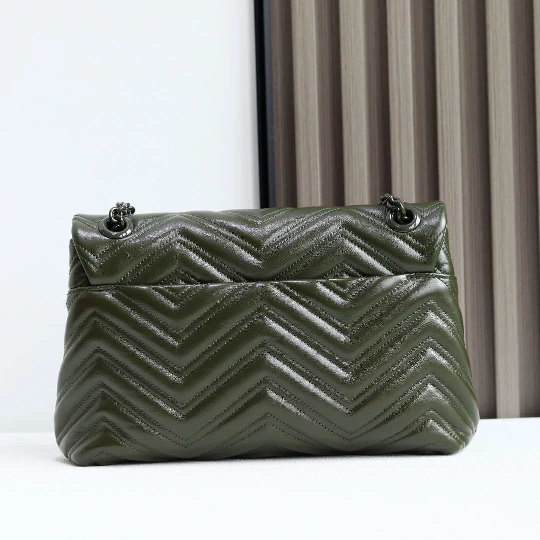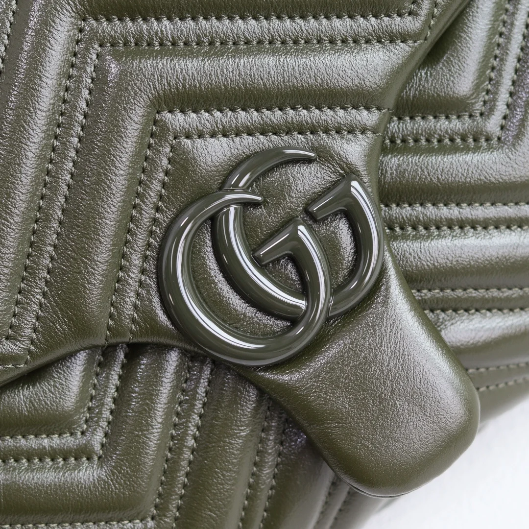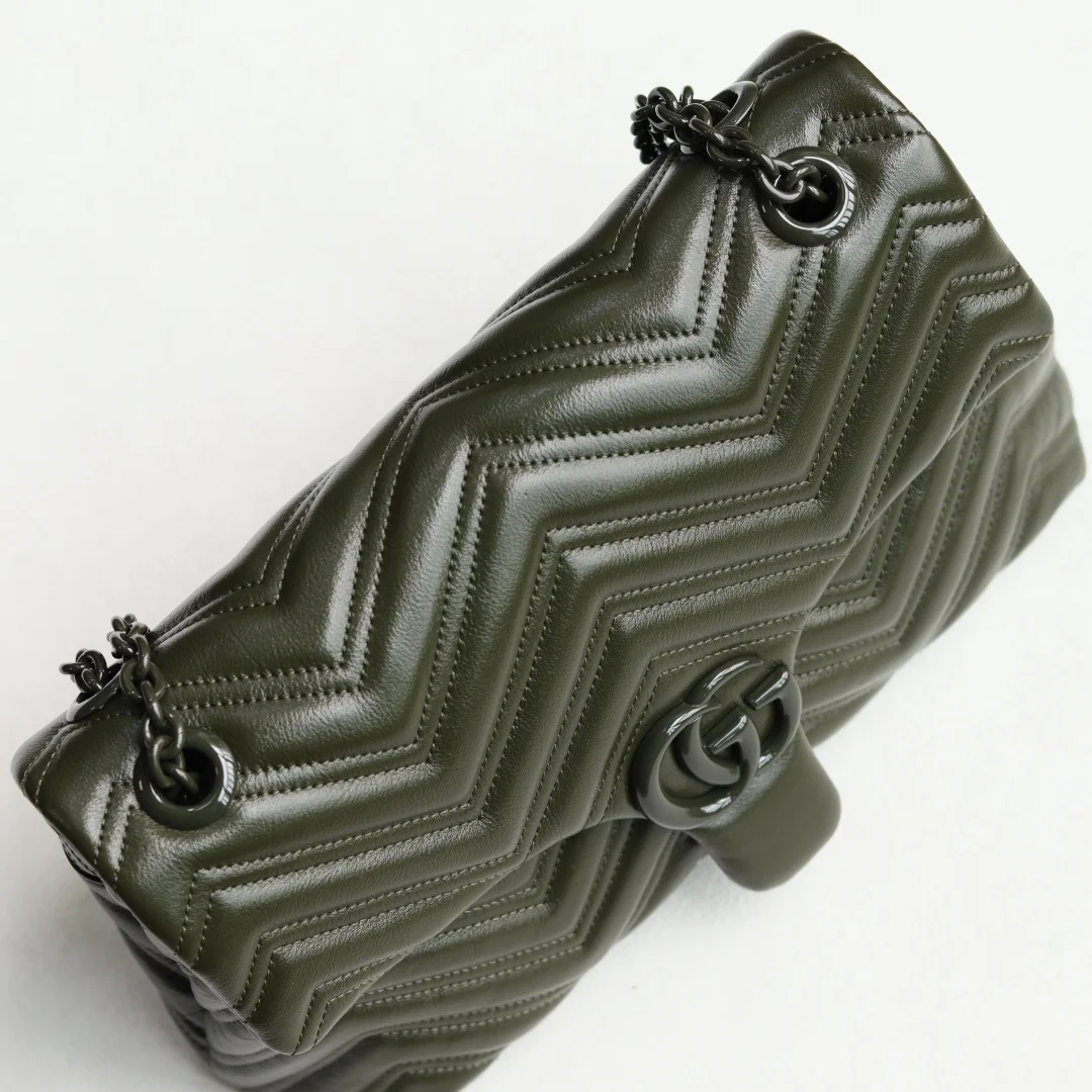 品牌标志性GG Marmont系列匠心融蕴经典双G元素和切面链式包带 缔就柔软不失挺括的廓形设计 这款单品采用柔软轻质绗缝V型牛皮革匠造而成 搭配同色调珐琅配件与链条