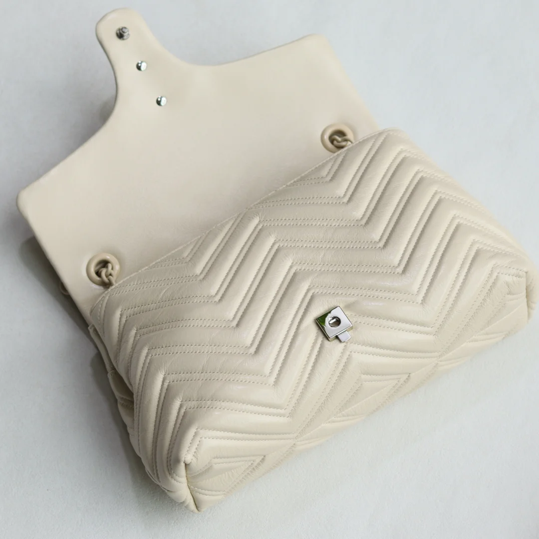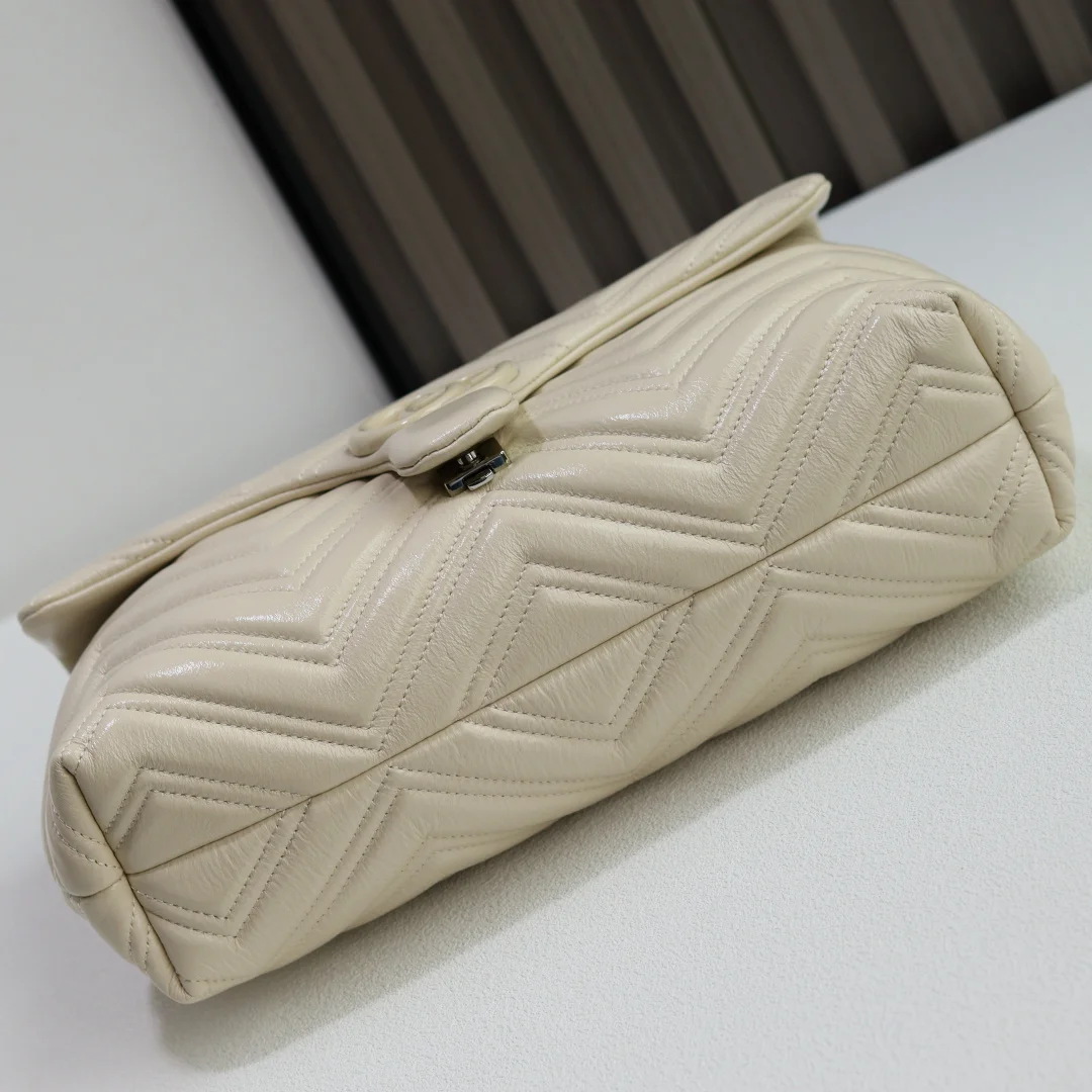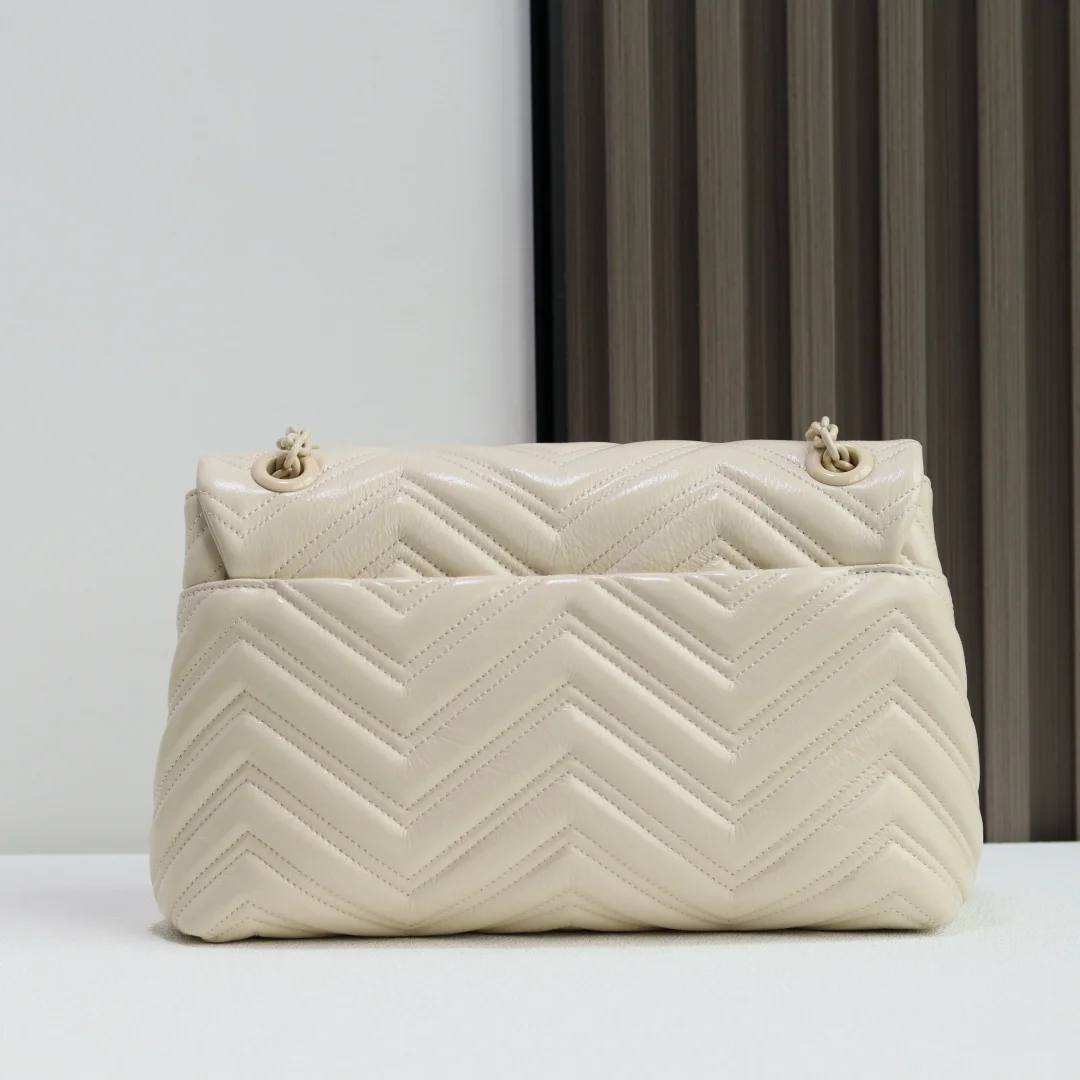 品牌标志性GG Marmont系列大号匠心融蕴经典双G元素和切面链式包带 缔就柔软不失挺括的廓形设计 这款单品采用柔软轻质绗缝V型牛皮革匠造而成 搭配同色调珐琅配件与链条