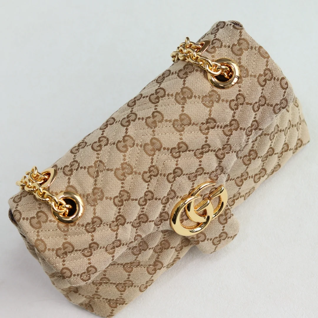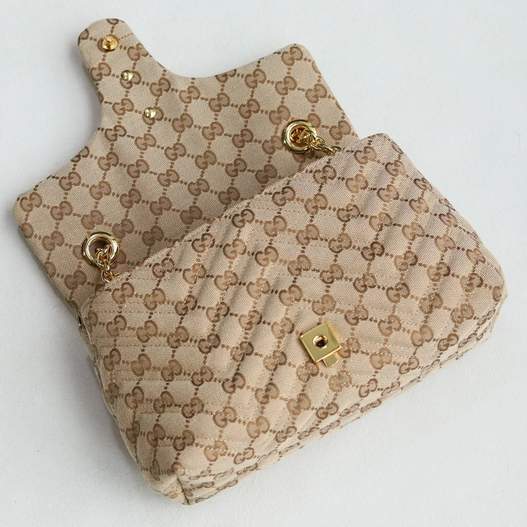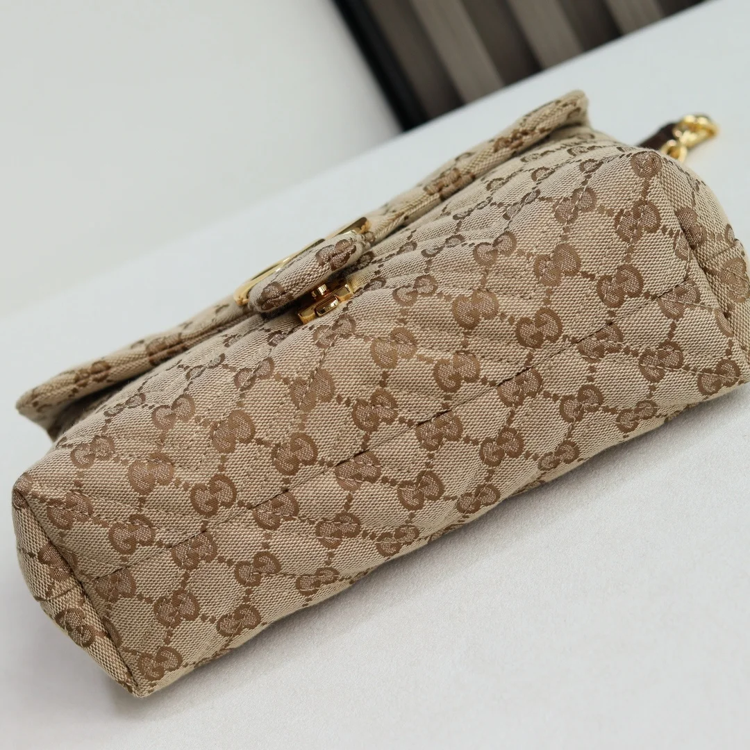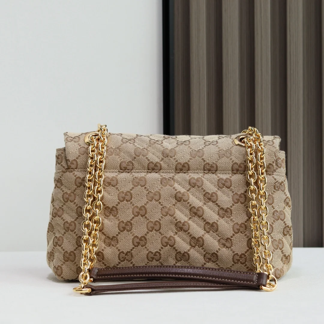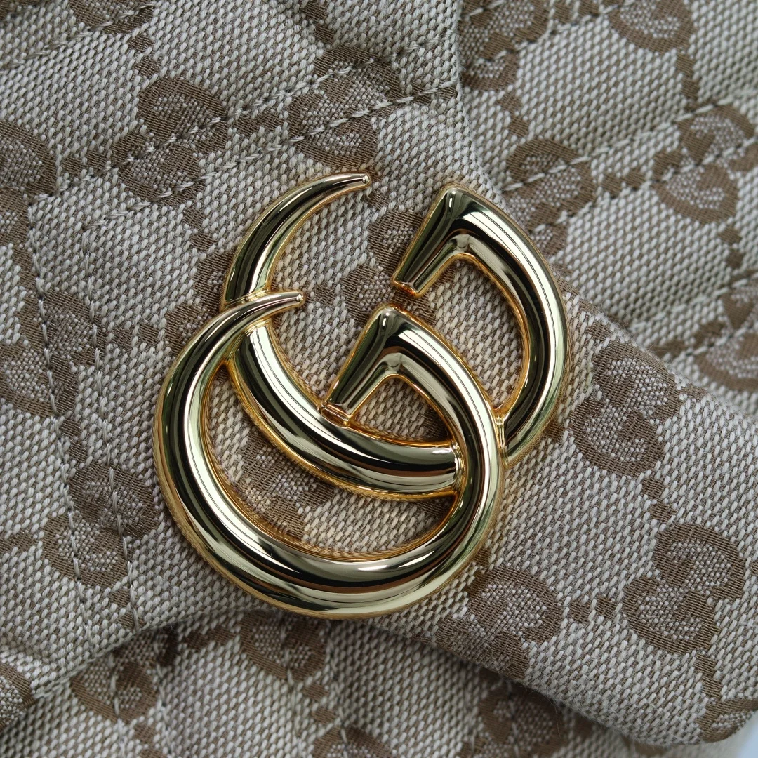 这款品牌经典GG Marmont系列手袋 选用极为柔软的牛皮革匠心打造 缀饰双G造型配件 搭配立体多面的链式肩带 整个包身构造柔软精致