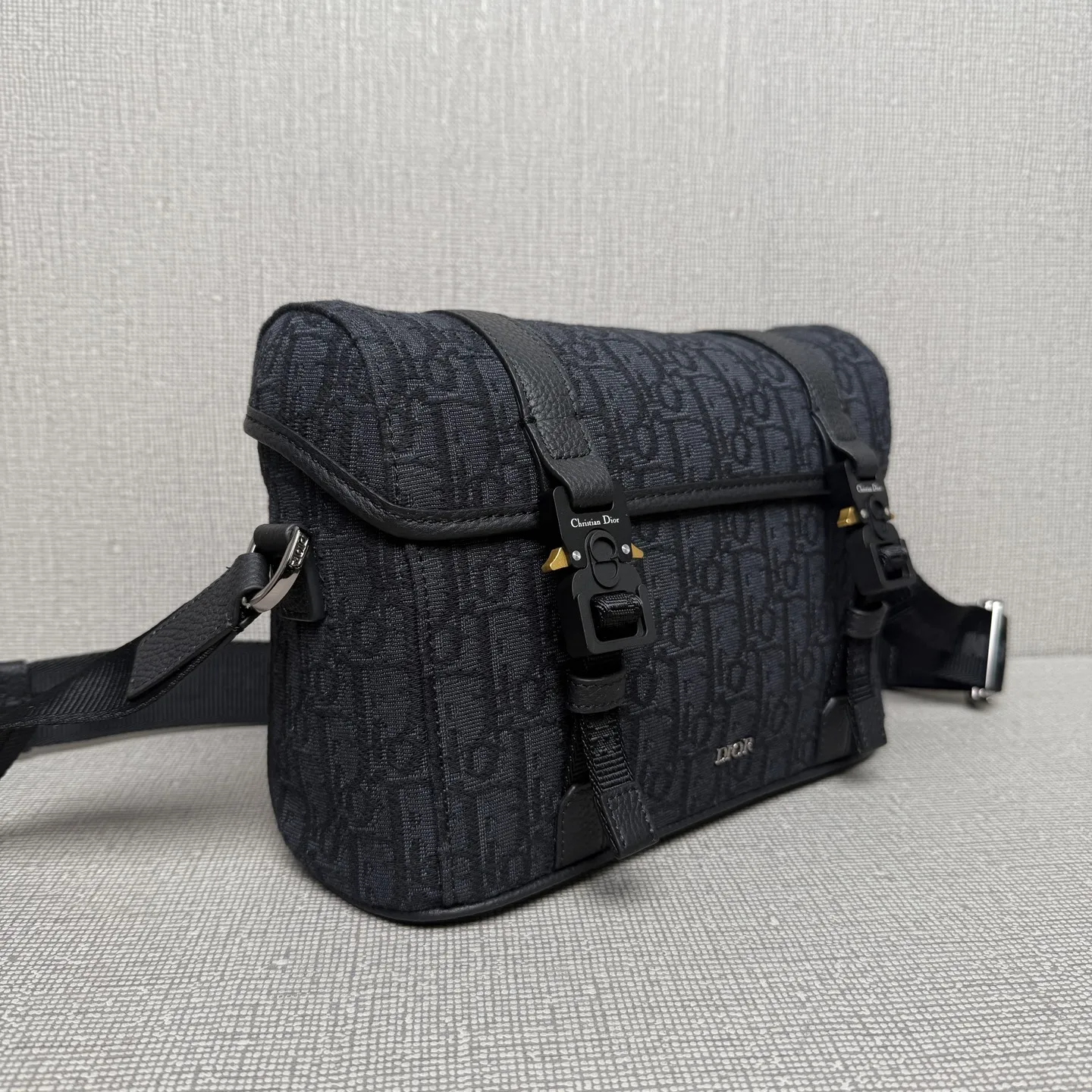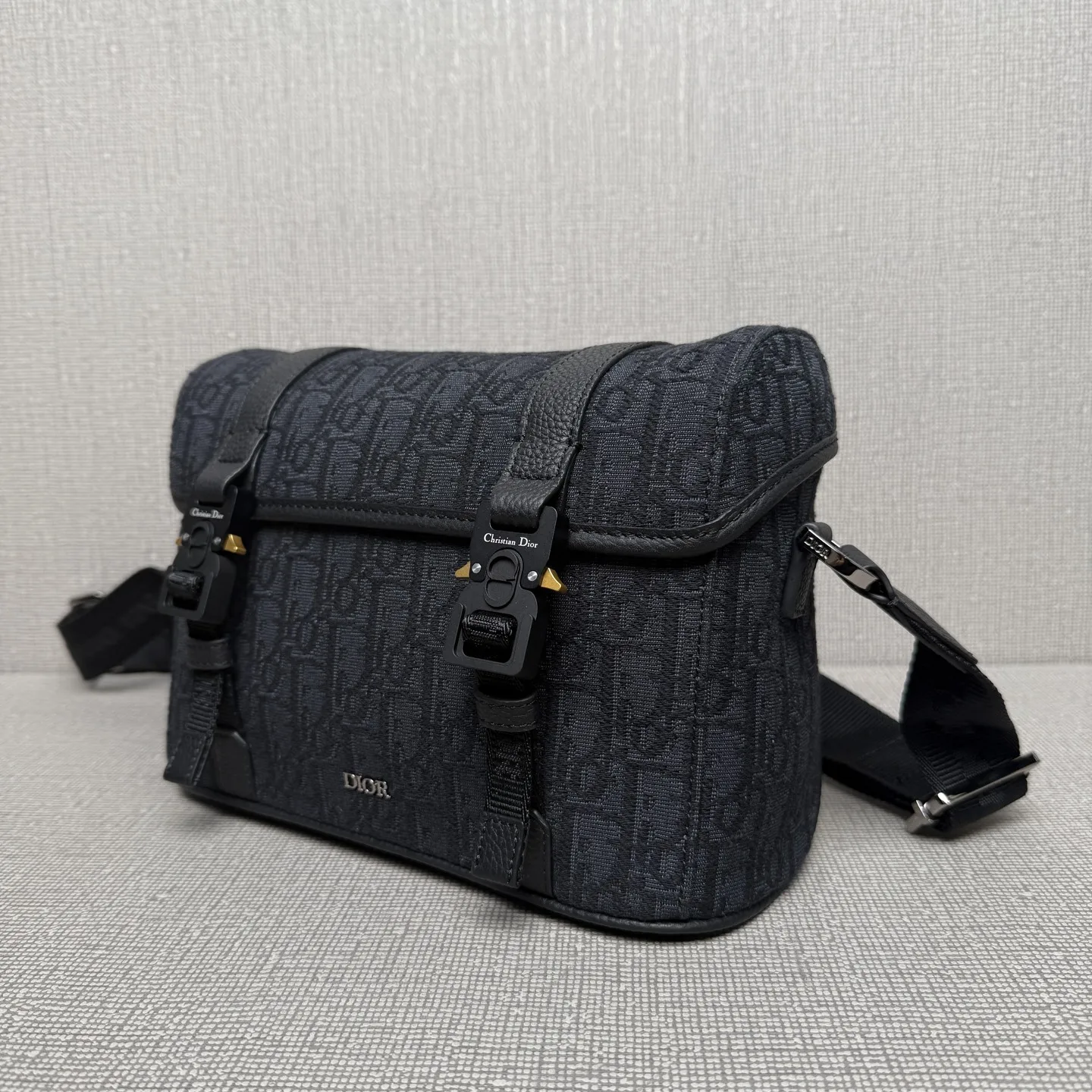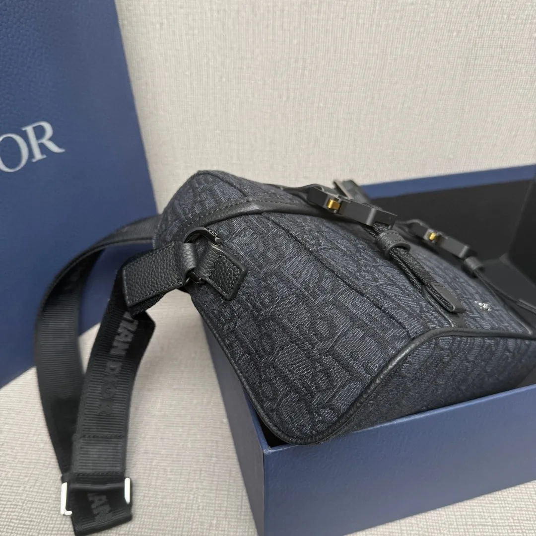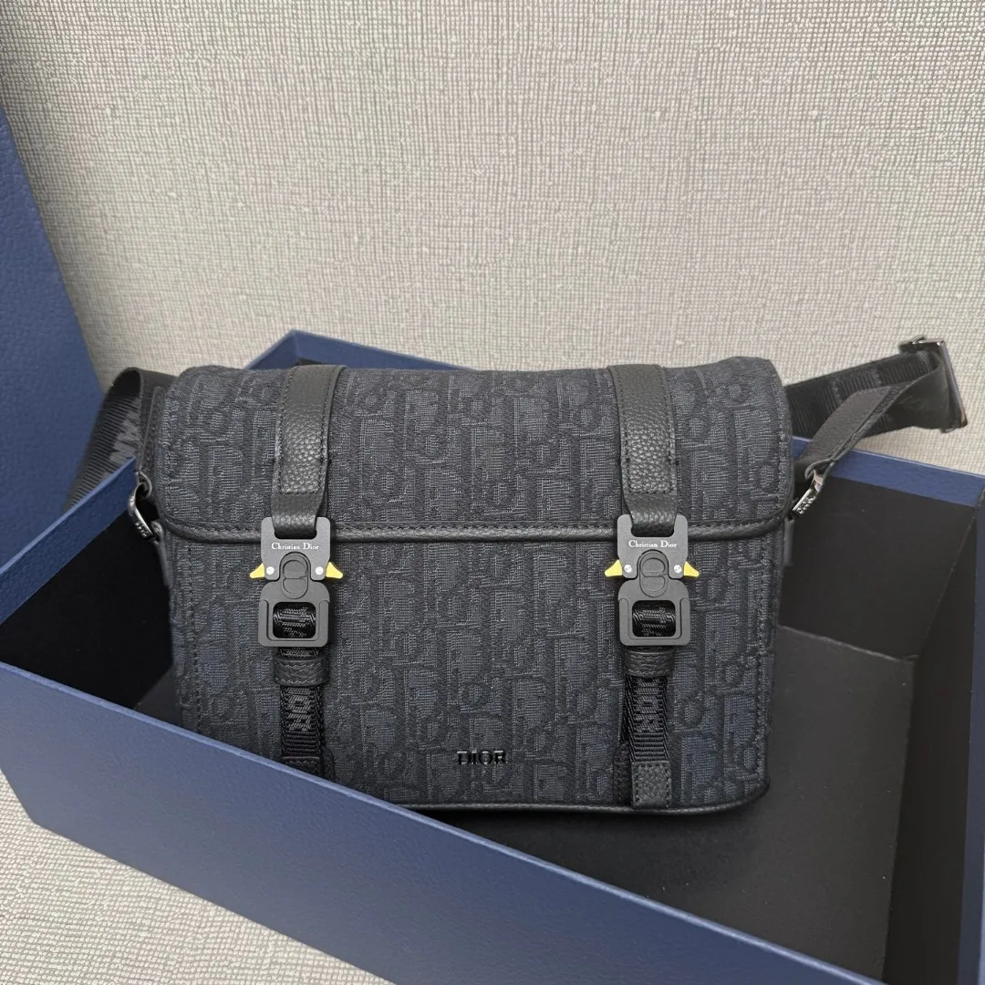 迪奥9271 老花配皮翻盖信使包 男士斜挎包