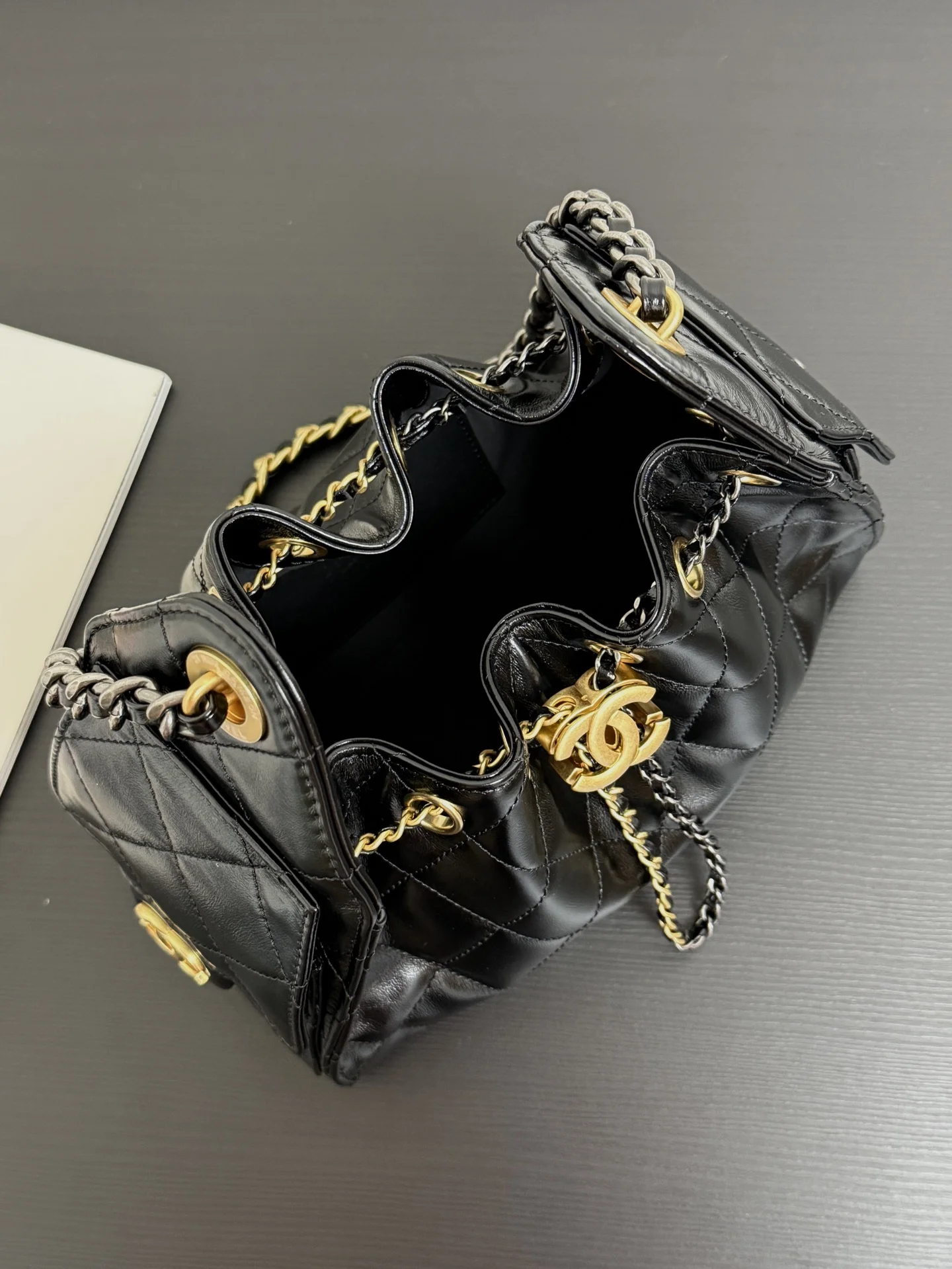 原厂皮 Ohanel26C水桶抽绳包 鸳鸯链mini