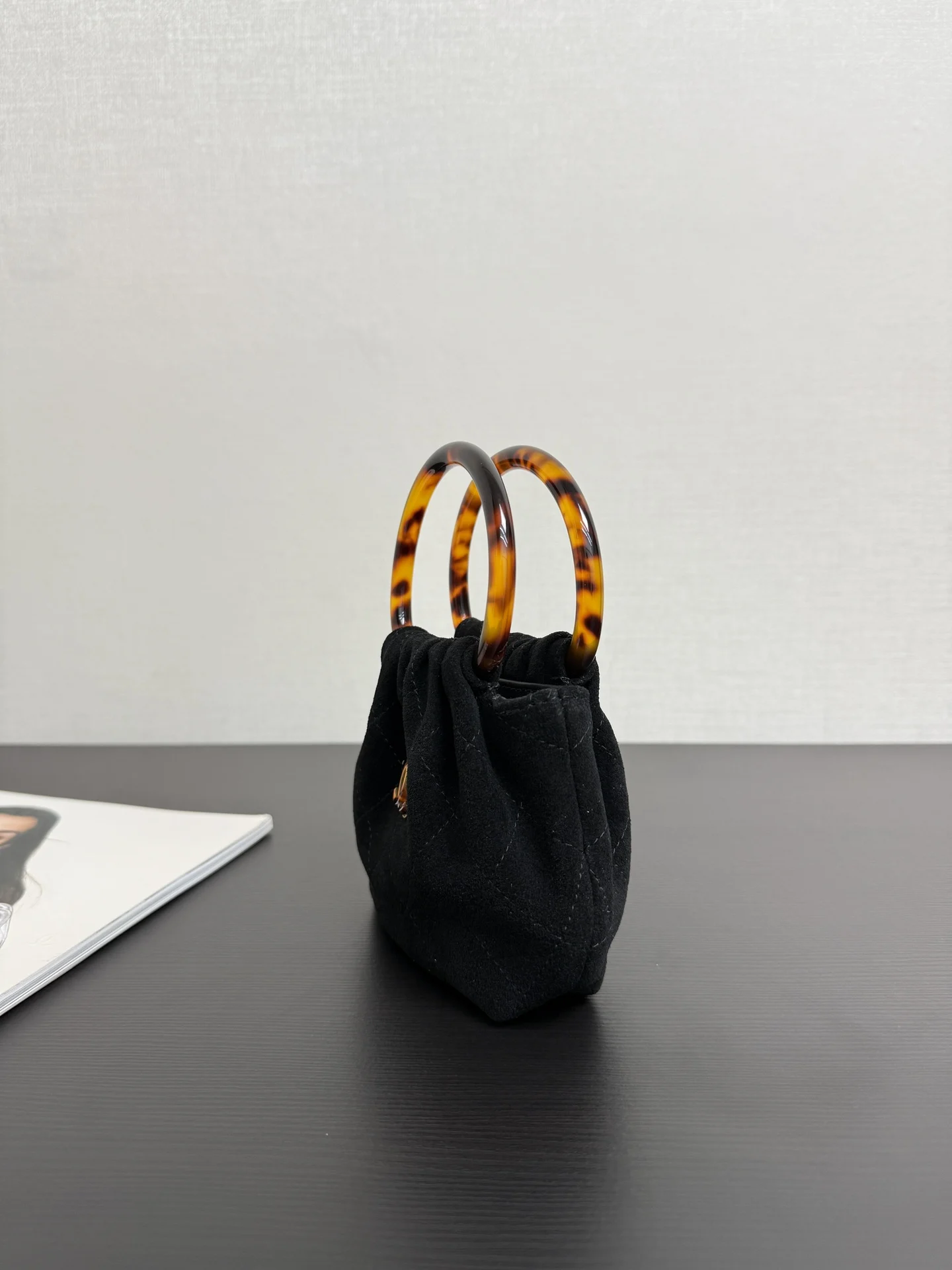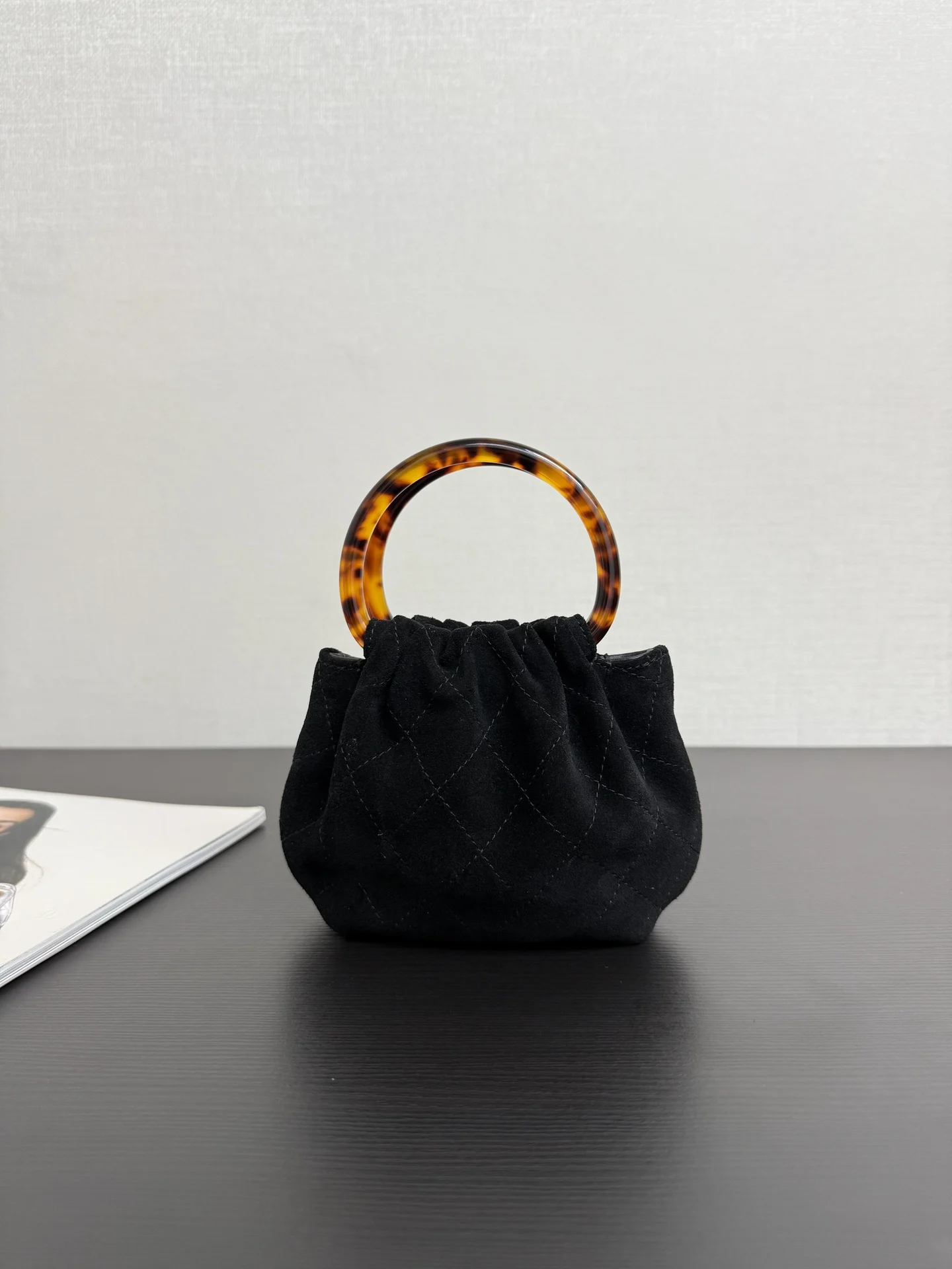 圆圈小包包好可爱复古玳瑁手柄的设计 透着微微光泽容易也很客观 麂皮材质摸起来触感也很好 超级舒服 时髦小费包 size 16*11*4cm 很小 放不下手机 99534