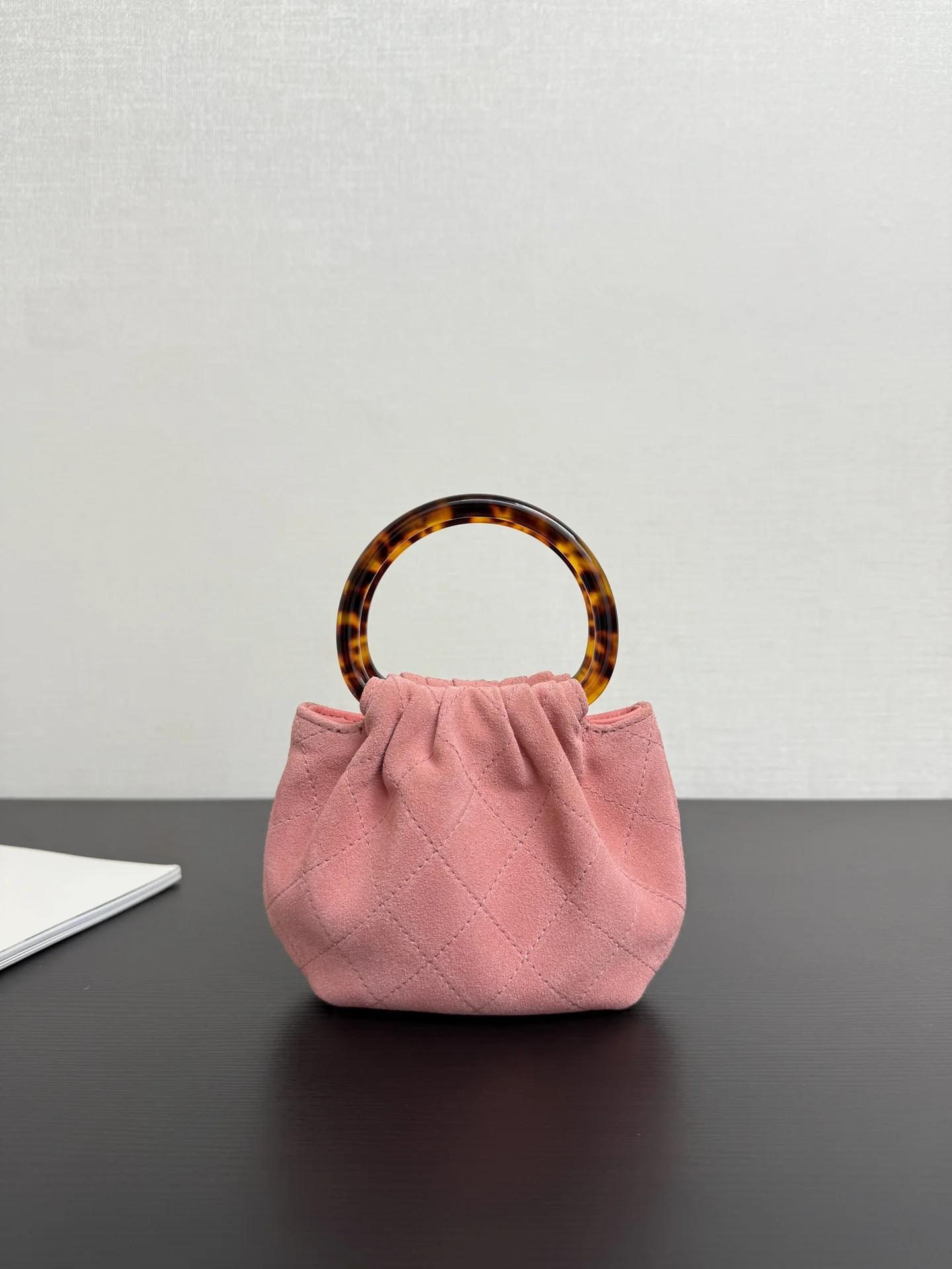 原厂皮 现货26C 早春度假系列玳瑁手柄麂皮mini小包圆圈小包包好可爱复古玳瑁手柄的设计 透着微微光泽容易也很客观 麂皮材质摸起来触感也很好 超级舒服 时髦小费包 size 16*11*4cm 很小 放不下手机 99534