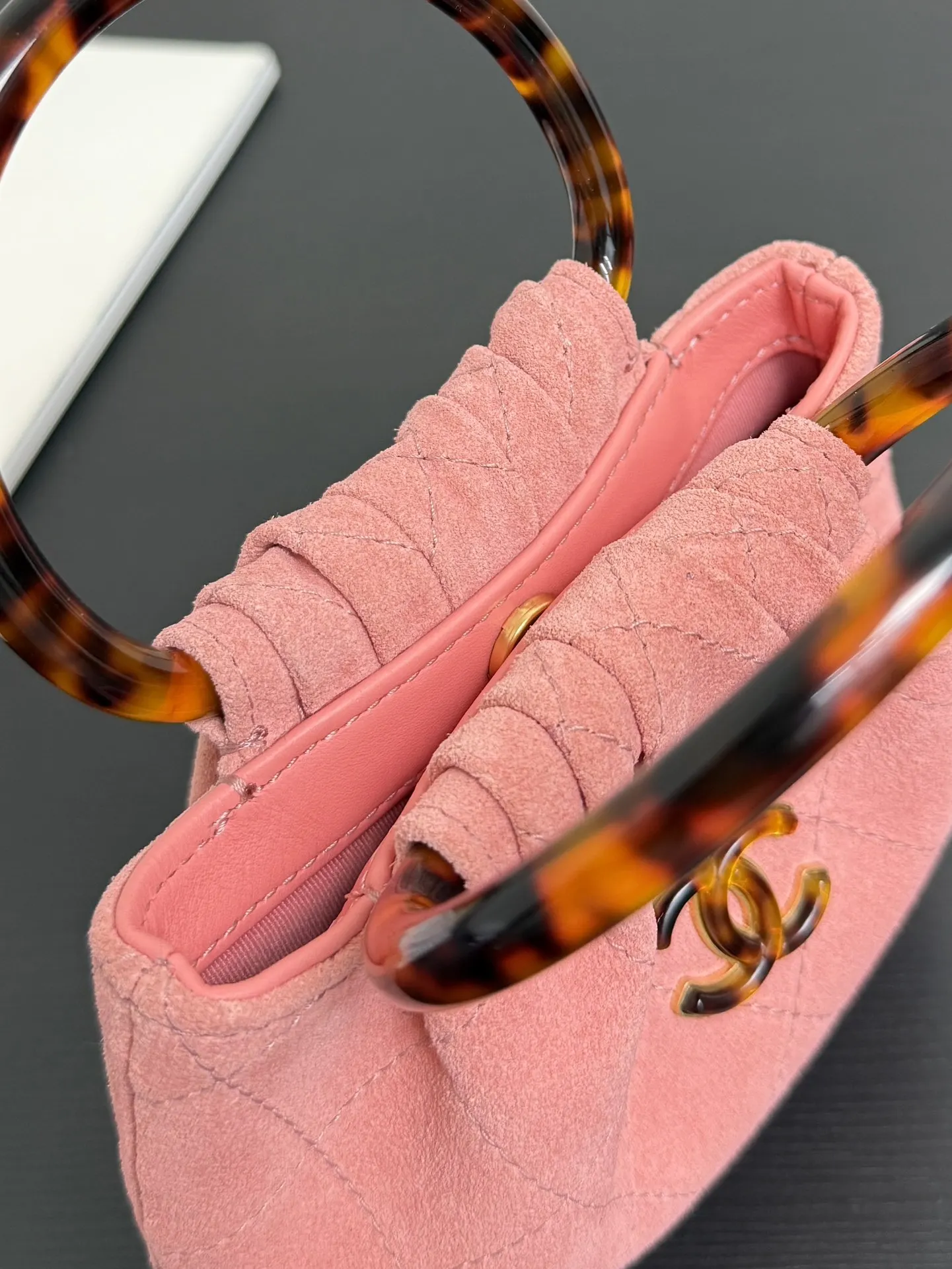 原厂皮 现货26C 早春度假系列玳瑁手柄麂皮mini小包