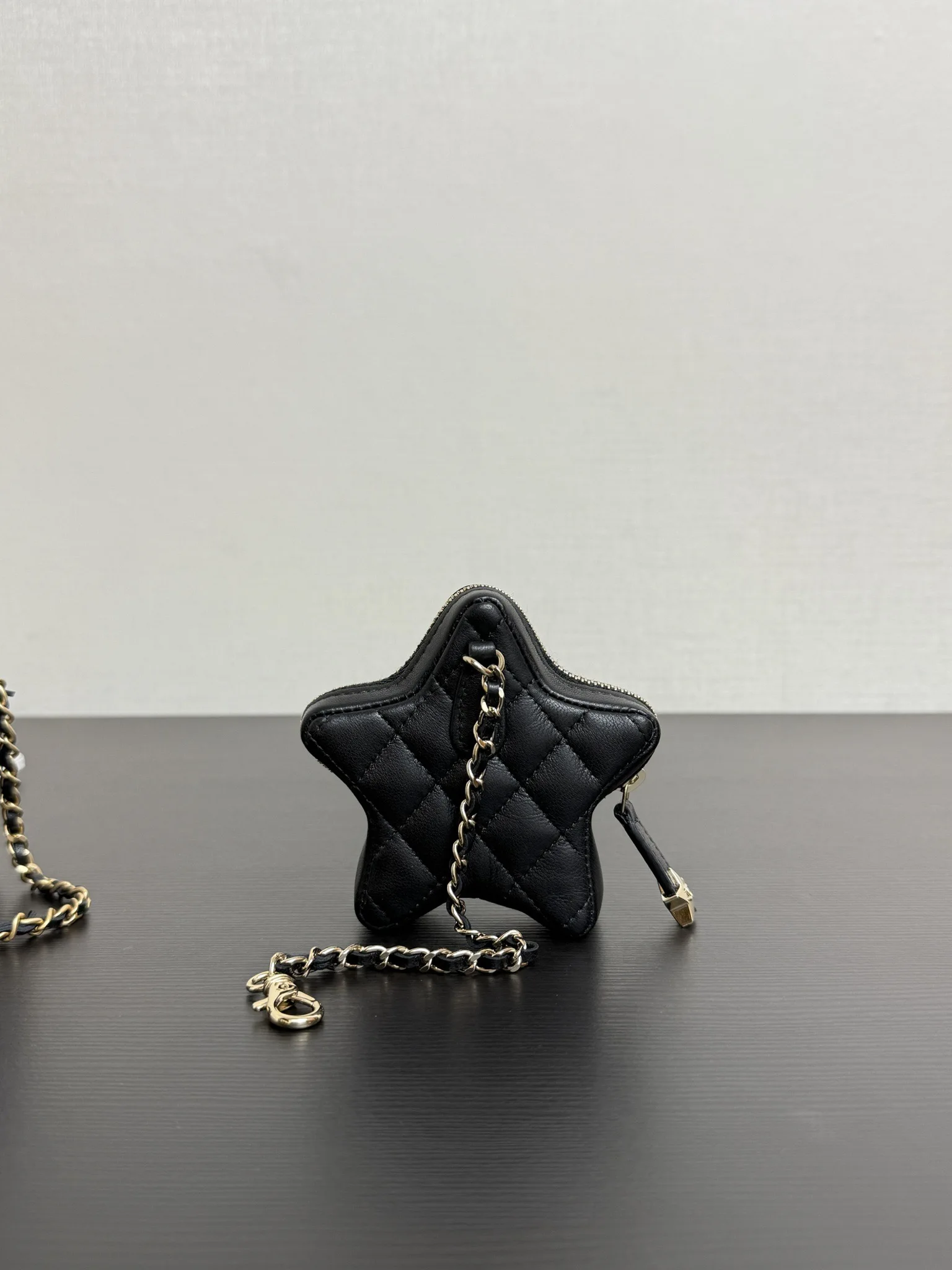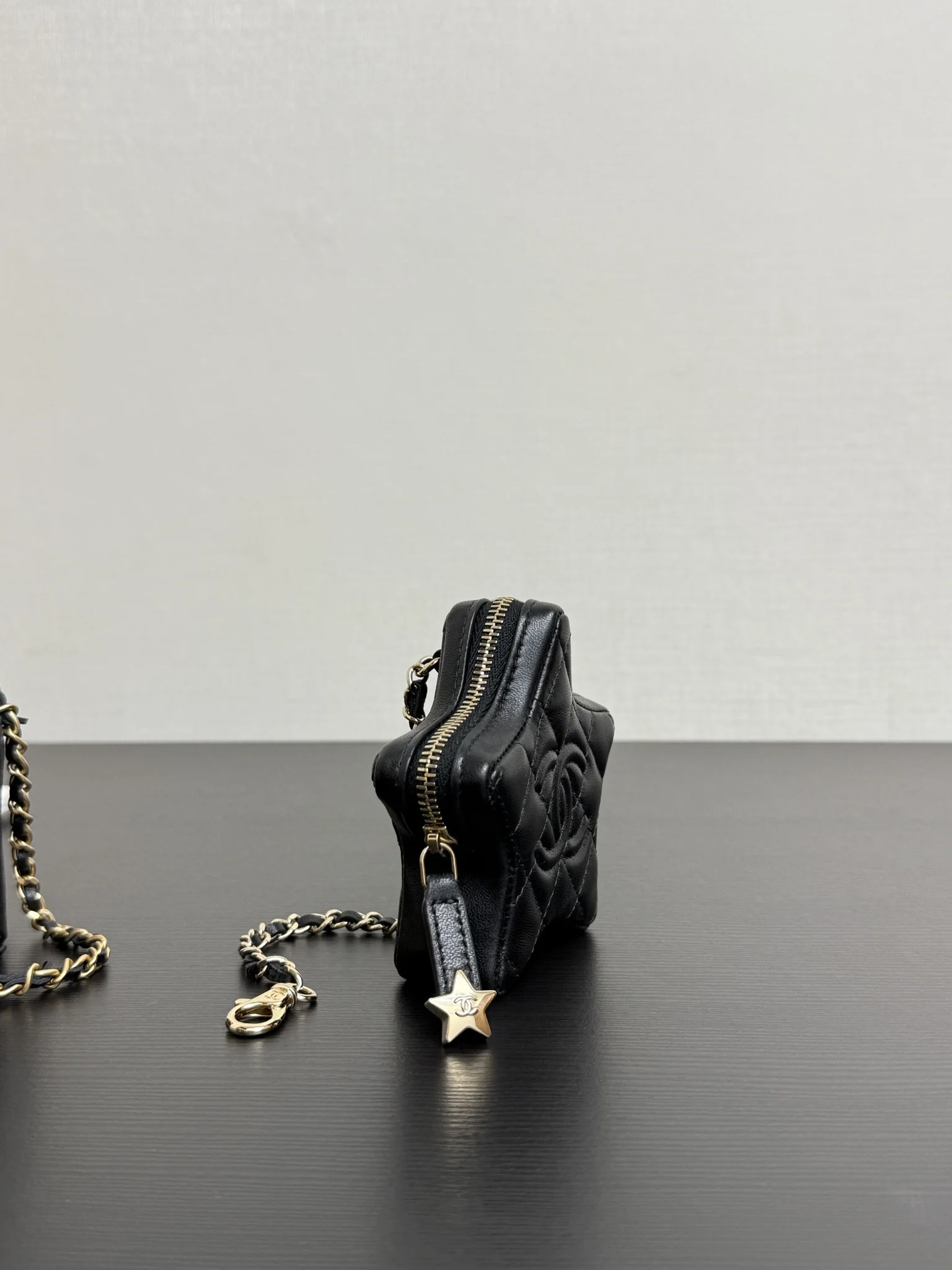 原厂皮 现货26c星星小挂件黑色现货来啦 zp实拍金色链条包搭配五角星挂件 简直太美啦 是一眼心动的包包五角星挂坠也可以做零包 萌萌哒小可爱解锁多种背法 可以自己diy链条斜挎 干练精致可爱 快来冲啊 99545