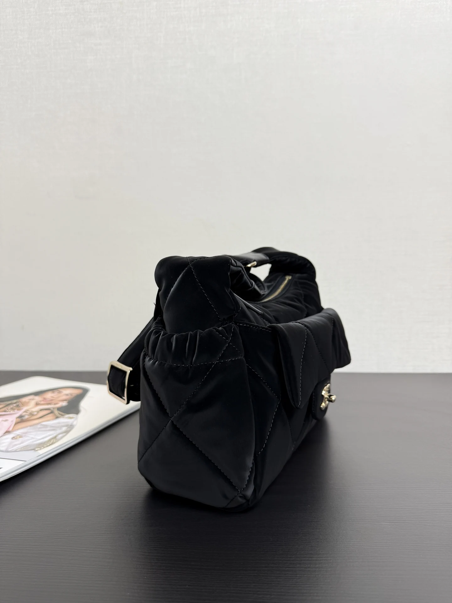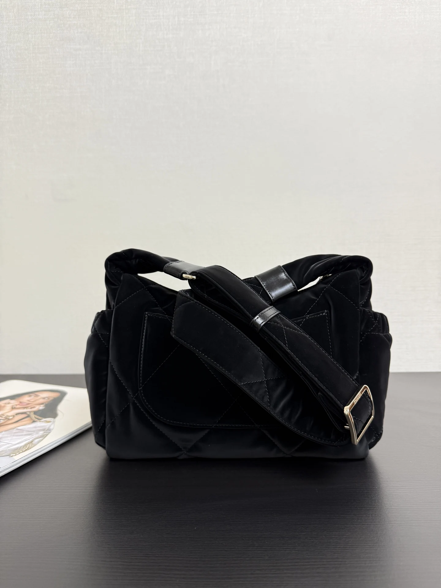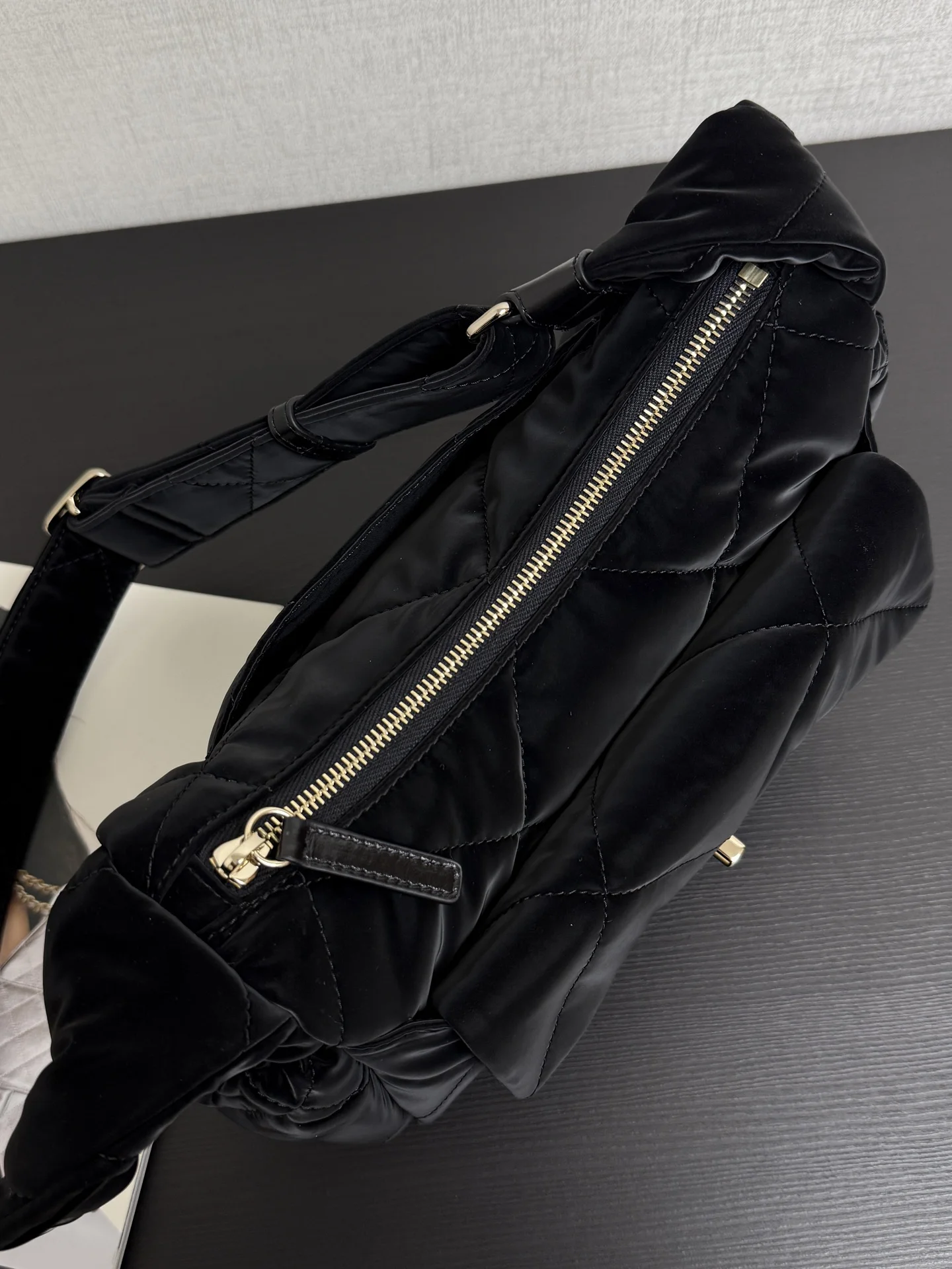 滑雪系列依然不负众望 款式都超级好看鸭男女都可以背的一款包 内容量也是超级大 又飒又酷材质是进口丝绒面的尼龙布 如果摸了实物手感你会爱上的这款hobo有两个size 大号 99549