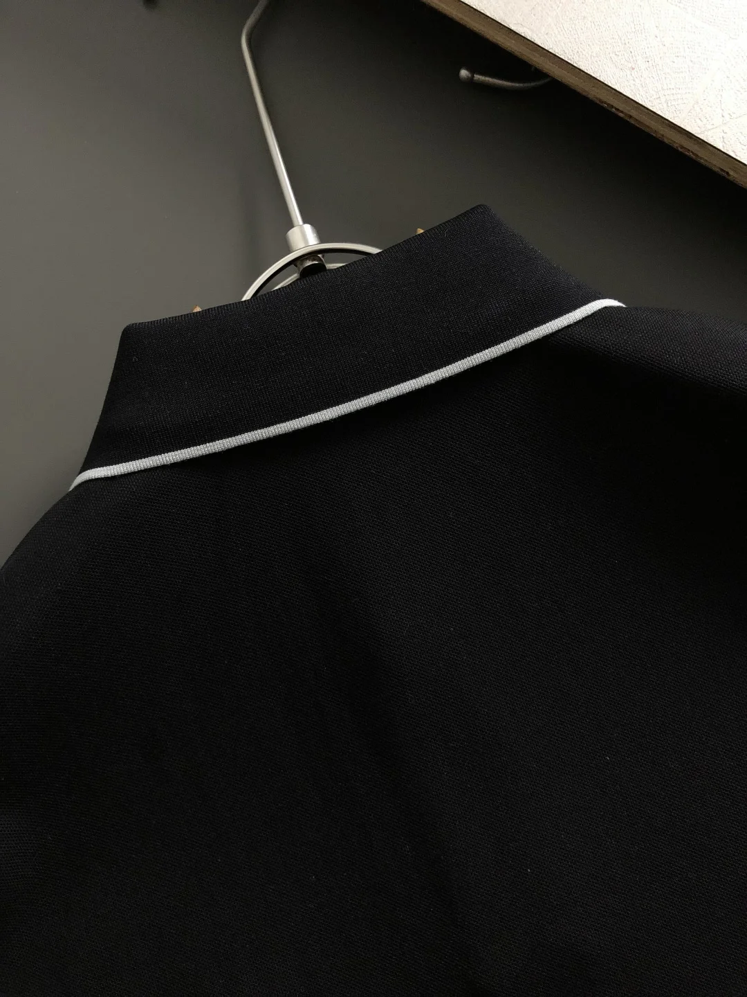 诺悠翩雅黑白撞色亨利领短袖
