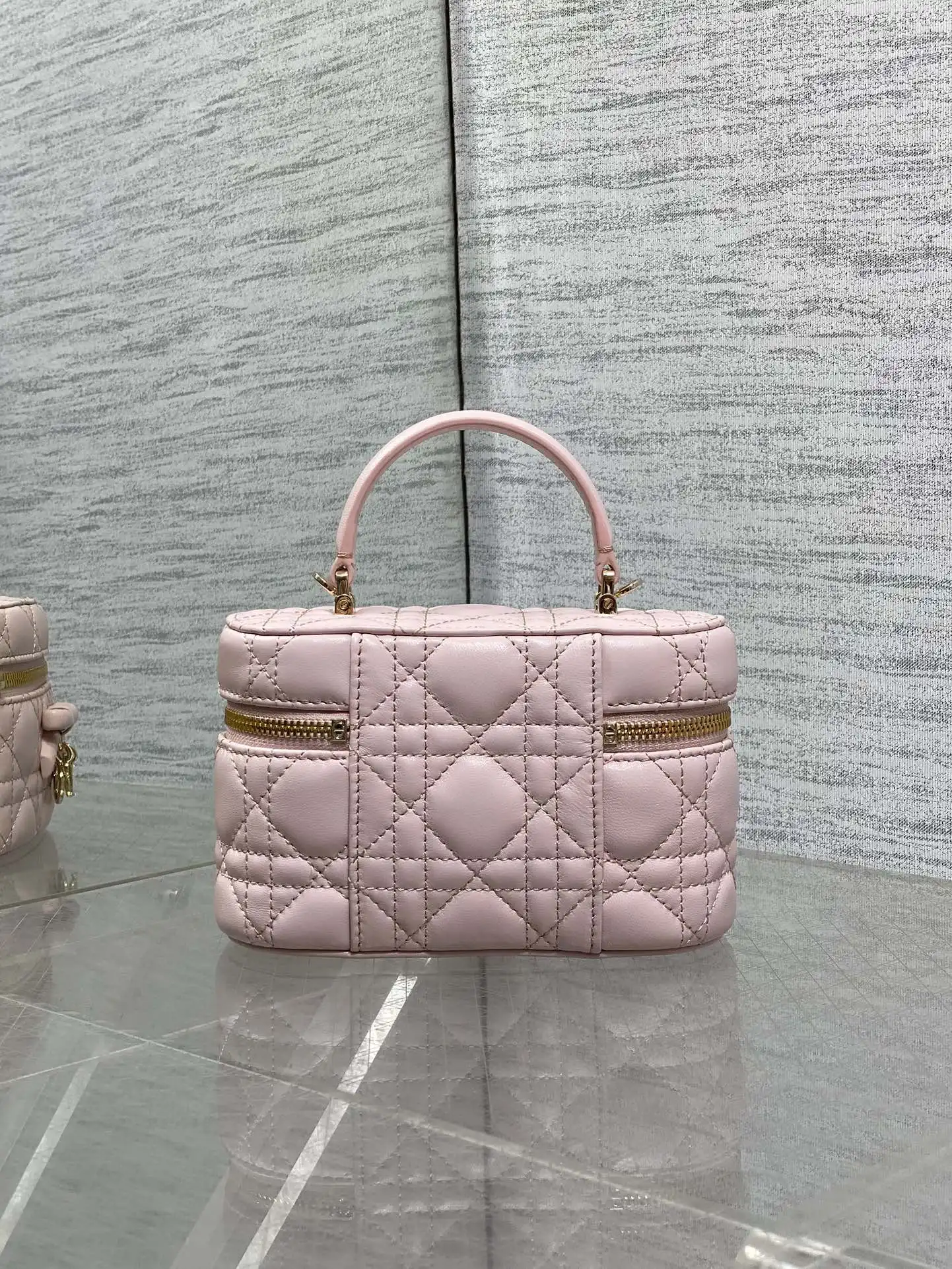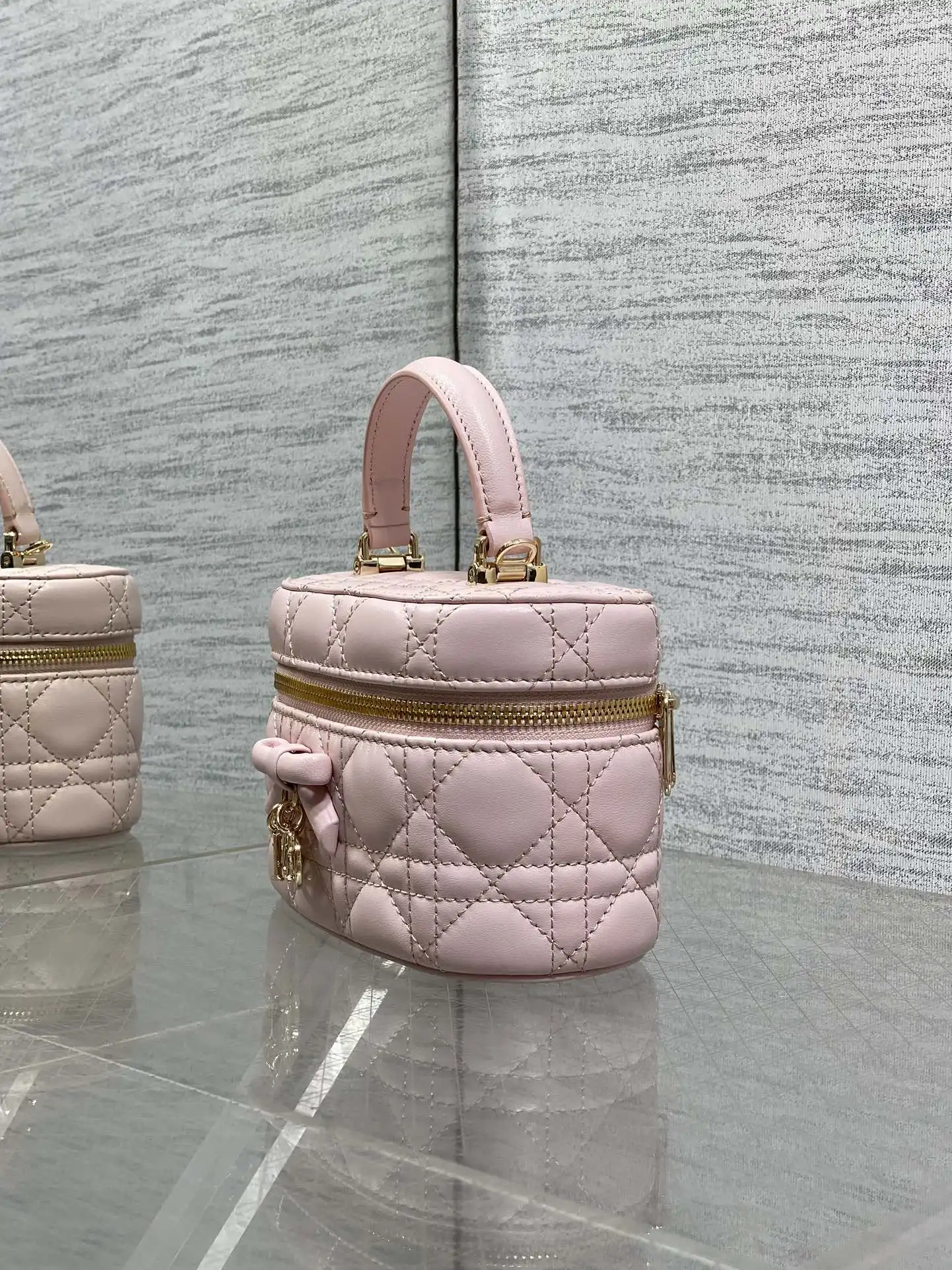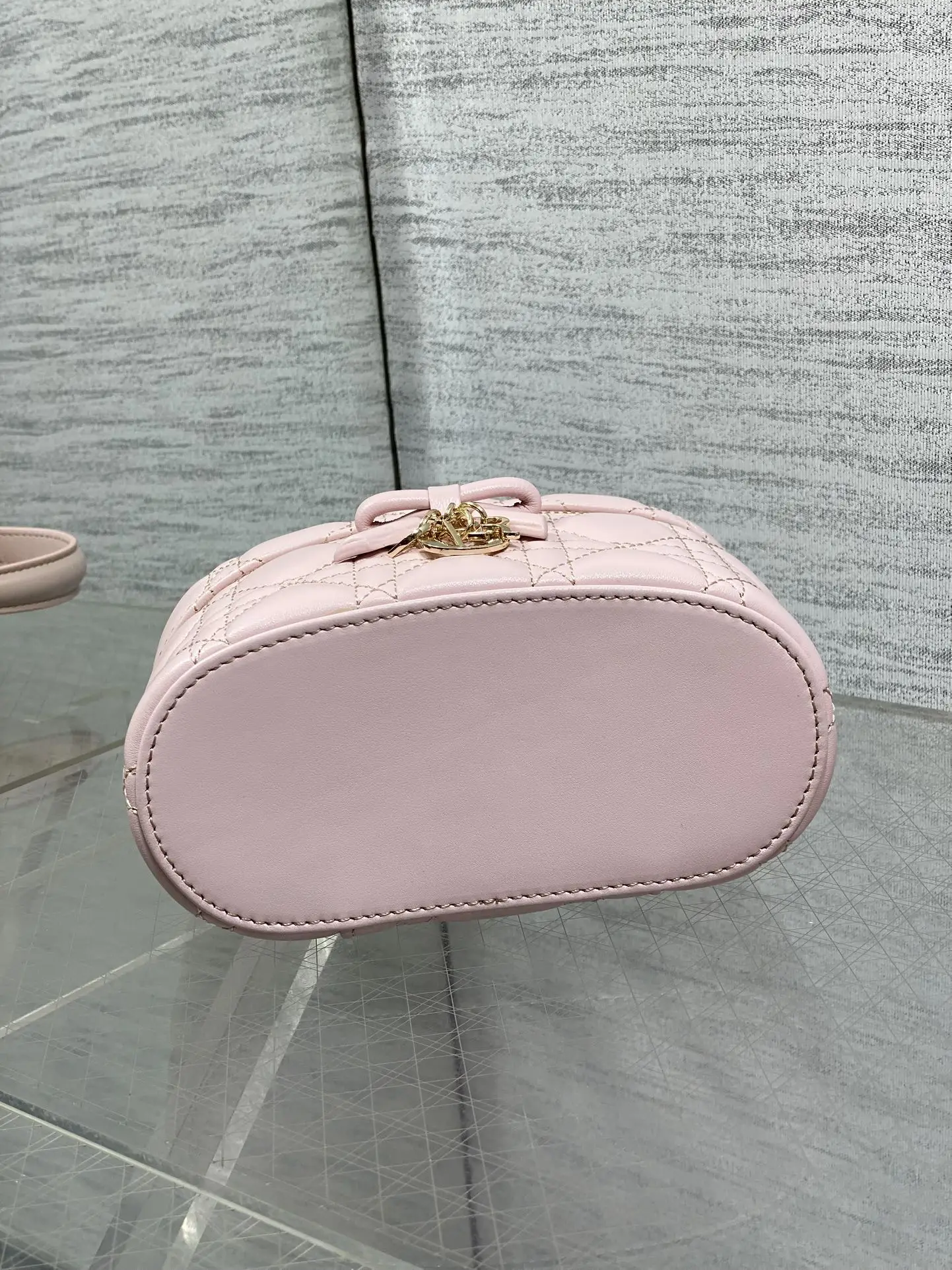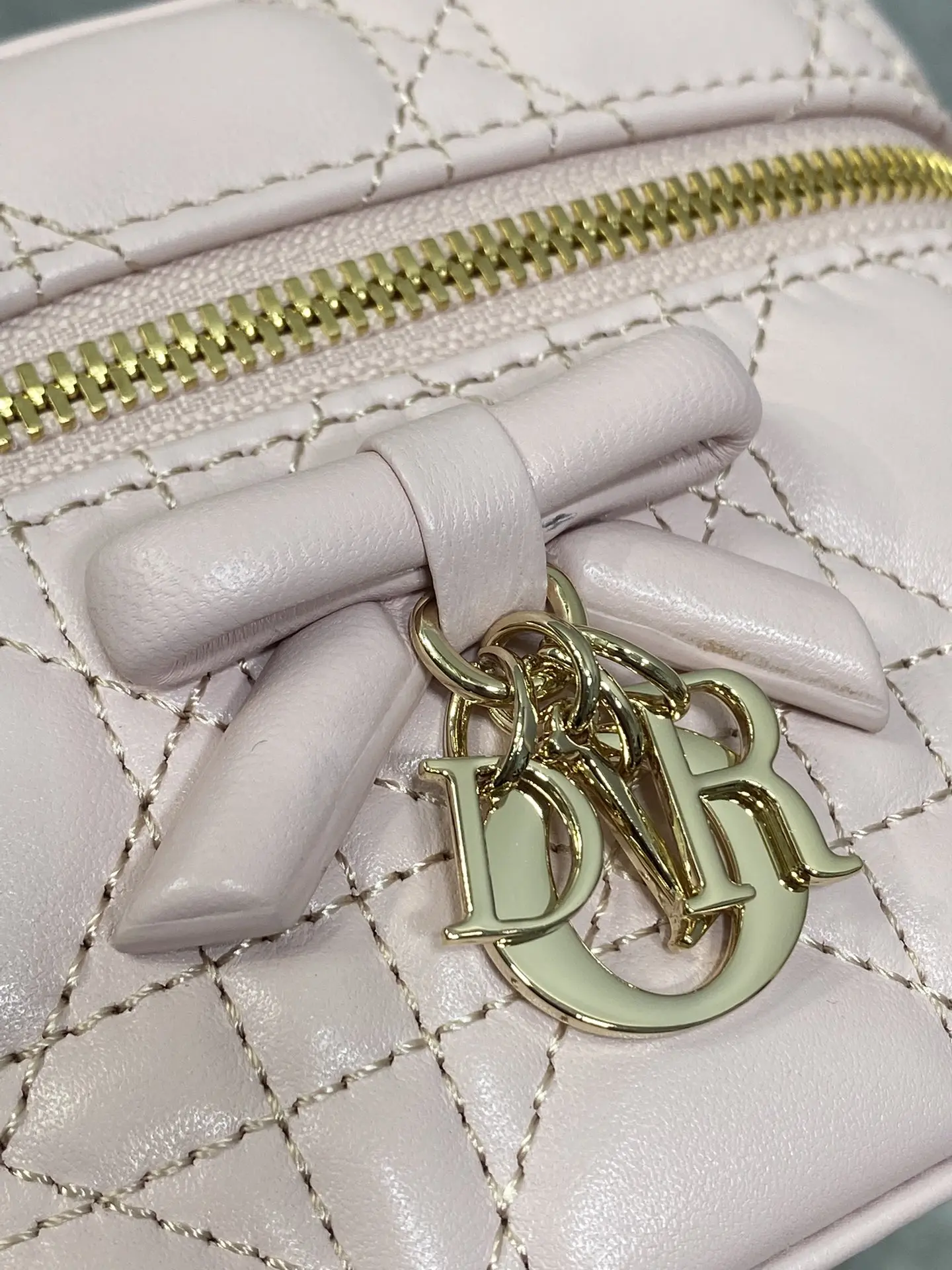 Dior蝴蝶结化妆包 经典菱格+蝴蝶结金属吊饰 优雅精致感拉满柔软的小羊皮轻便耐用 日常通勤 出街都超适合 手提+斜挎两用 灵活百搭 内部空间能装化妆品等小物实用又时髦 春夏搭配浅色系穿搭 轻松提升造型感 是功能与颜值兼具的时尚单品