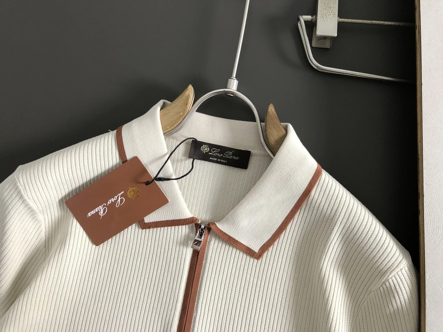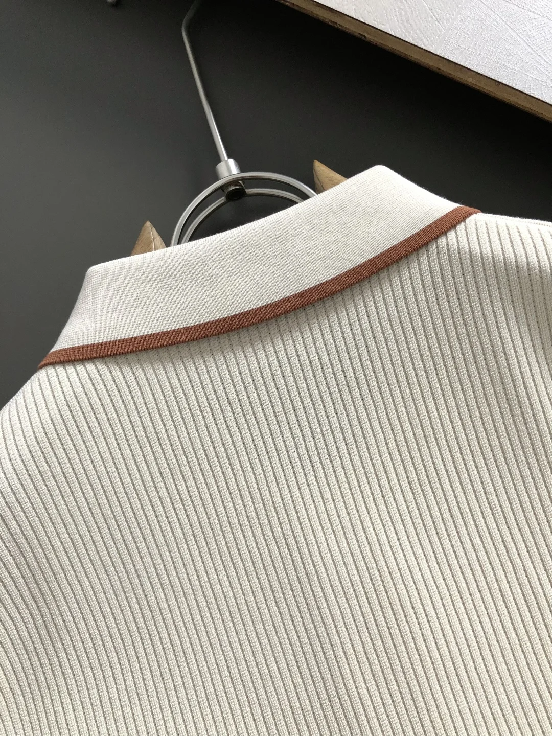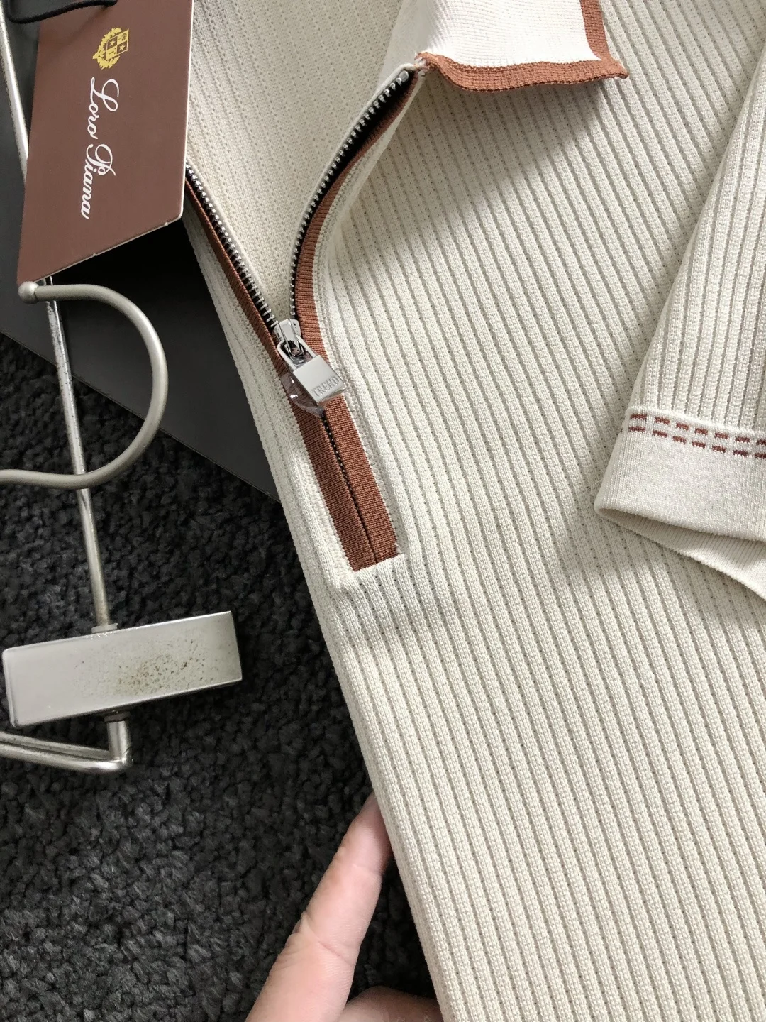 2026春夏短袖 以咖色撞色拉链领口主调 巧妙融入条纹面料素 打破传统短袖的单调感 彰显个性与不羁 立体剪裁贴合身形 设计利落有型 轻松拉长腿部线条