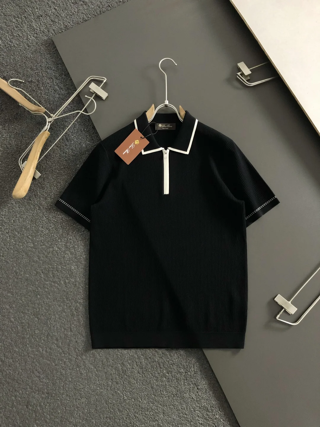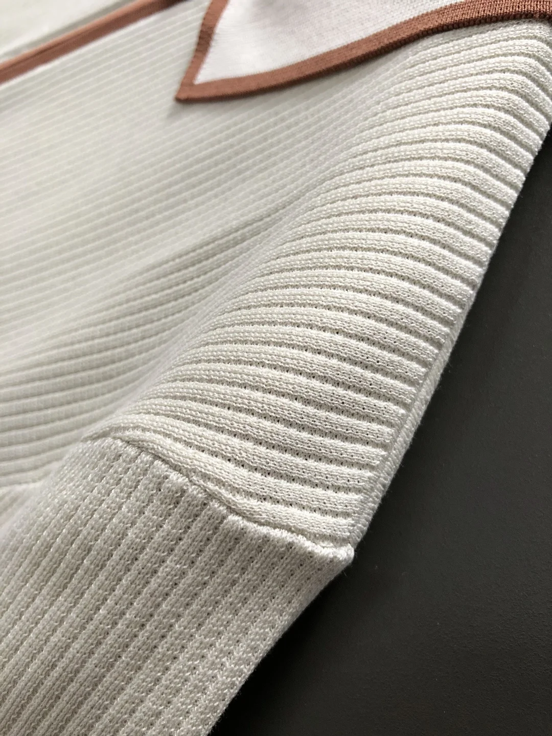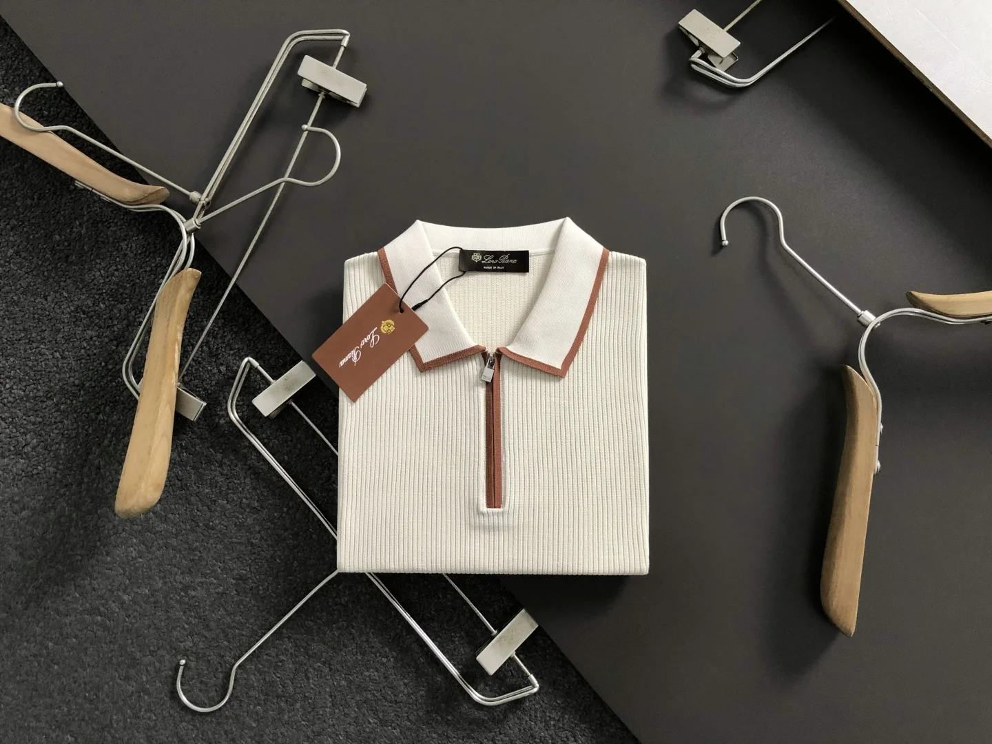 2026春夏短袖 以咖色撞色拉链领口主调 巧妙融入条纹面料素 打破传统短袖的单调感 彰显个性与不羁 立体剪裁贴合身形 设计利落有型 轻松拉长腿部线条