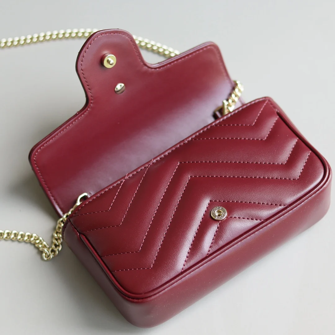 新款安可拉Marmont散发出奢华优雅气息啦 她们就像葡萄酒般醇厚 散发出难以抗拒的高贵气质 再点缀上金色的双G标志彰显出满满的奢华质感 新款的