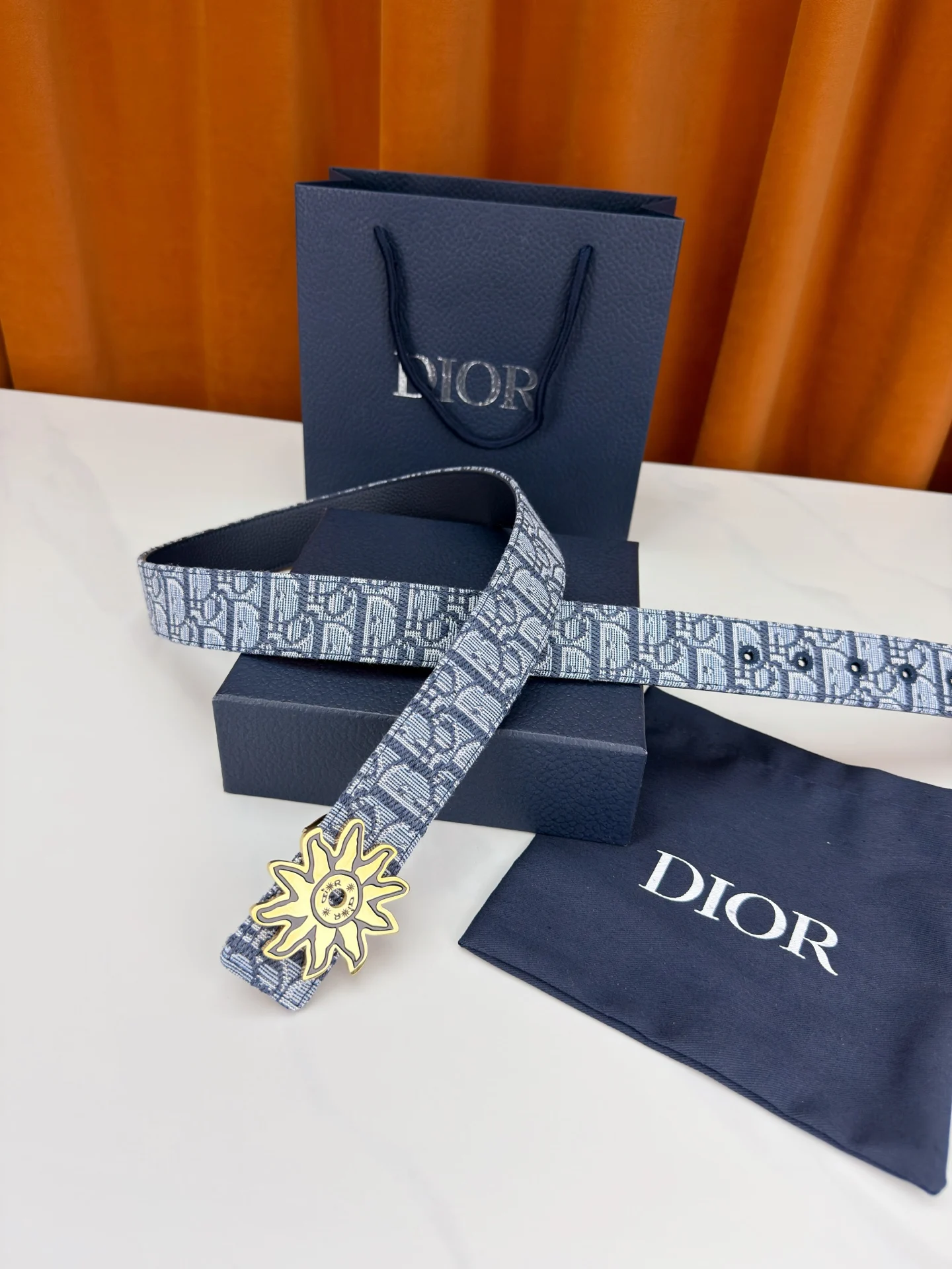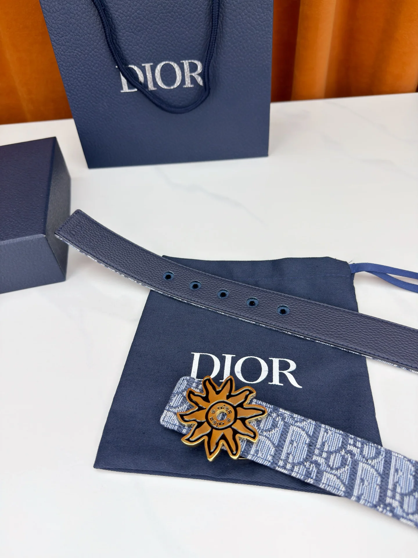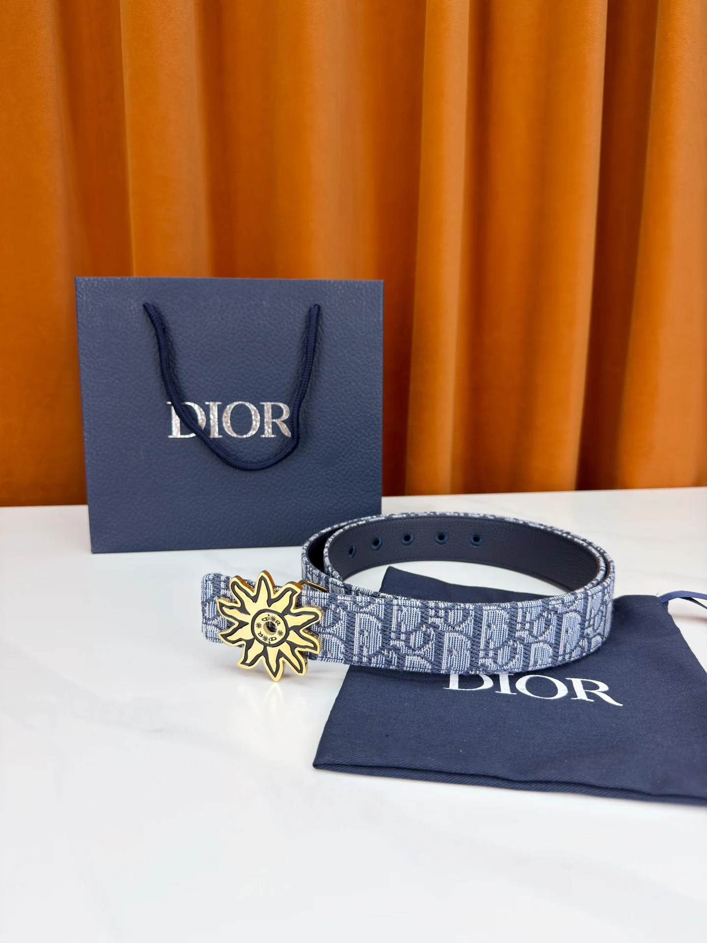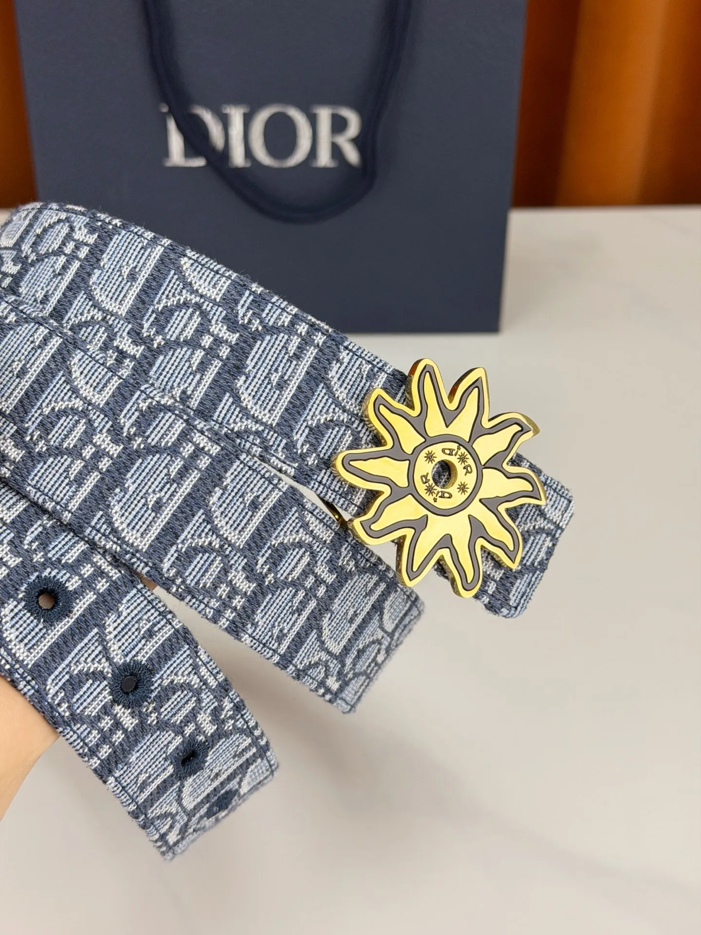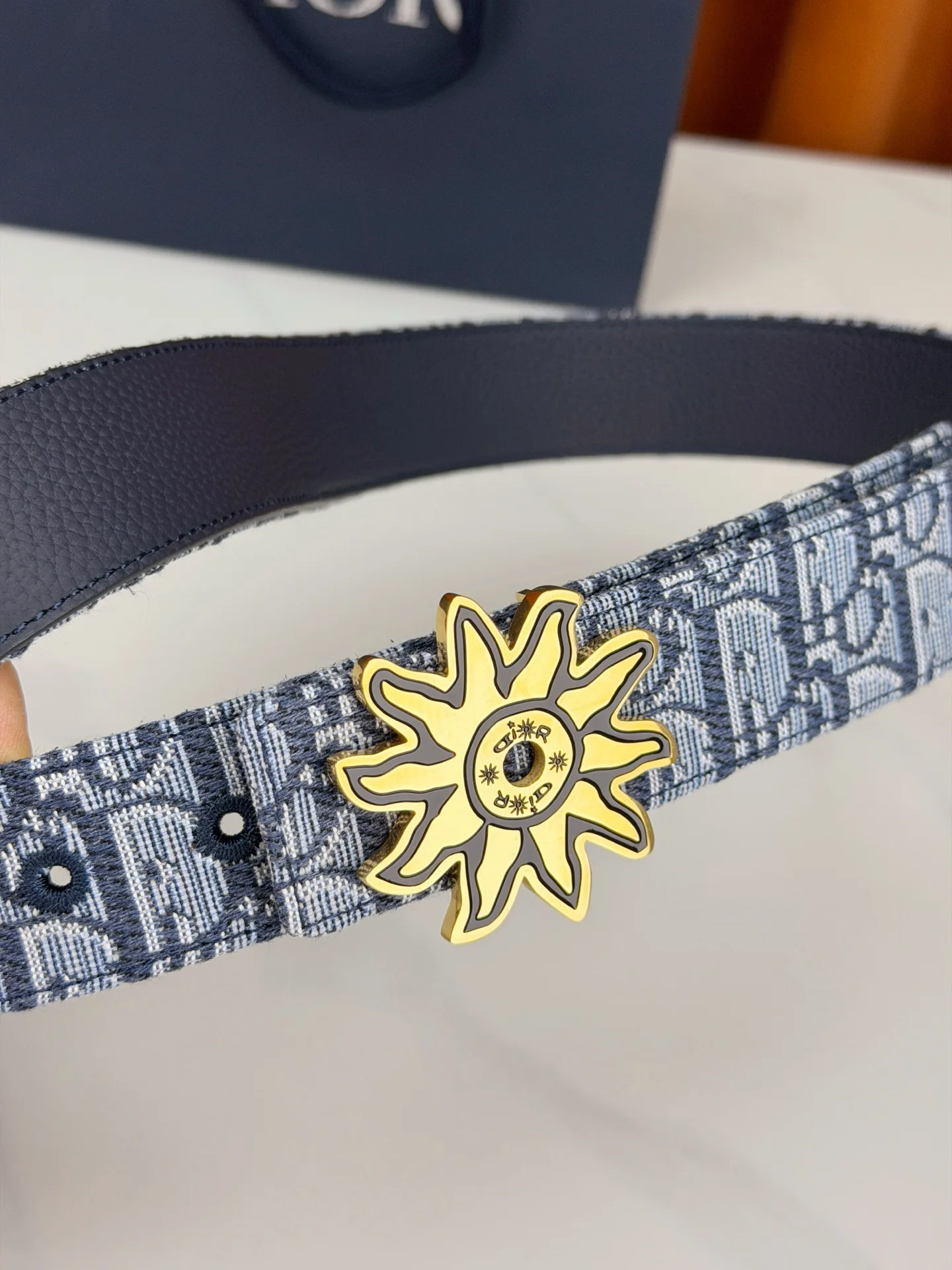 Dior 宽度3.5cm 致敬经典 焕新登场 迪奥35mm系列腰带 以标志性太阳花扣环点亮造型 蓝白老花织物搭配精致皮革 双面设计展现双重格调 简约而不简单 让每一次转身都成为焦点