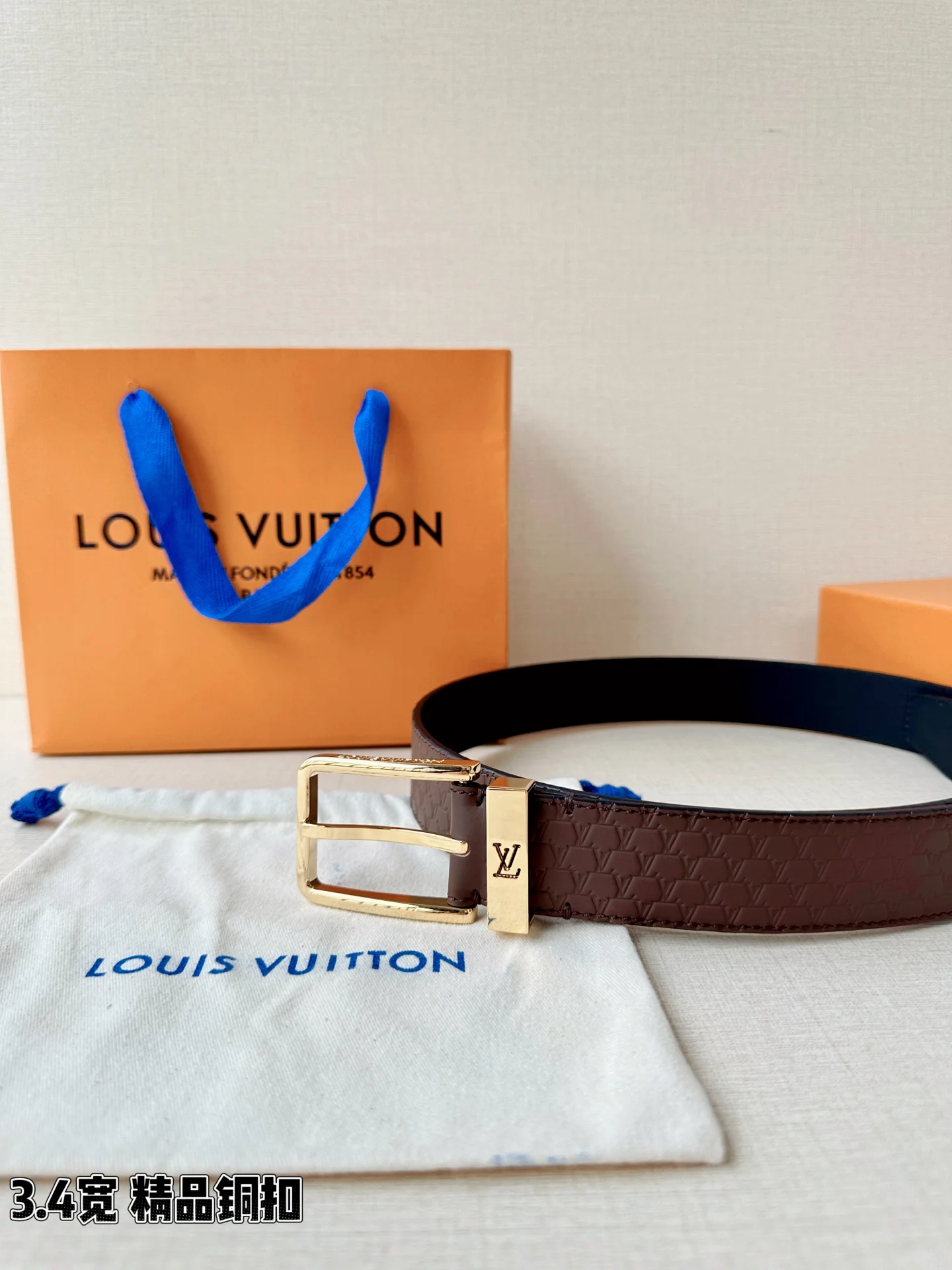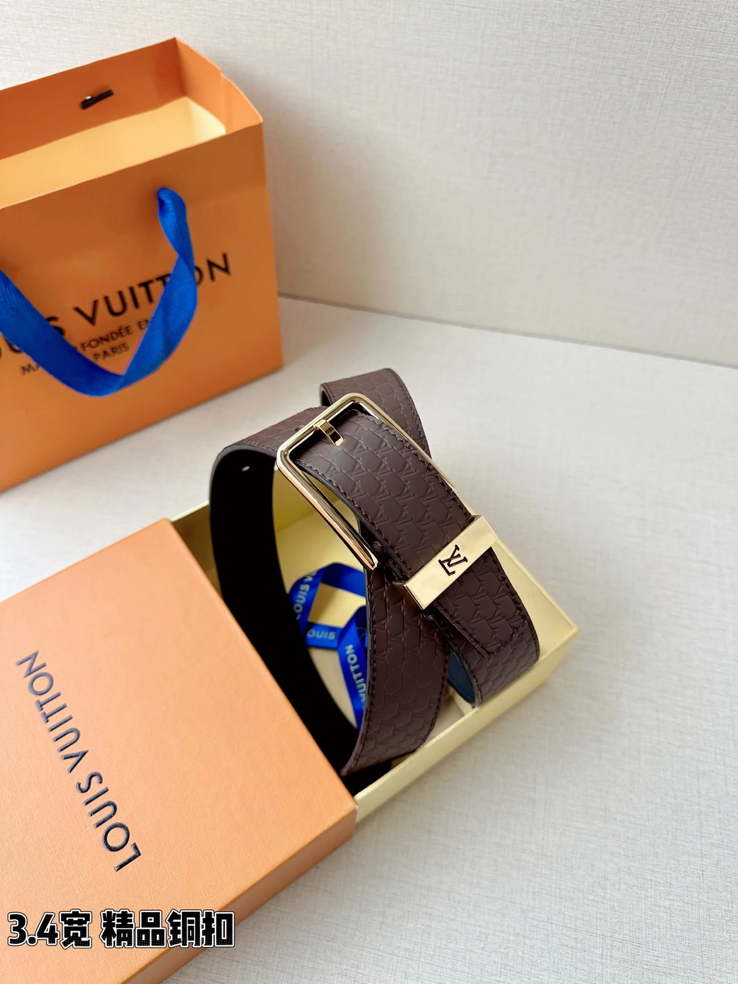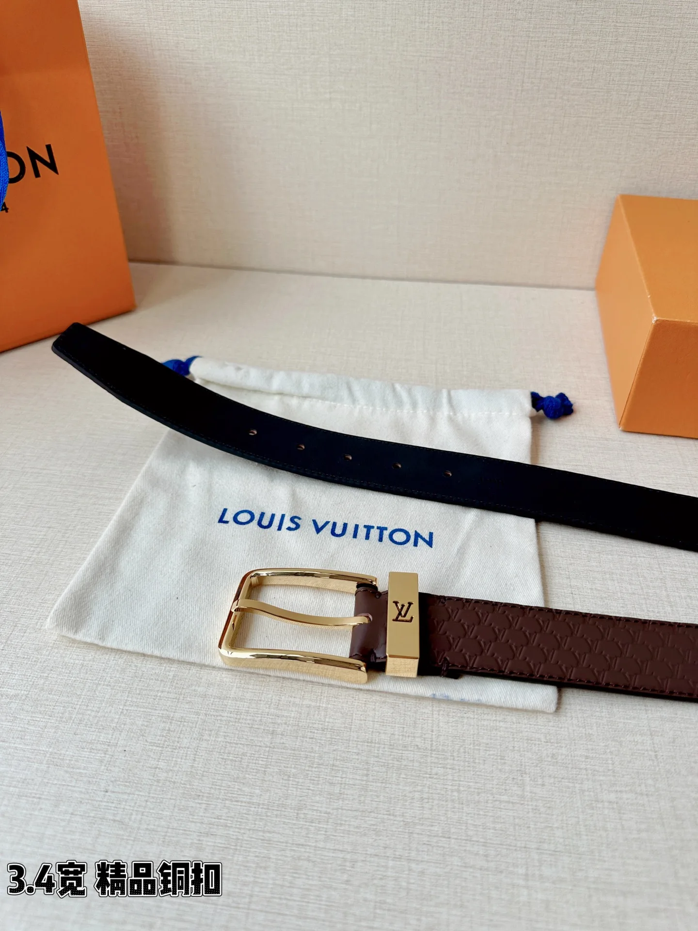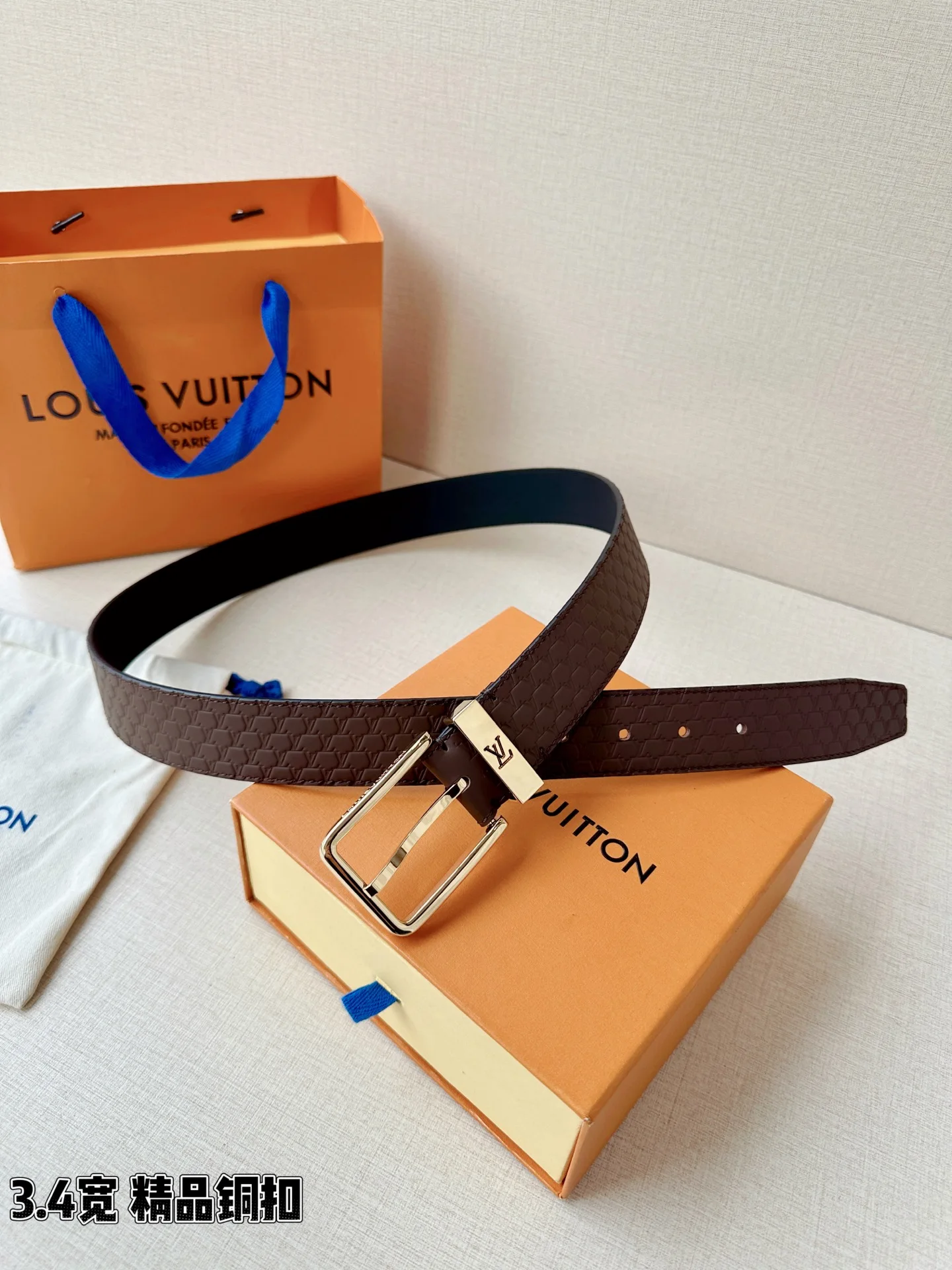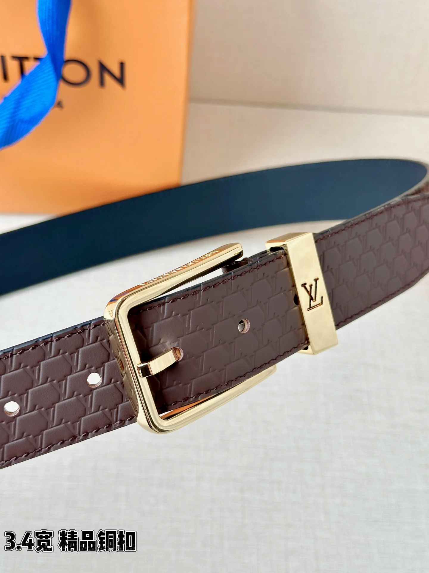 L家 3.4cm宽压纹皮带 经典金属铜扣搭配多色皮质 双面设计解锁百变风格 细腻压纹质感拉满 金/银扣饰尽显格调 商务休闲皆适配 是型男穿搭的点睛之选 诠释法式奢雅魅力