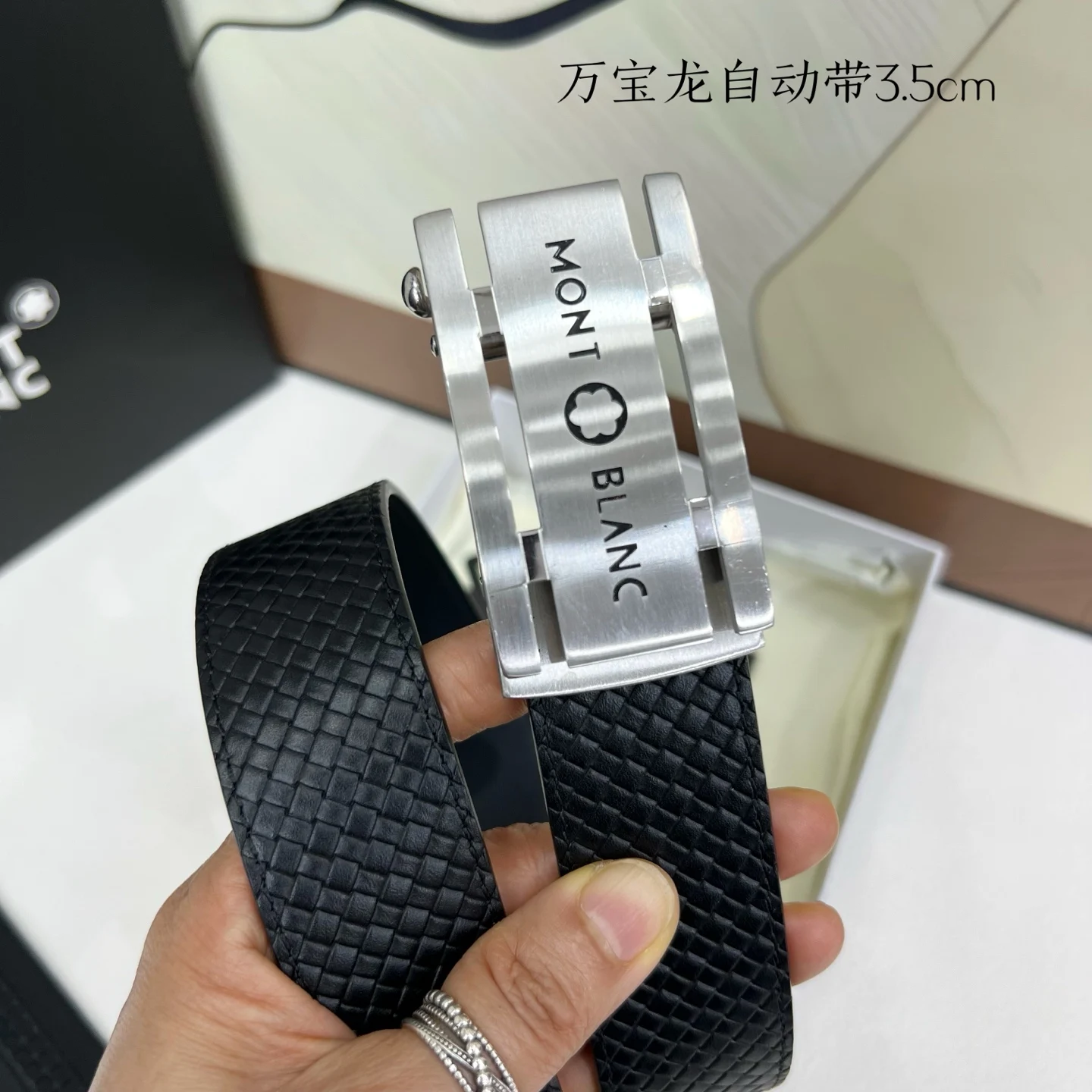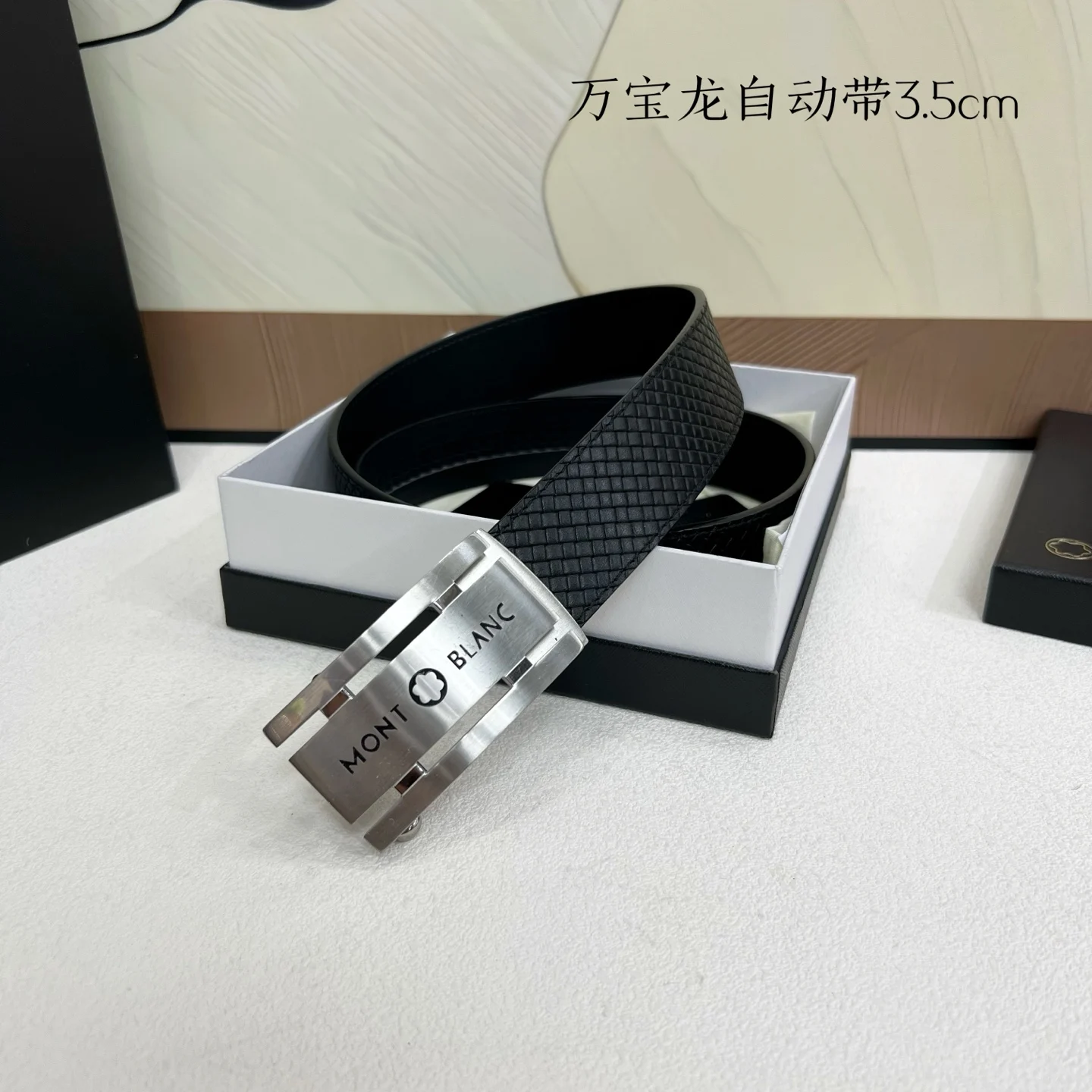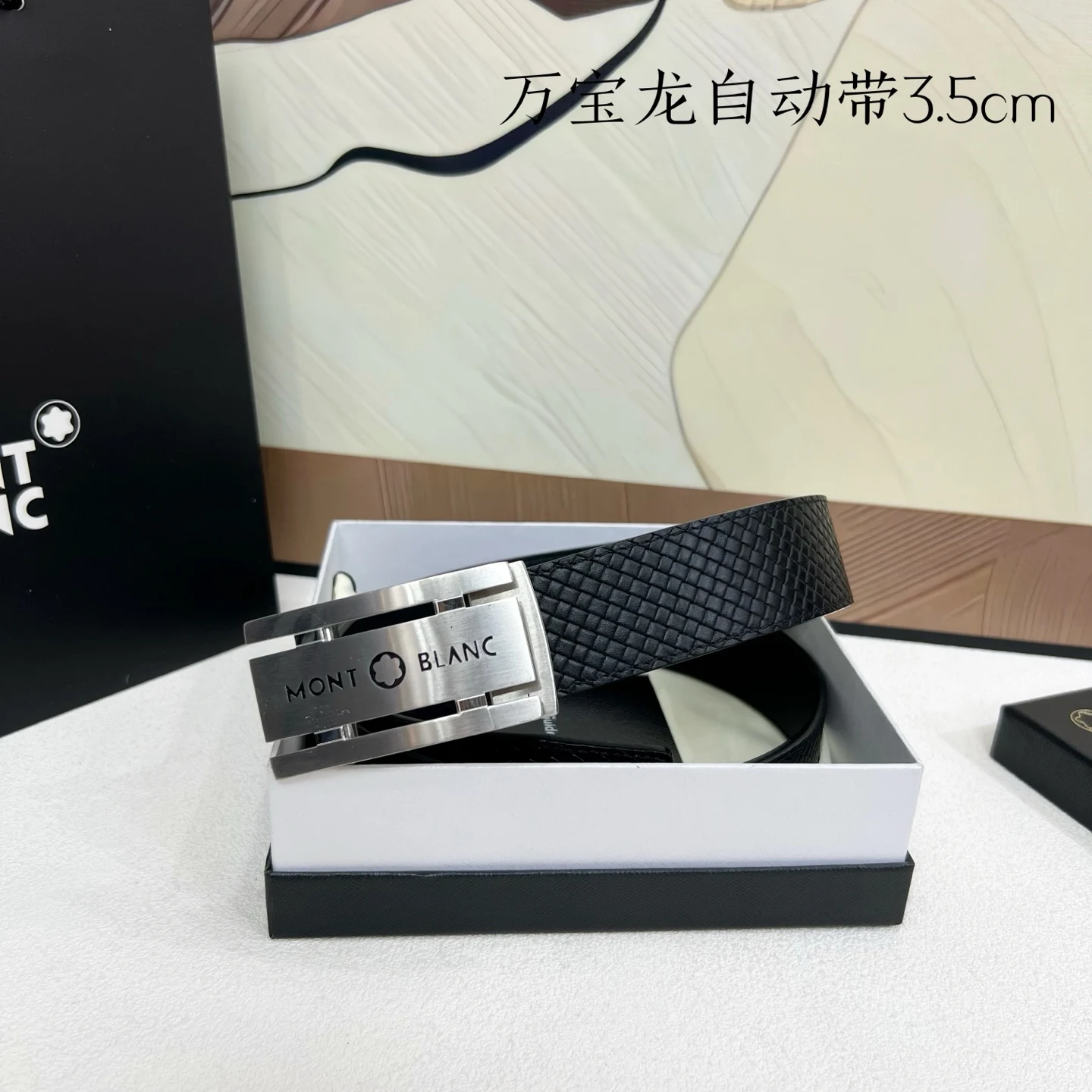 万宝龙 男士自动带进口小牛皮 手感细腻柔软 搭配纯钢自动精品钢扣 宽度 3.5cm