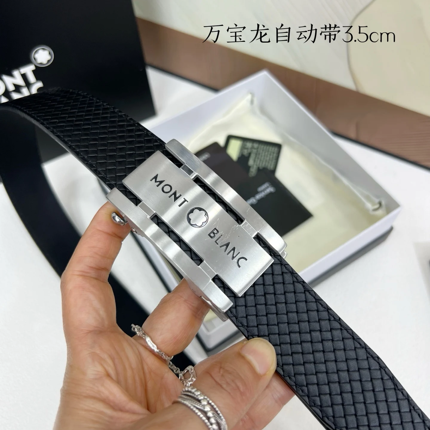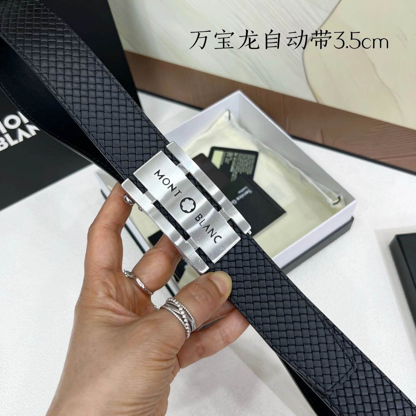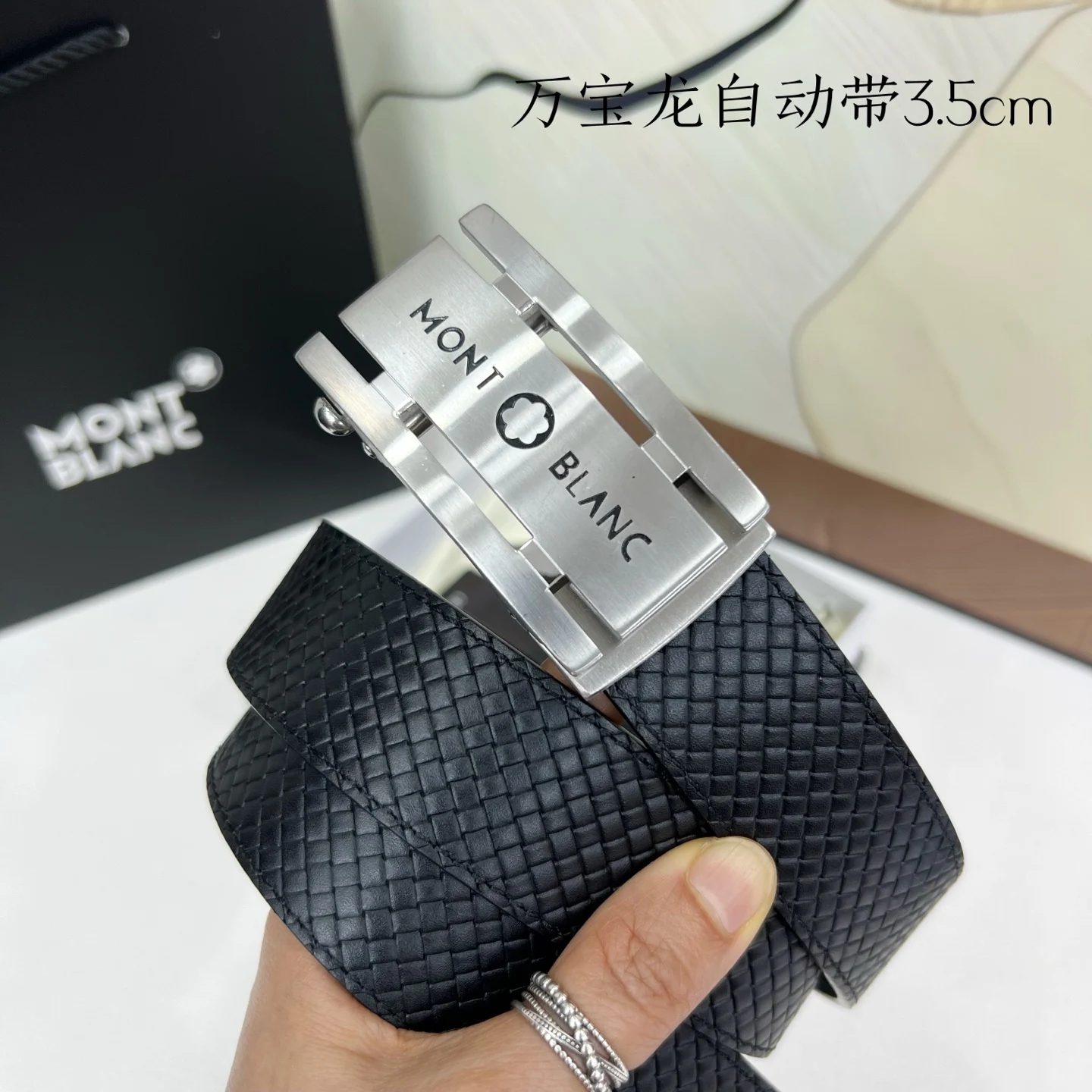 万宝龙 男士自动带进口小牛皮 手感细腻柔软 搭配纯钢自动精品钢扣 宽度 3.5cm