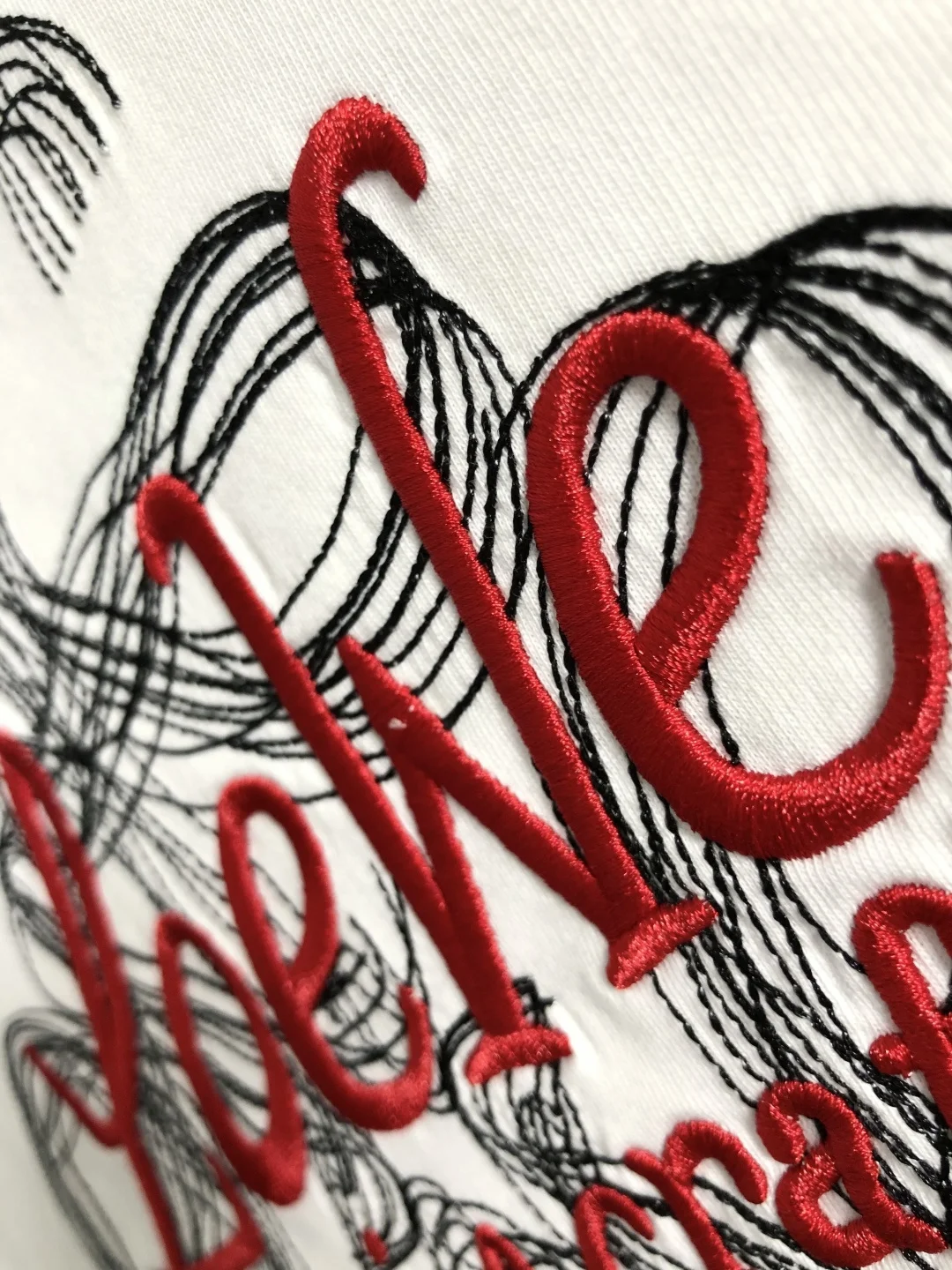 2026春夏短袖 以重工蓝色立体绣融合为主调 巧妙融入撞色字母编织刺绣工艺流行素 打破传统短袖的单调感 彰显个性与不羁 立体剪裁贴合身形 设计利落有型 轻松拉长腿部线条 黑色 白色
