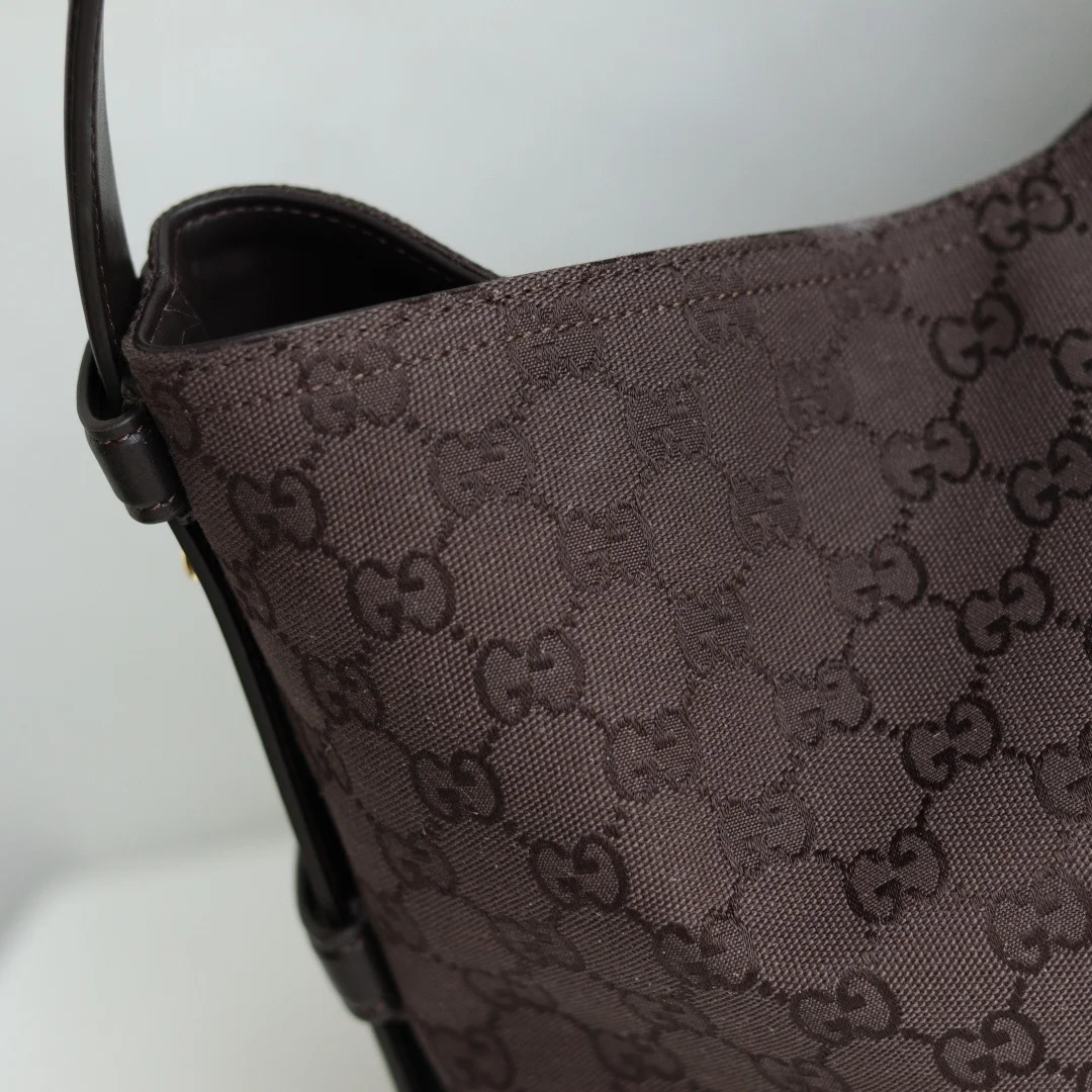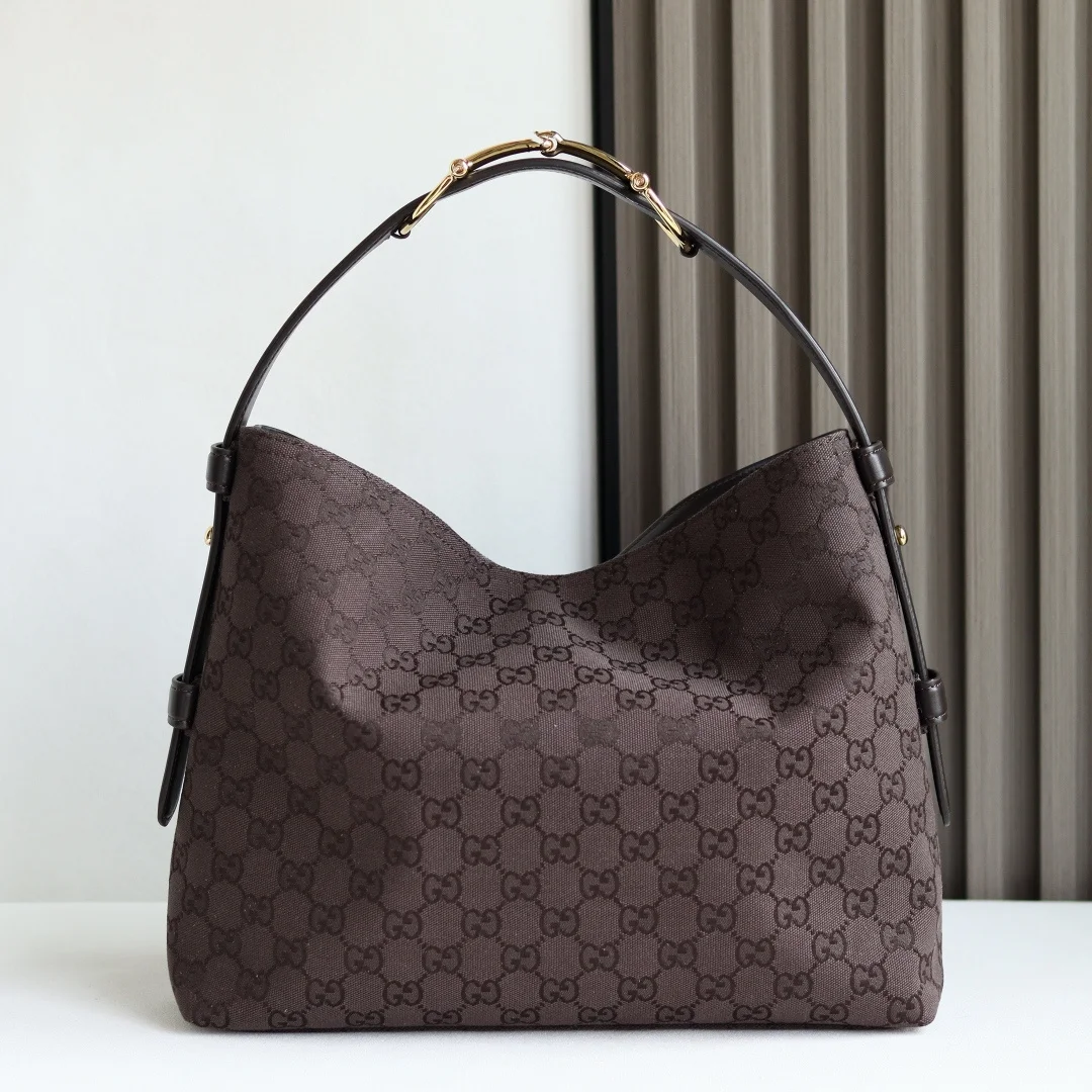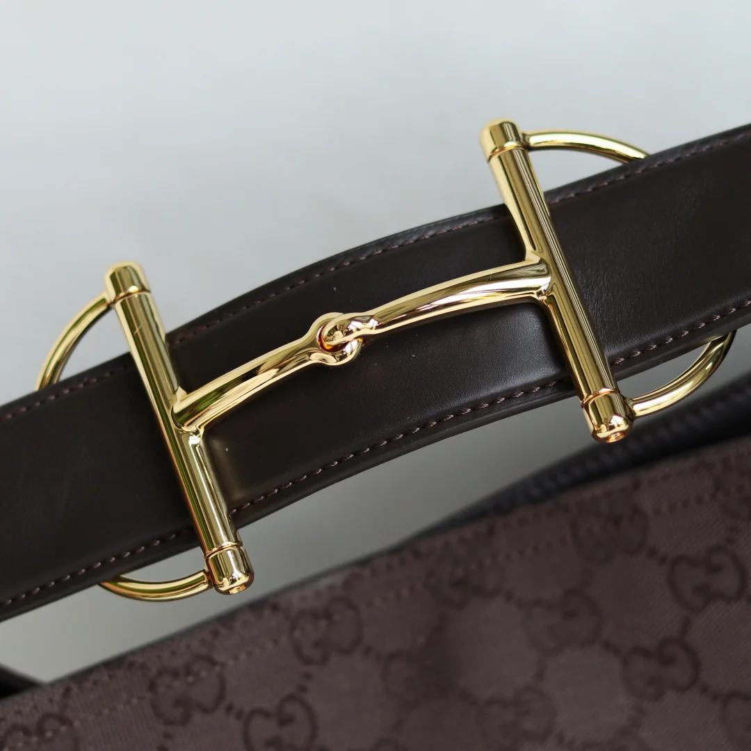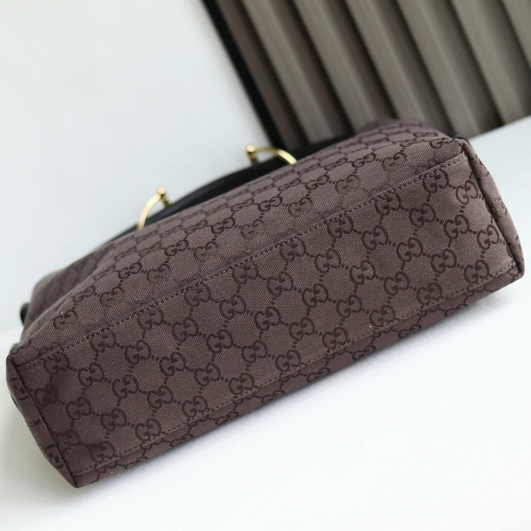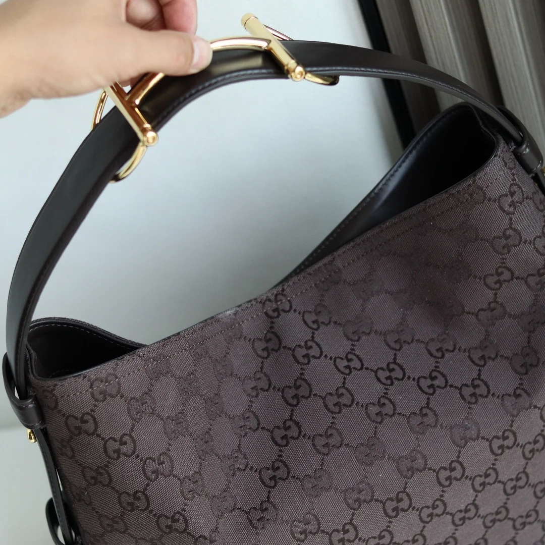采用帆布配牛皮打造 配标志性马衔扣细节肩带 金色调配件更添精致质感 内里设有一个拉链口袋