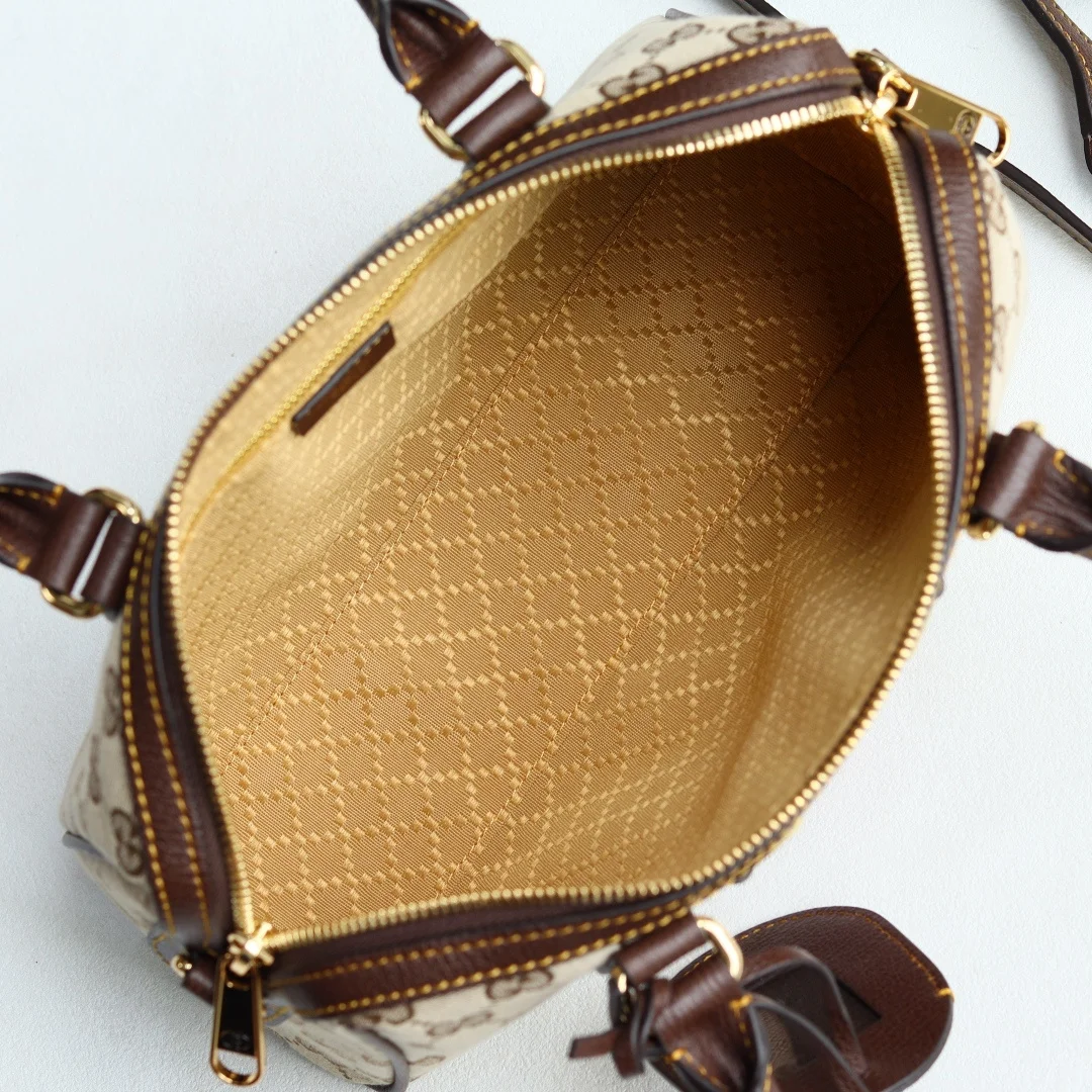 2026春夏Borsetto系列名称巧妙融合意大利语 borsa 手袋 和 morsetto 马衔扣 二词 这款手袋甄选轻盈挺括的GG帆布打造 以复古风格沙色配色匠心呈献 源自典藏的钻石菱格纹图案演绎全新衬里 型号 G866732