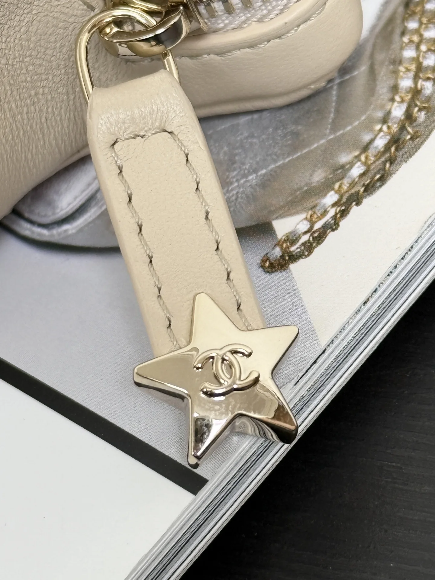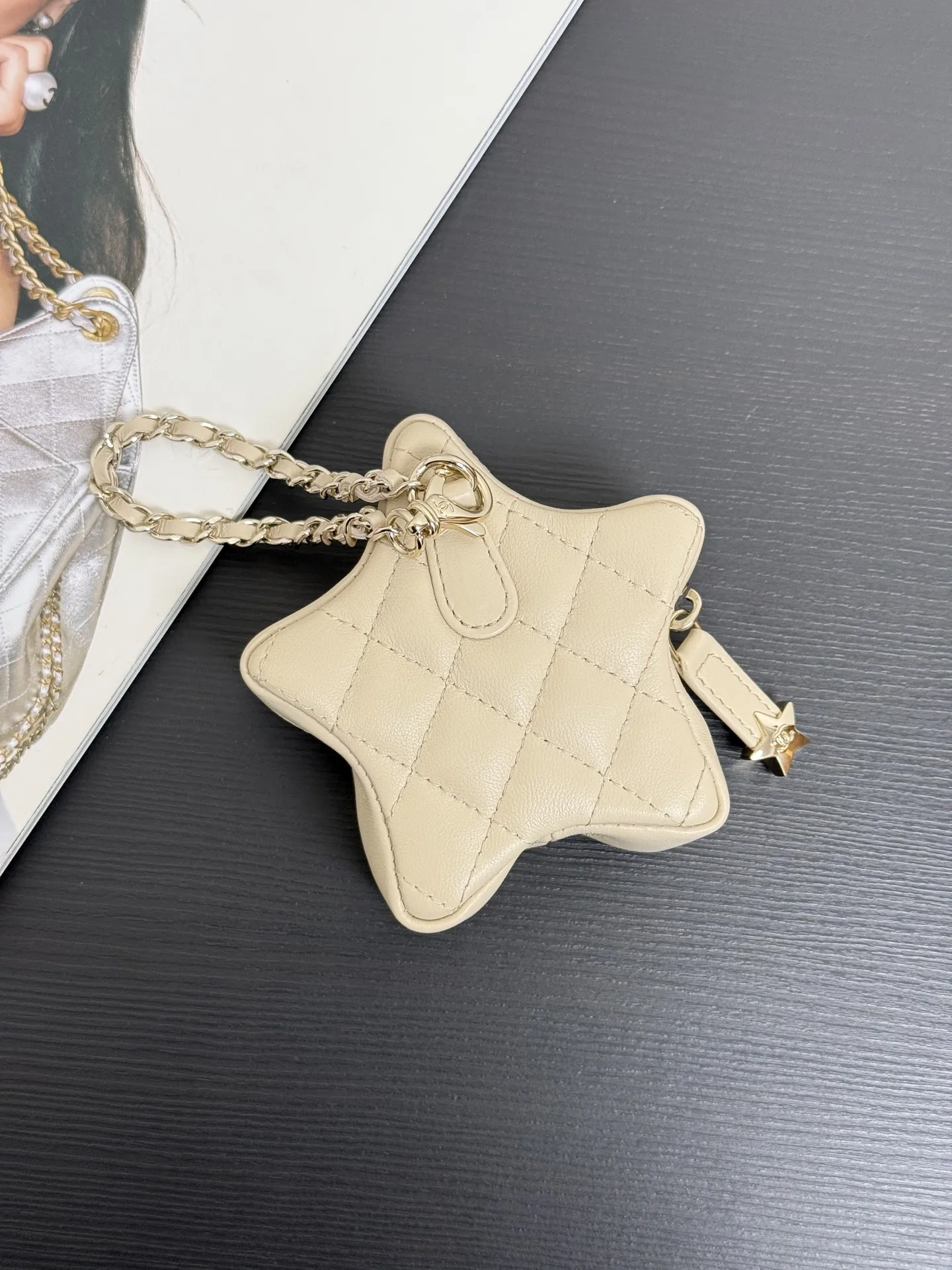 金色链条包搭配五角星挂件 简直太美啦 是一眼心动的包包五角星挂坠也可以做零包 萌萌哒小可爱解锁多种背法 可以自己diy链条斜挎 干练精致可爱 快来冲啊 99545