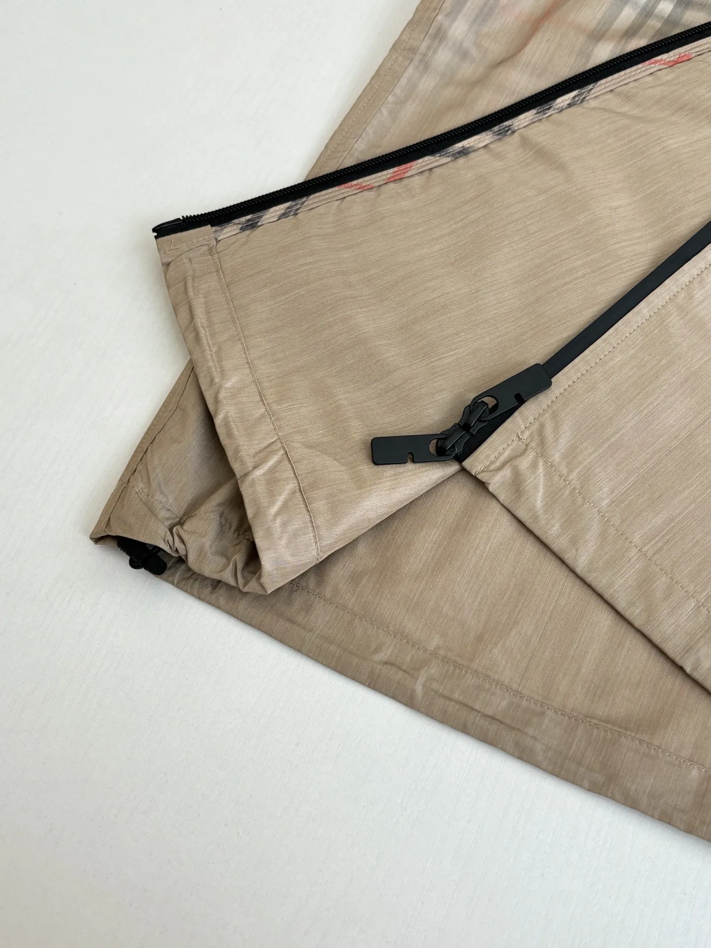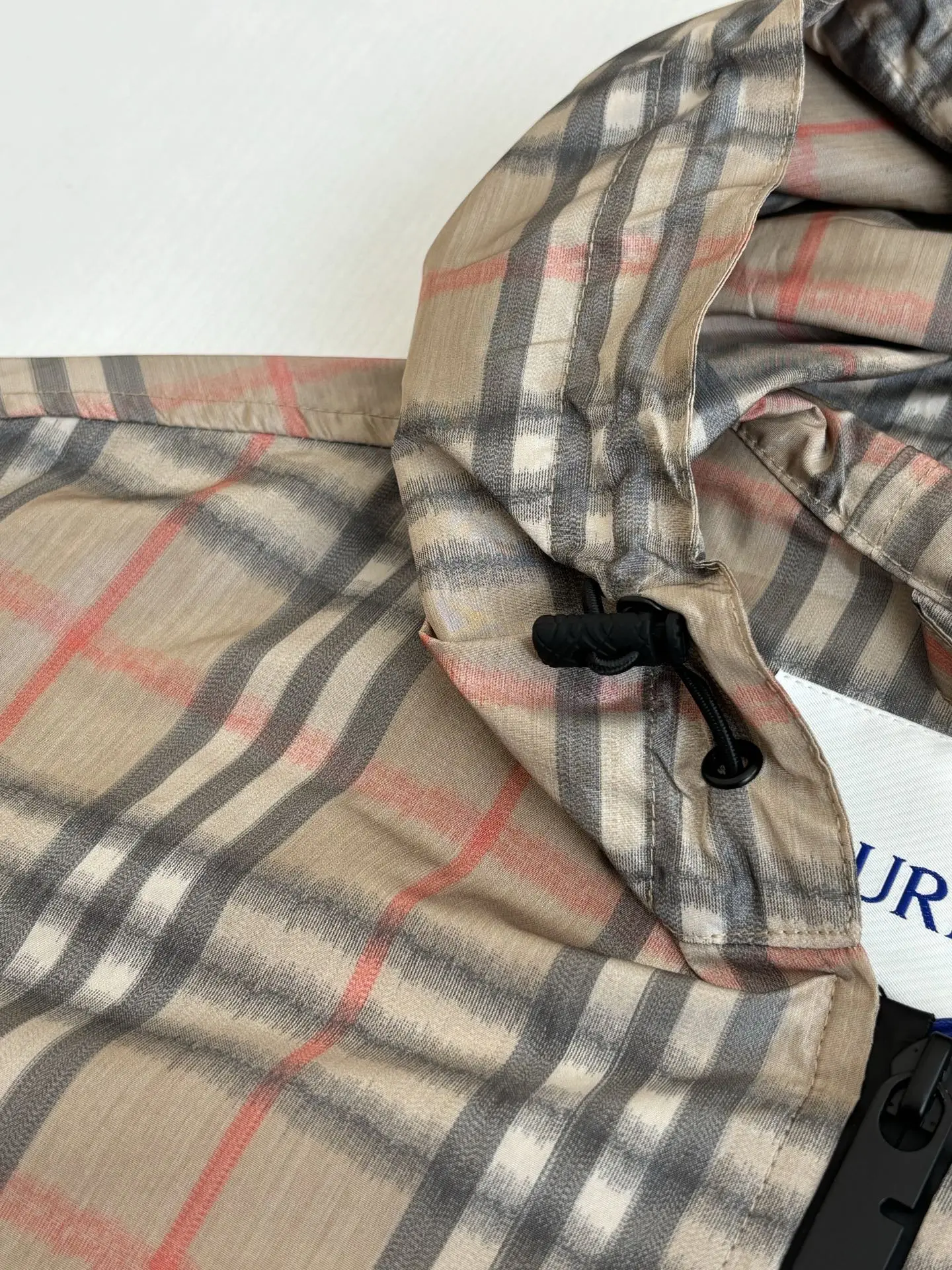 采用高密防风尼龙 聚酯纤维面料 具备防泼水 抗风性能 全身采用Burberry最经典的Vintage Check复古格纹 袖口 下摆采用抽绳设计 可自由调节松紧