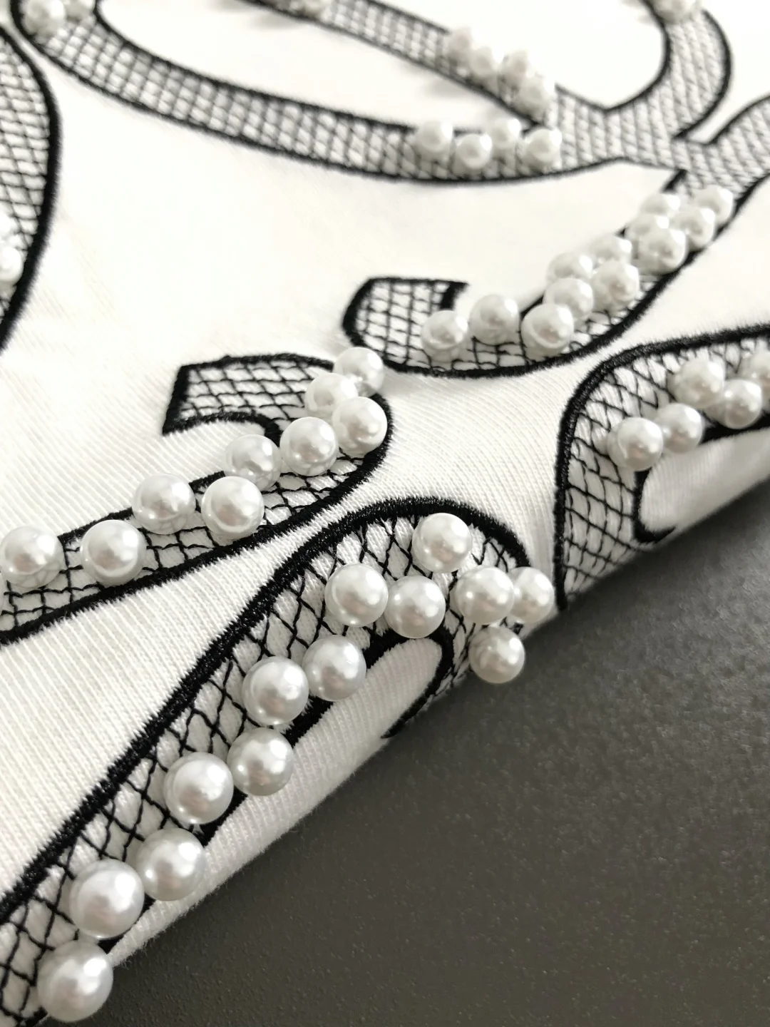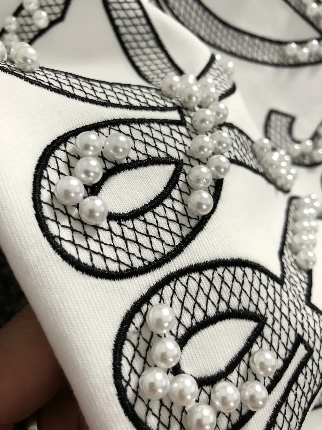 2026春夏短袖 重工绣珠融合网布印花为主调 巧妙融入最新流行素 打破传统短袖的单调感 彰显个性与不羁 立体剪裁贴合身形 设计利落有型 轻松拉长腿部线条 黑色 白色